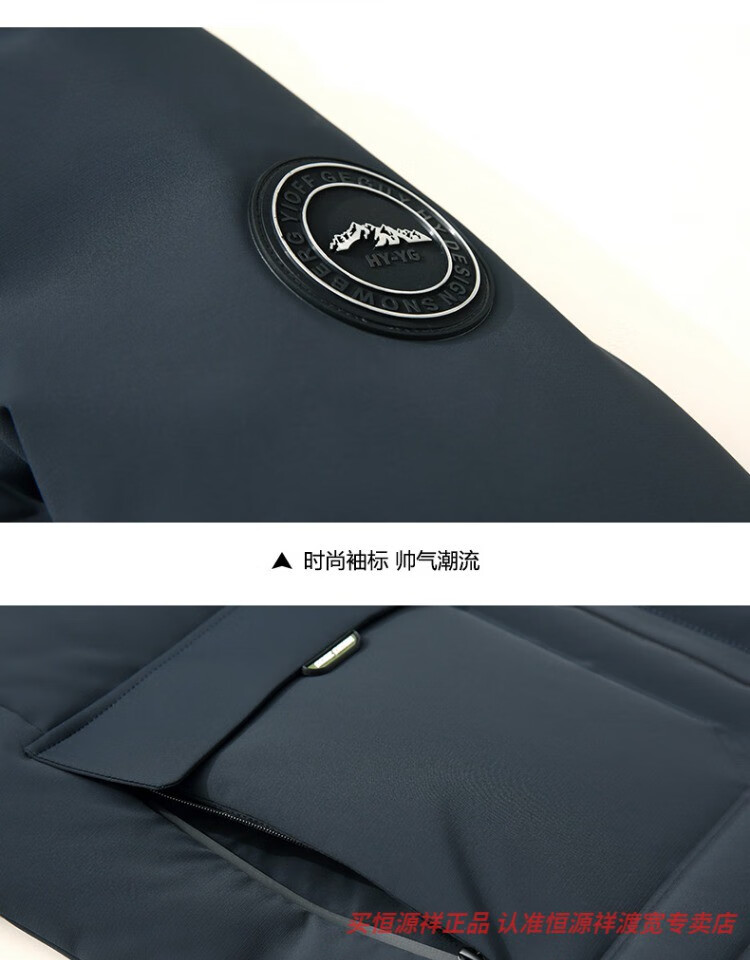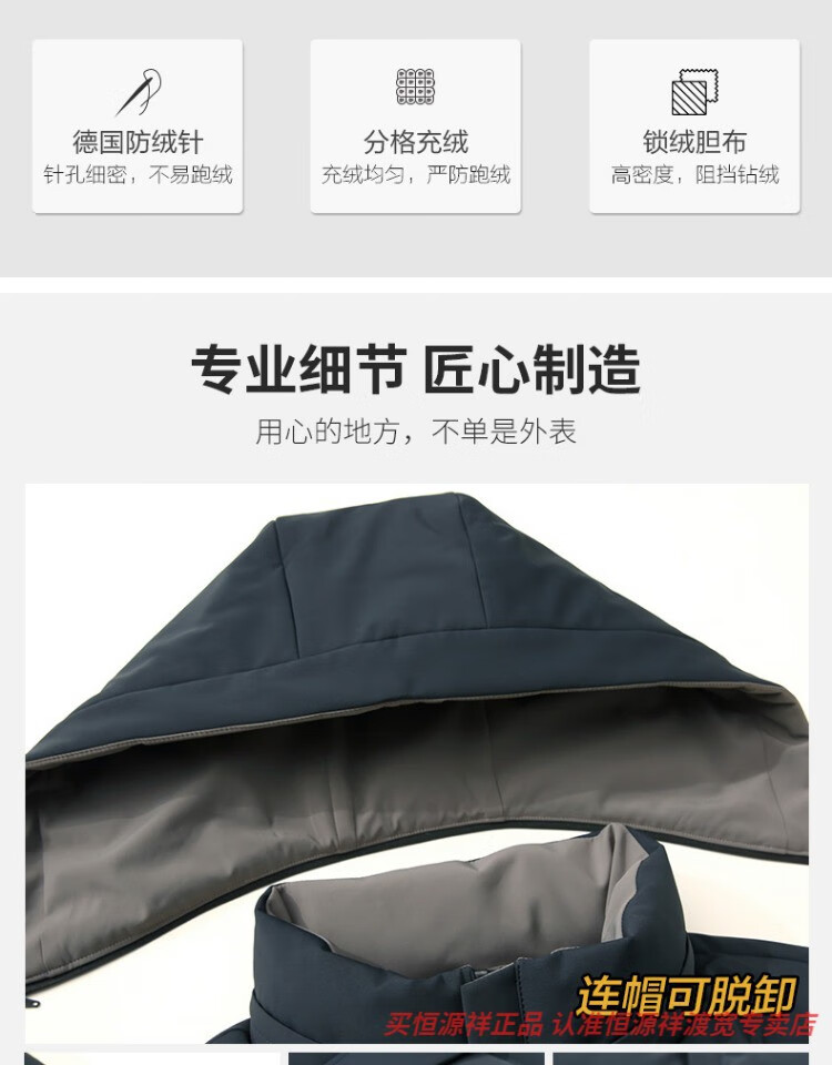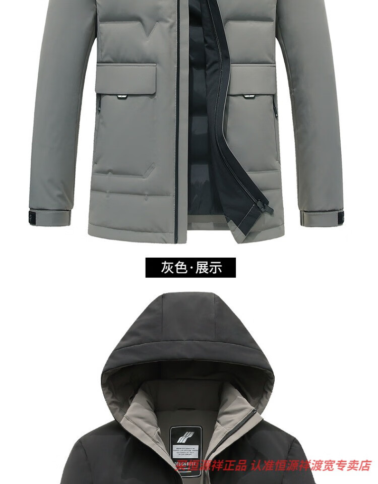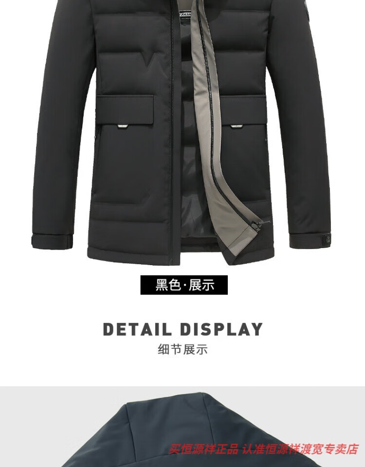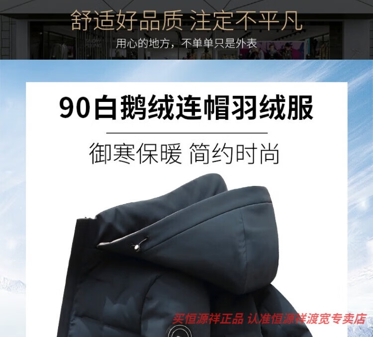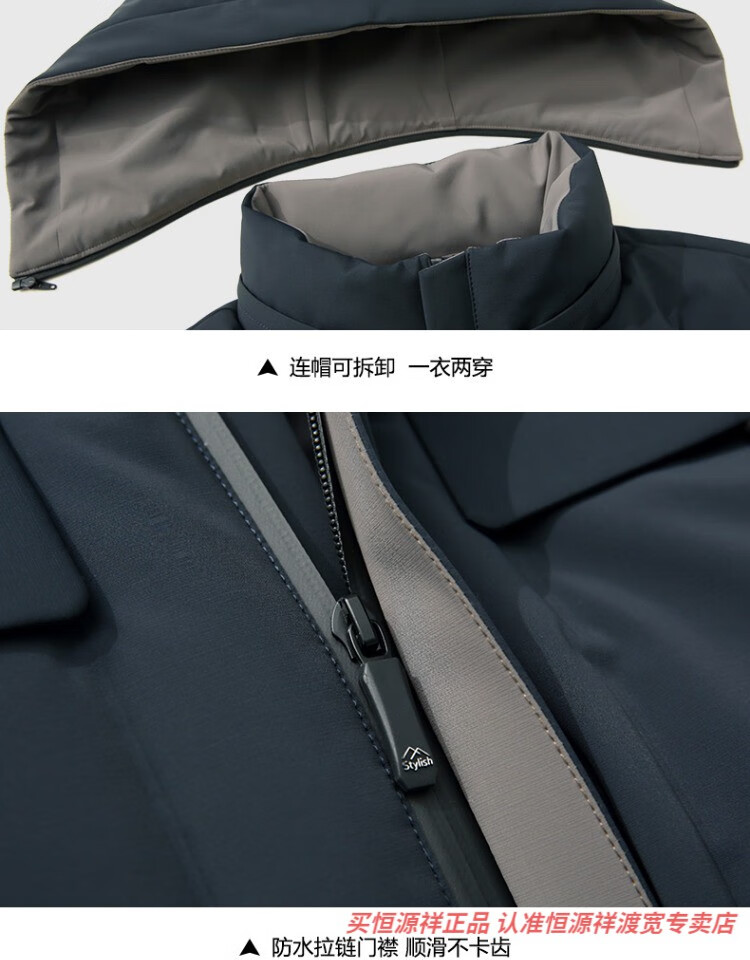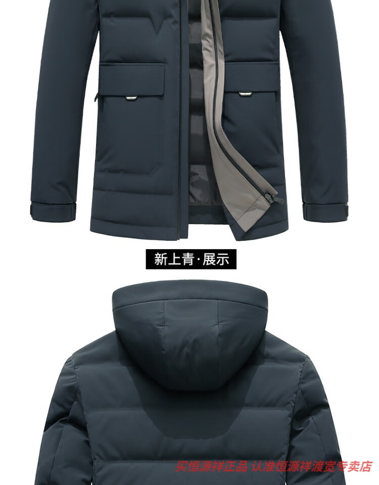 恒源祥男士羽绒服2025新款连帽可拆卸鹅绒服纯色商务休闲冬季保暖外套 9755黑色 中长款 175/92A L