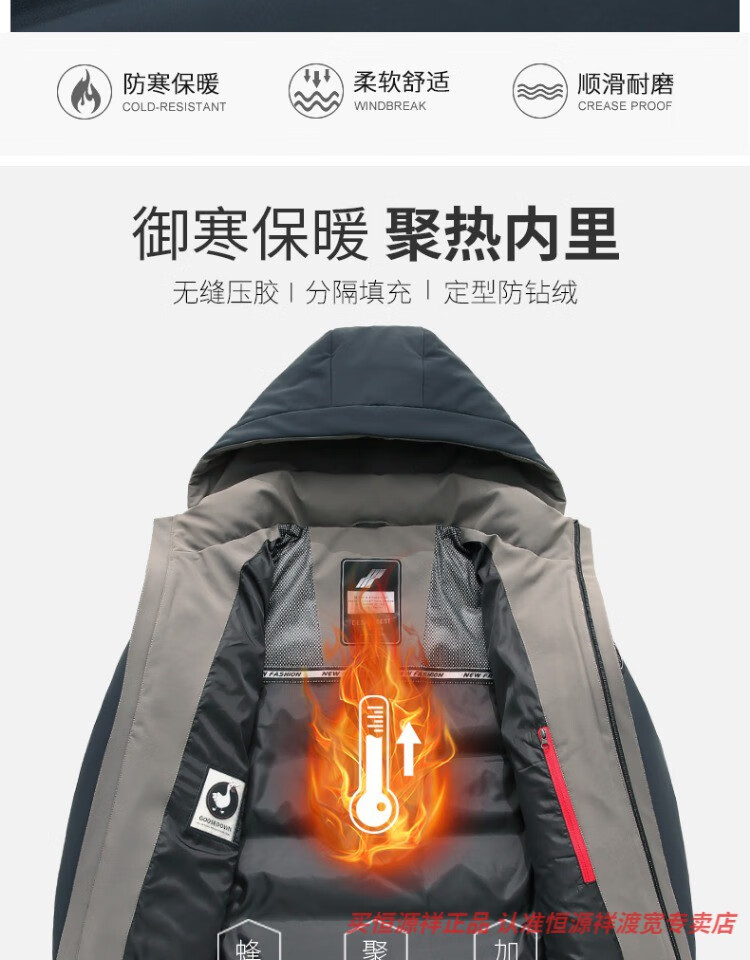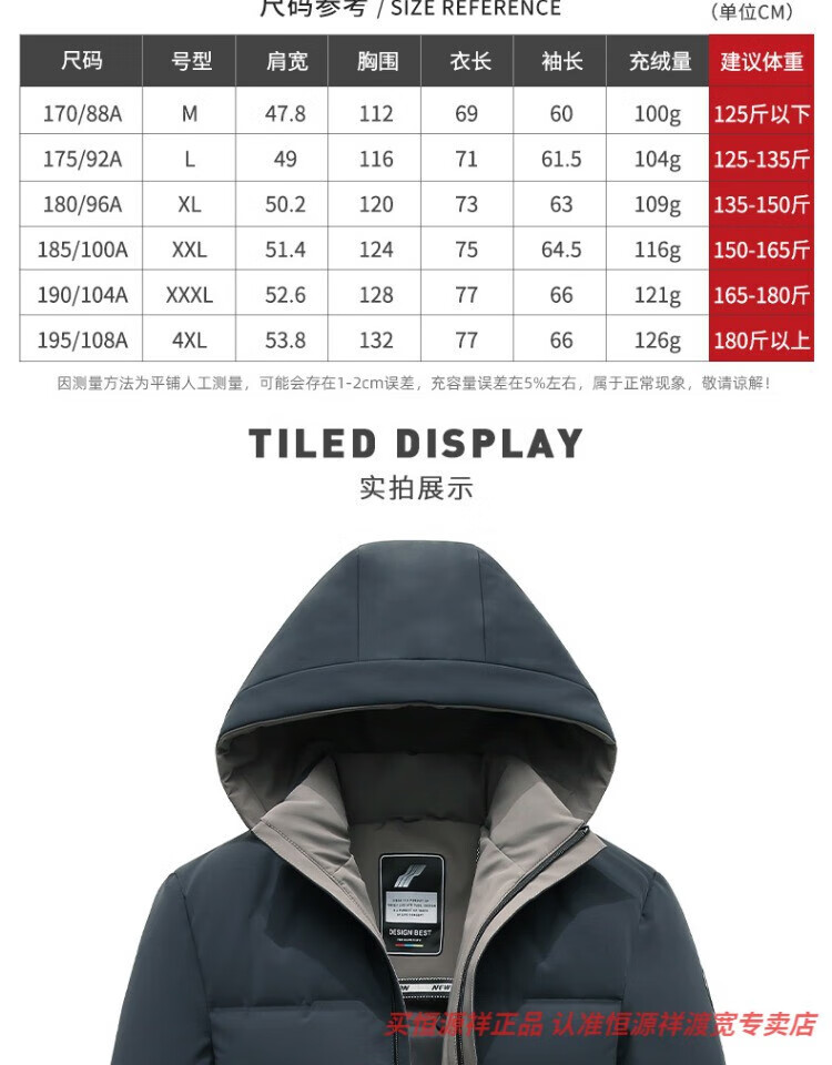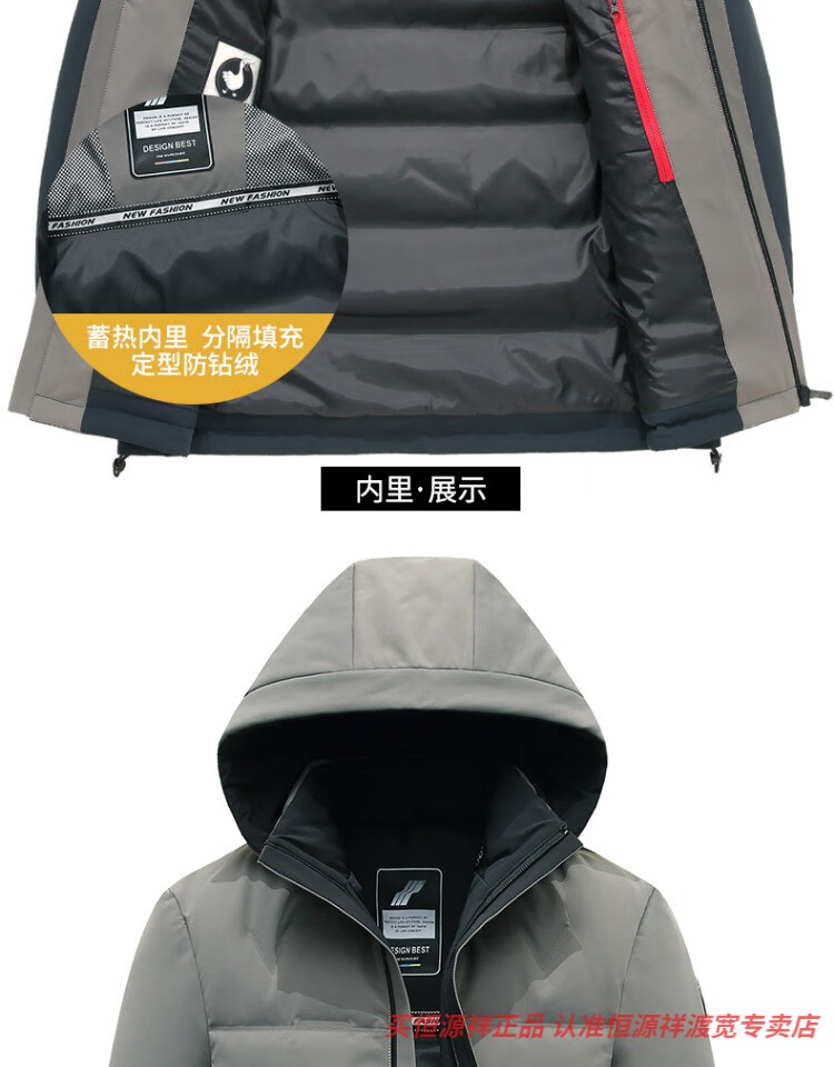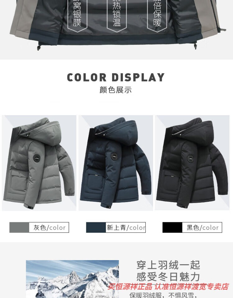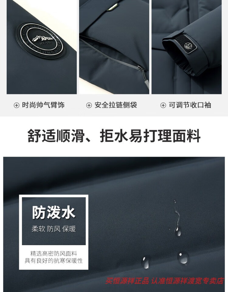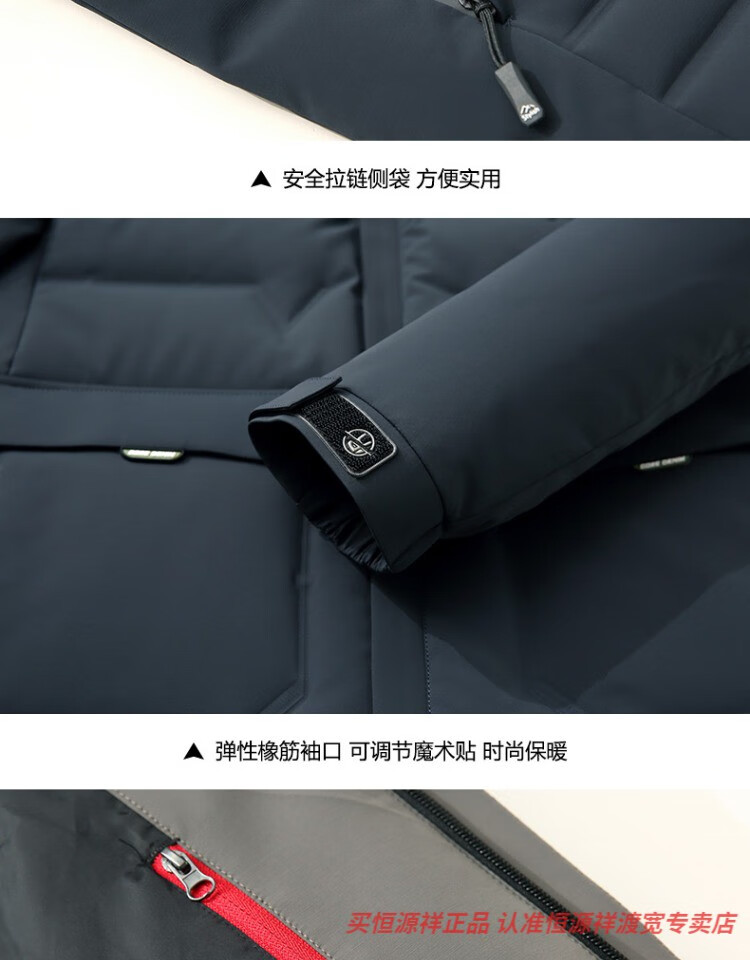 恒源祥男士羽绒服2025新款连帽可拆卸鹅绒服纯色商务休闲冬季保暖外套 9755黑色 中长款 175/92A L