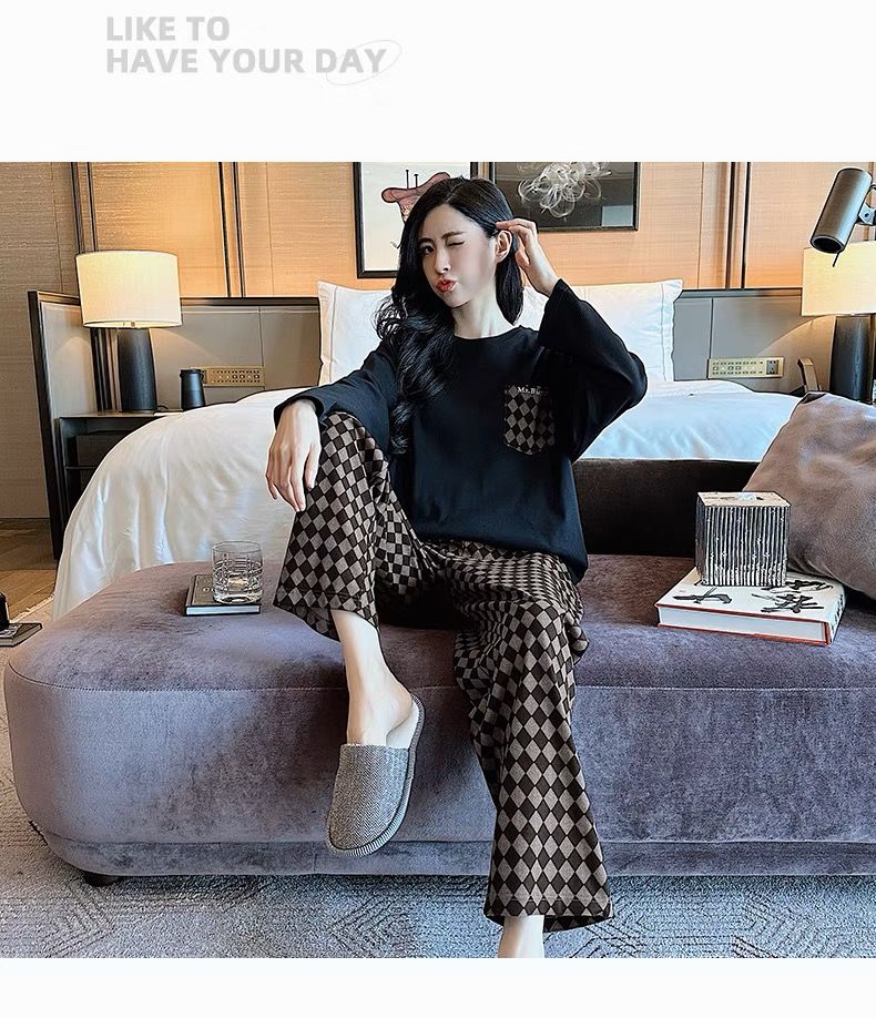 美黛遇带胸垫25高质量棉睡衣女高质量棉长袖春秋季韩版可外穿夏全棉家居 866 女XL【115-130斤】