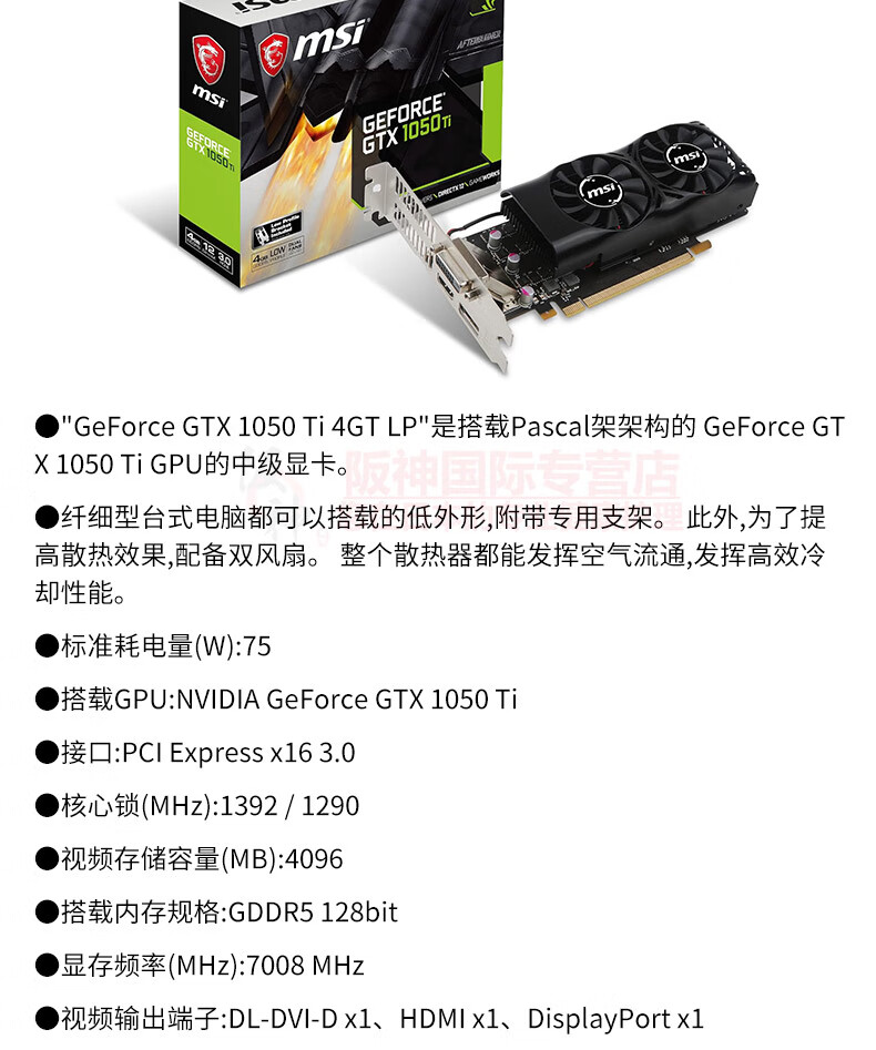 微星(MSI)【日本直邮 日本发货】显卡台式电脑独立显卡游戏剪辑全新 GTX 1050 Ti 4GT LP