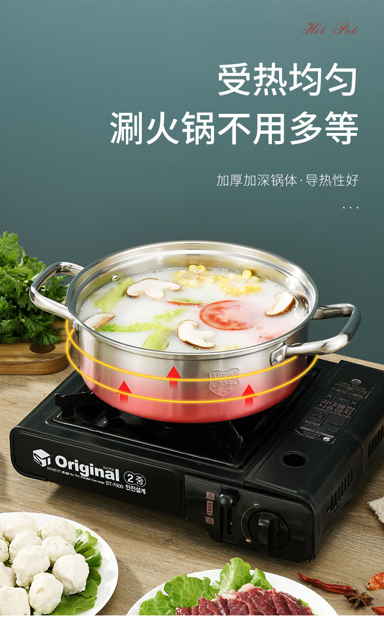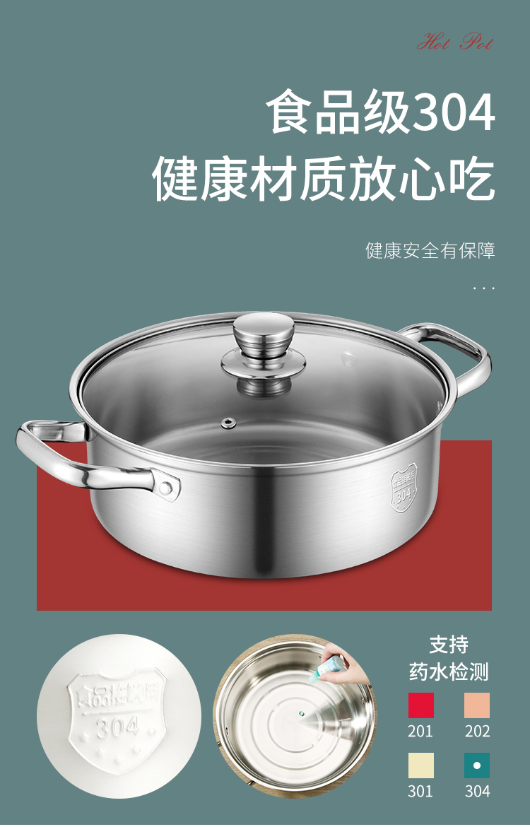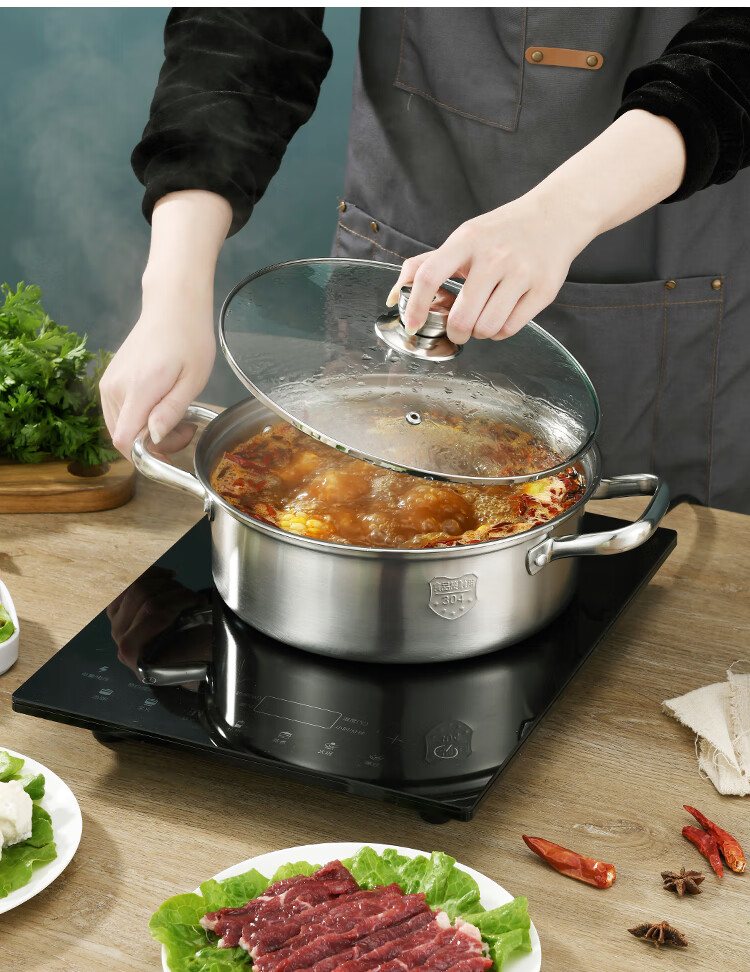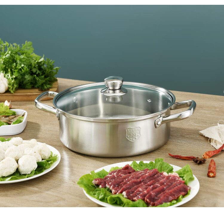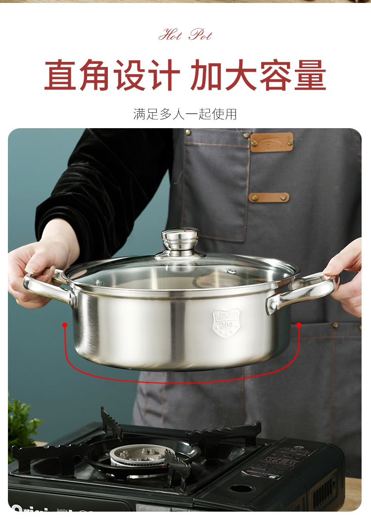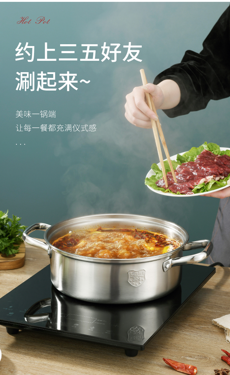 Baige 304 steel hot pot pot 26CM multi-functional soup pot hot pot pot household gas induction cooker universal BG1396 G1396