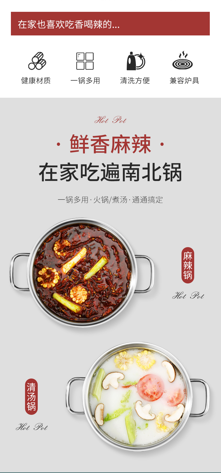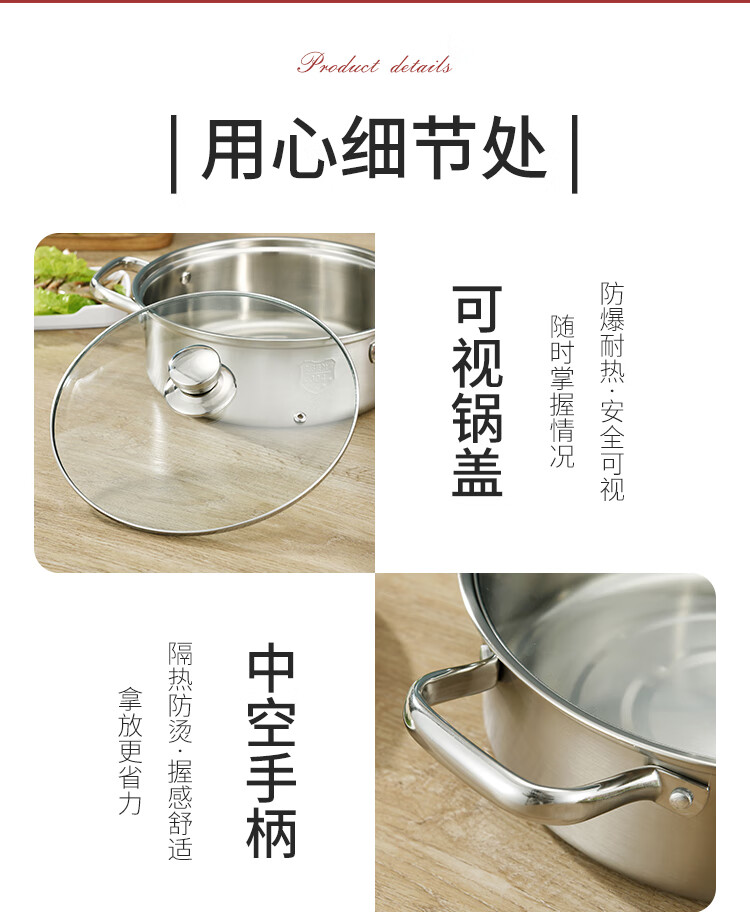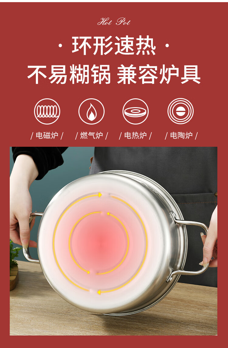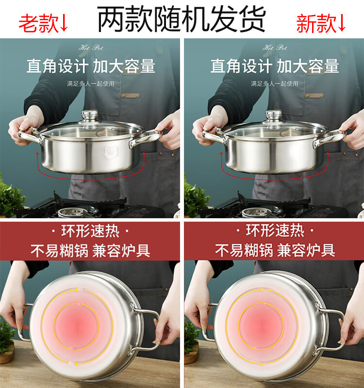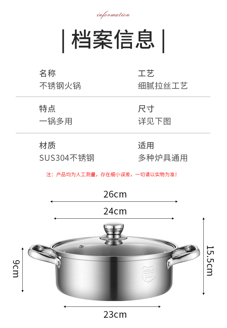 Baige 304 steel hot pot pot 26CM multi-functional soup pot hot pot pot household gas induction cooker universal BG1396 G1396
