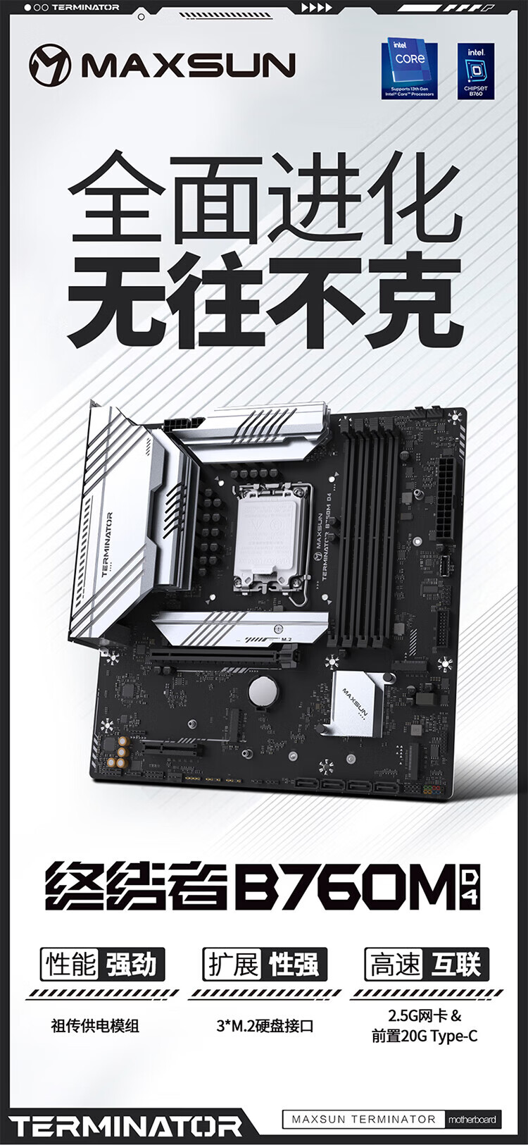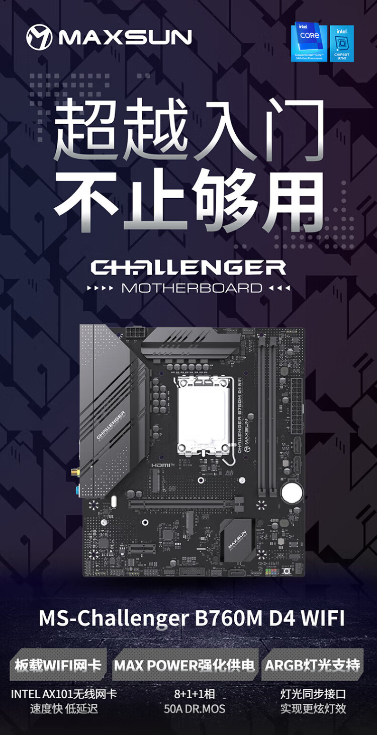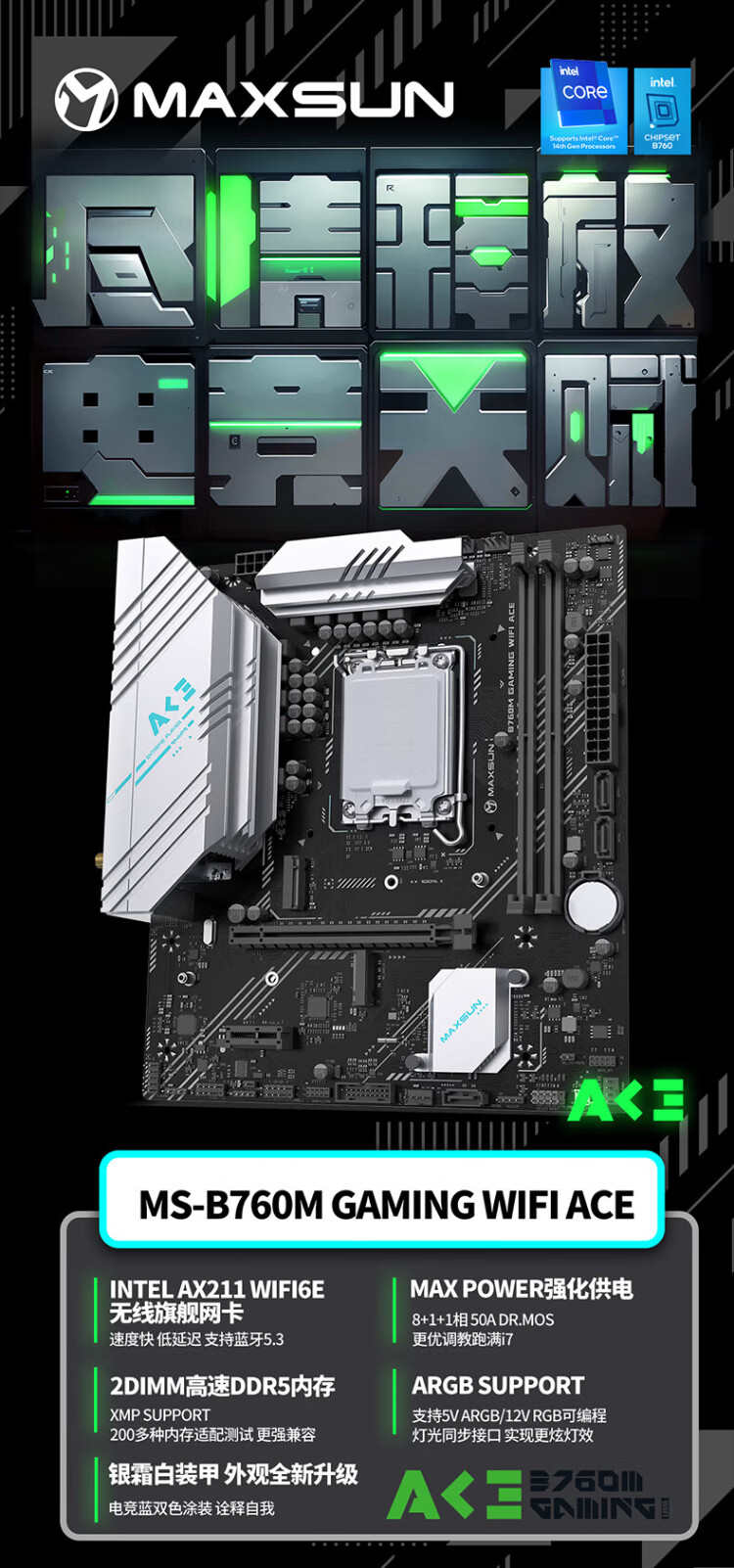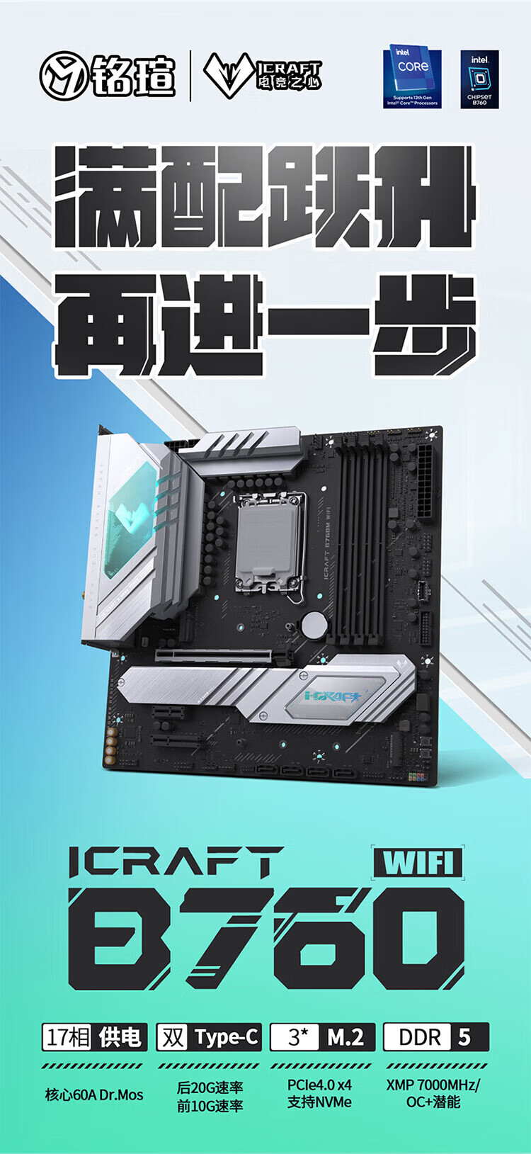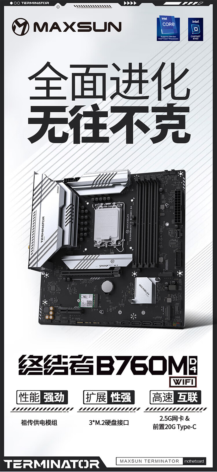 英特尔(Intel)酷睿12代CPU 铭瑄B760M终结者主板CPU套装 板u套装 B760M GAMING WIFI ACE D5 i3-12100 盒装【有核显】