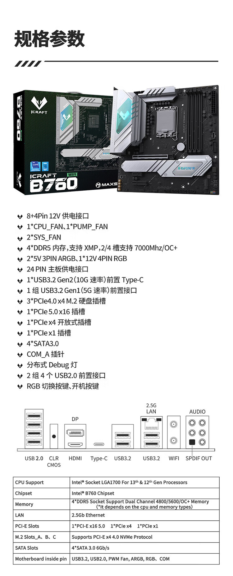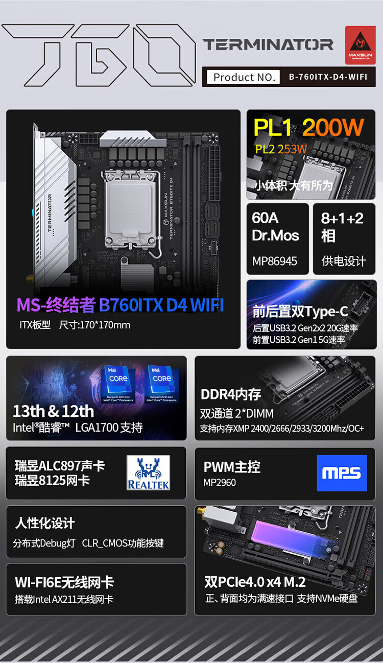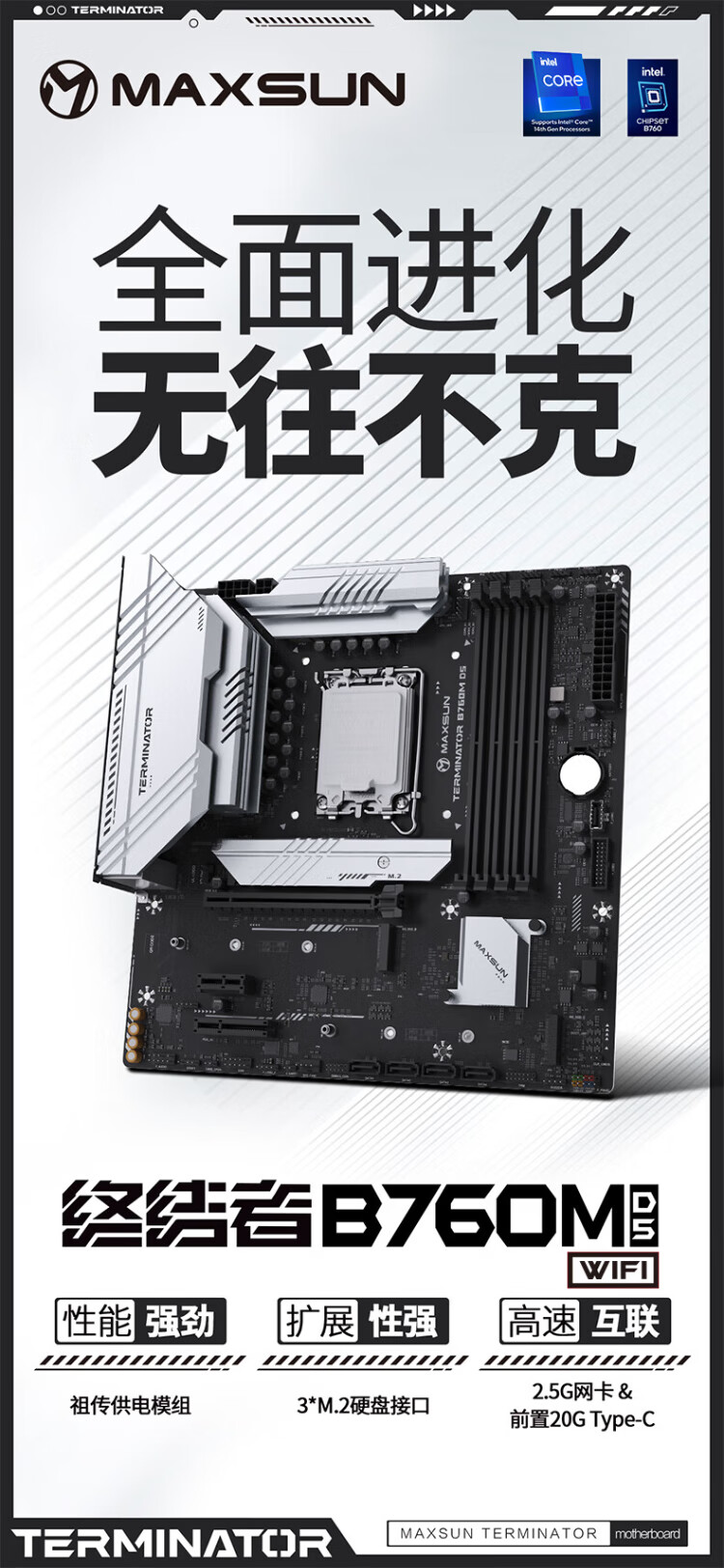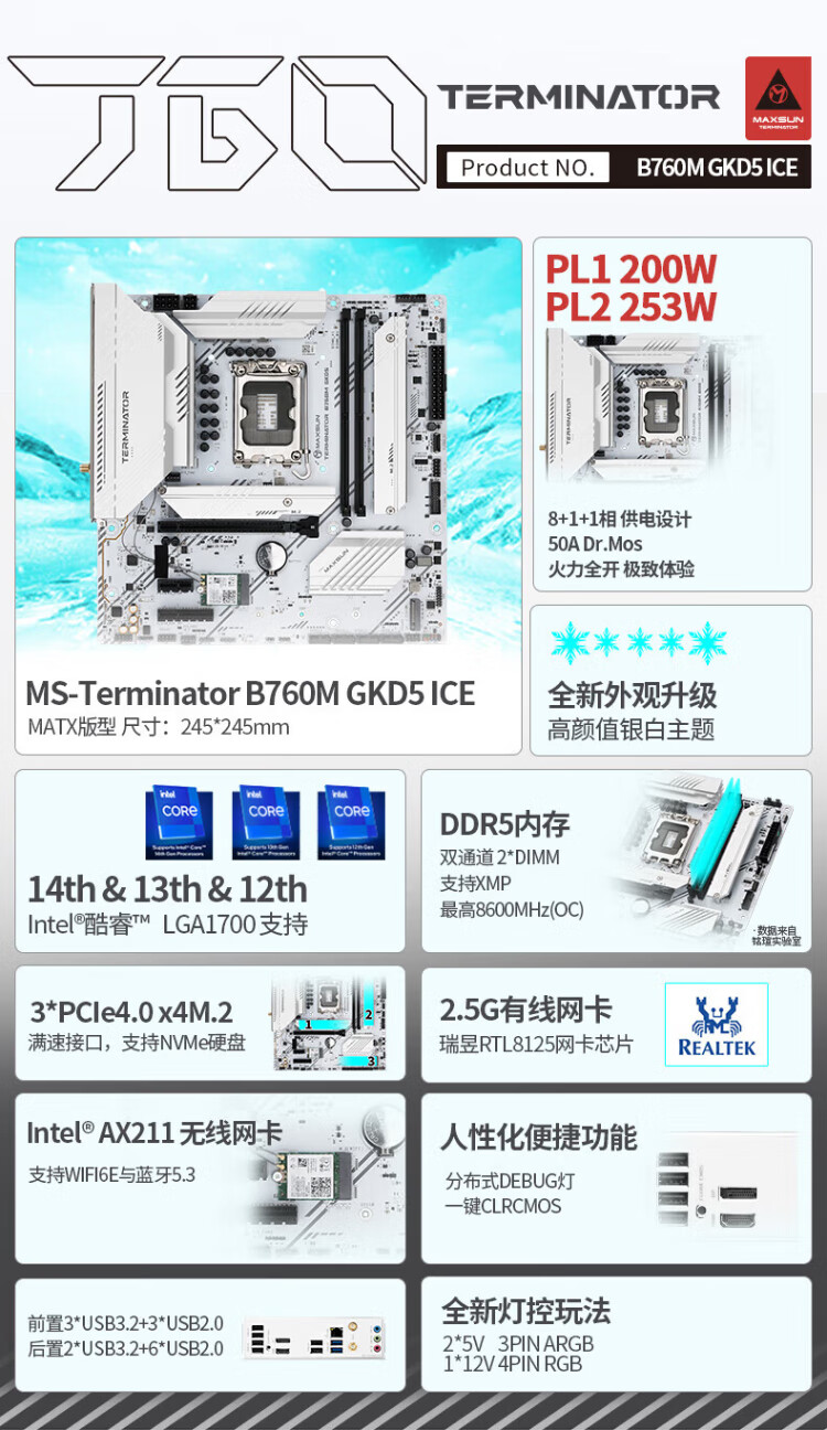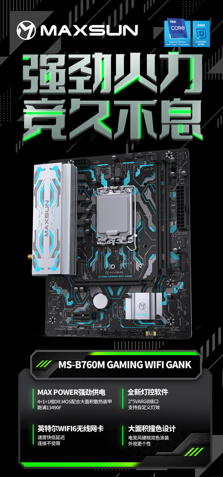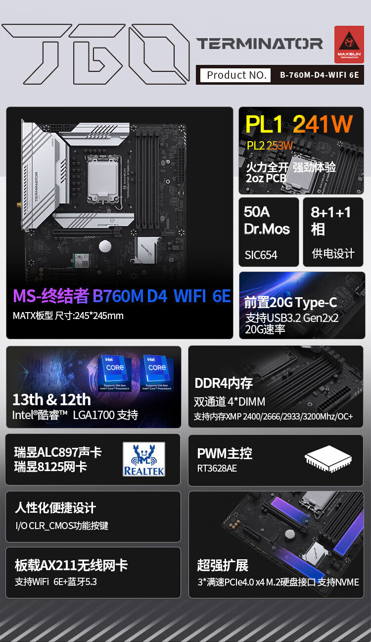 英特尔(Intel)酷睿12代CPU 铭瑄B760M终结者主板CPU套装 板u套装 B760M GAMING WIFI ACE D5 i3-12100 盒装【有核显】