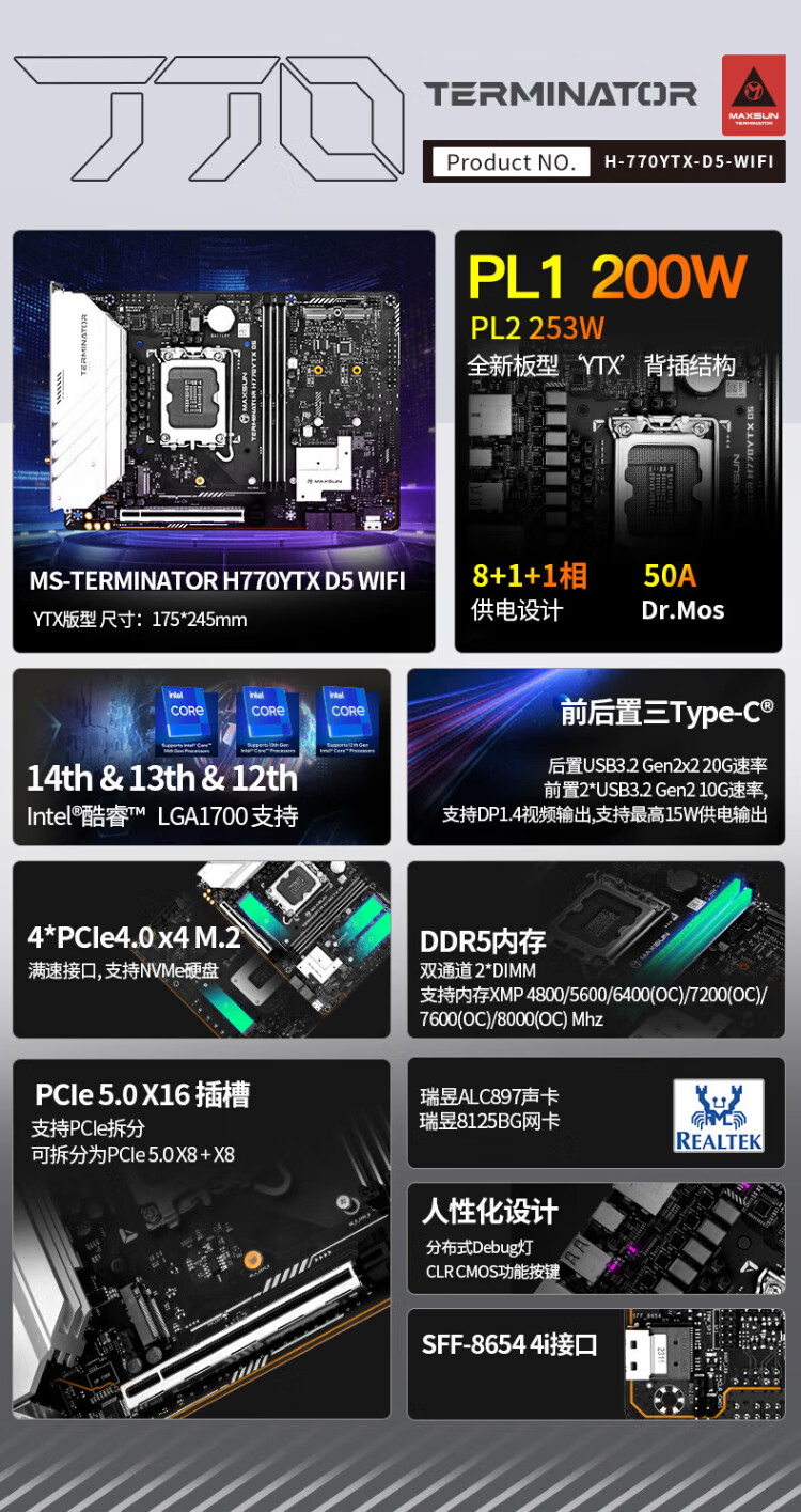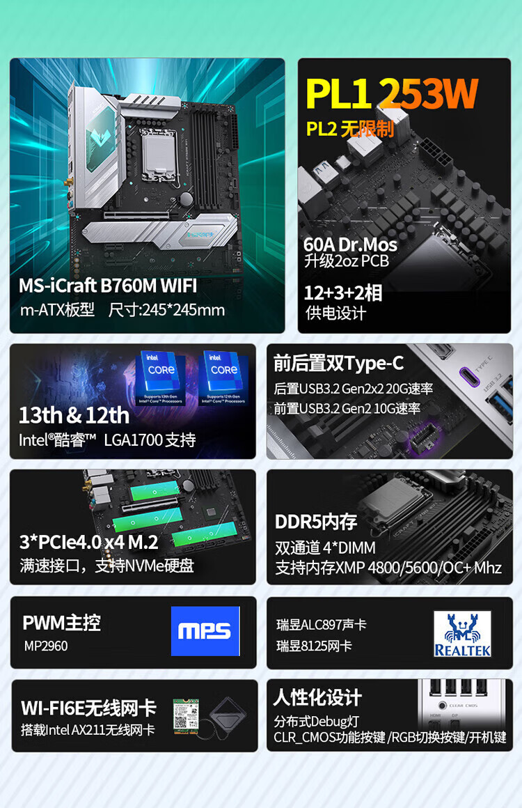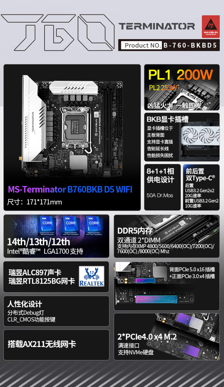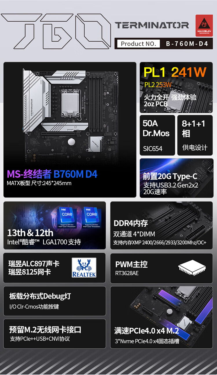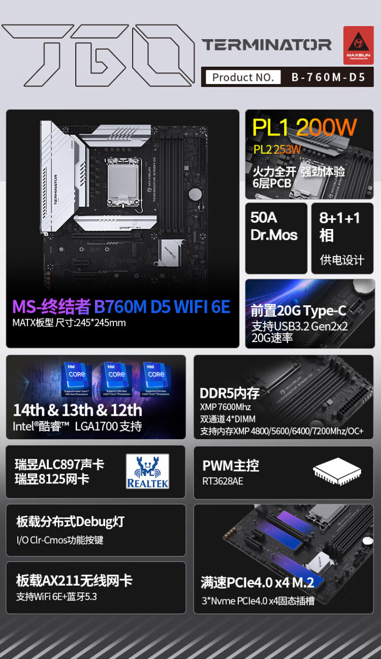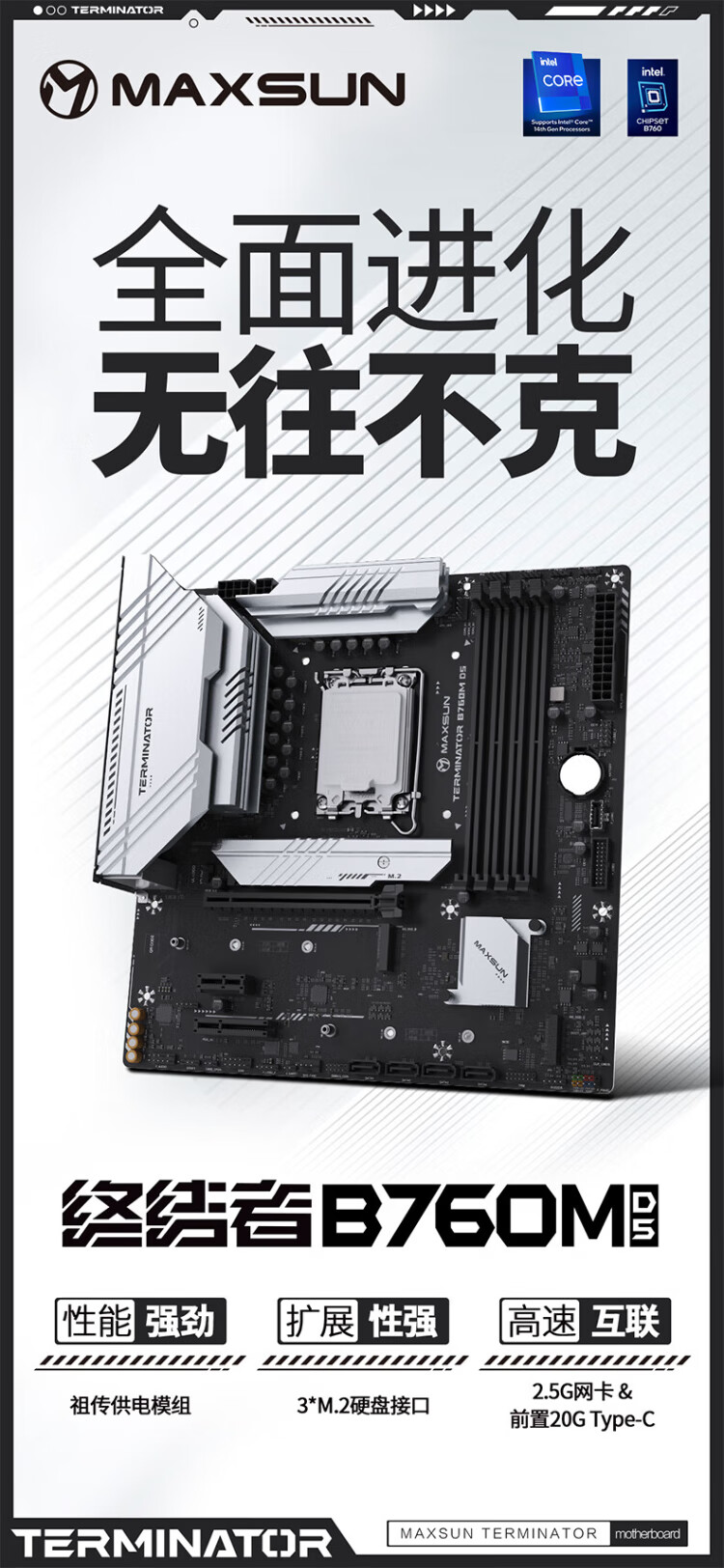 英特尔(Intel)酷睿12代CPU 铭瑄B760M终结者主板CPU套装 板u套装 B760M GAMING WIFI ACE D5 i3-12100 盒装【有核显】