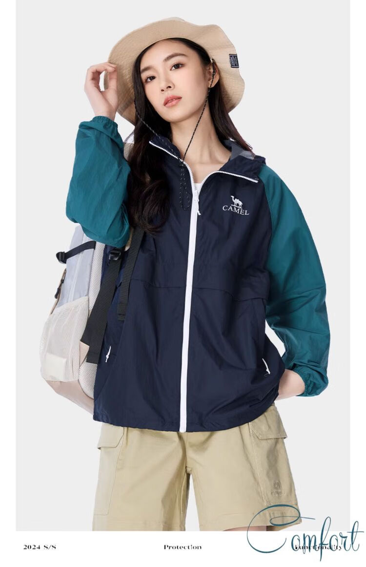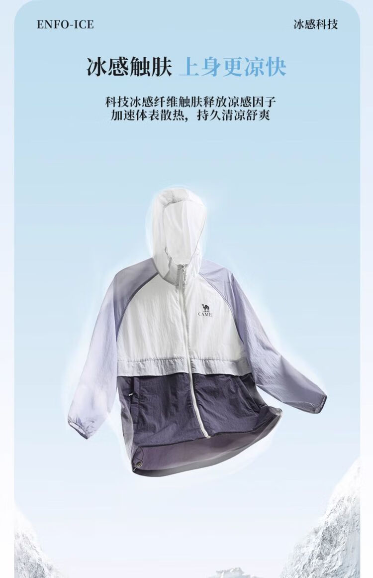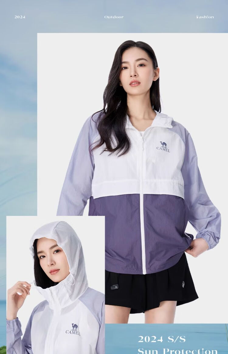 Camel [Sombra de montaña] Camel Ropa de protección solar de montaña al aire libre Primavera y verano Nueva protección solar ligera anti-UV Ropa de protección solar Jade Blanco/Manga Púrpura/Violeta Púrpura, Mismo estilo para hombres y mujeres M