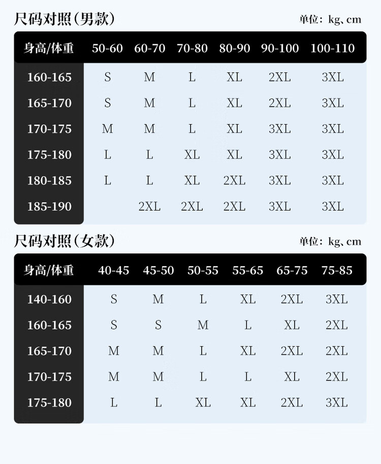 China (cm) 160-165/84-86 165-170 / 88-90 167-172 / 92-96 168-173 / 98-102 170-176 / 106-110