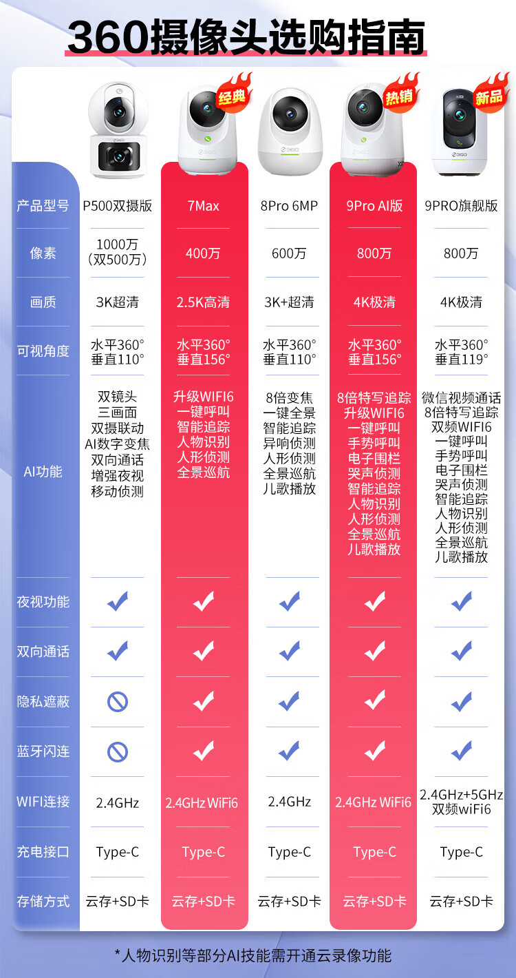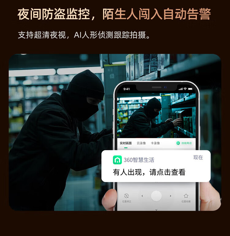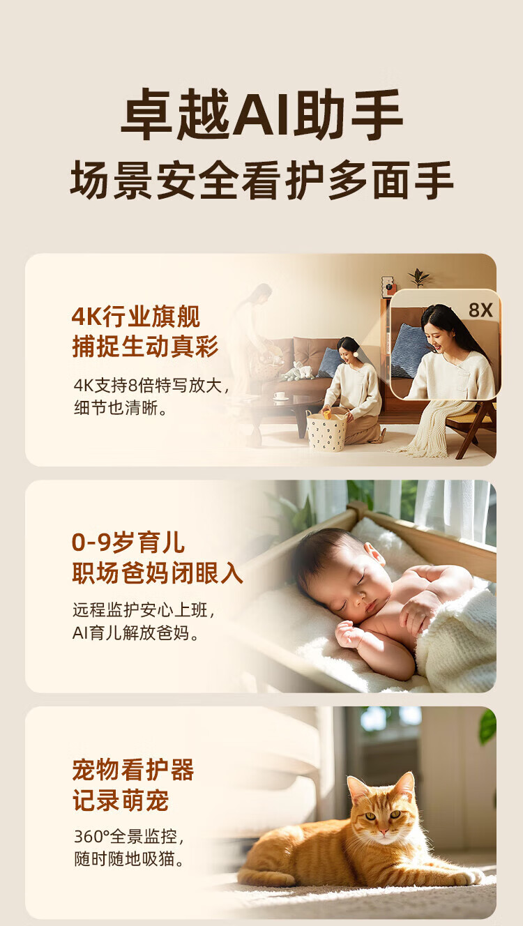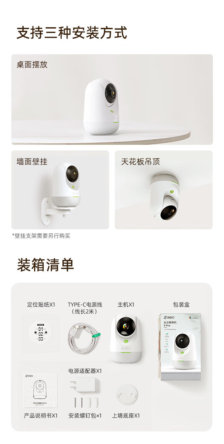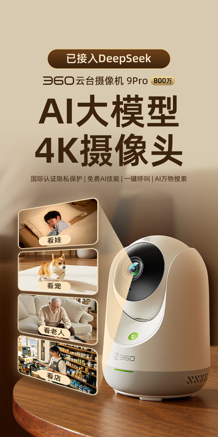 360 camera PTZ 9Pro 8 million 4K ultra-clear low light full color two-way call AI humanoid detection remote viewing WiFi home monitoring smart camera 8 million 9PRO+128G+4m extension cable+card reader