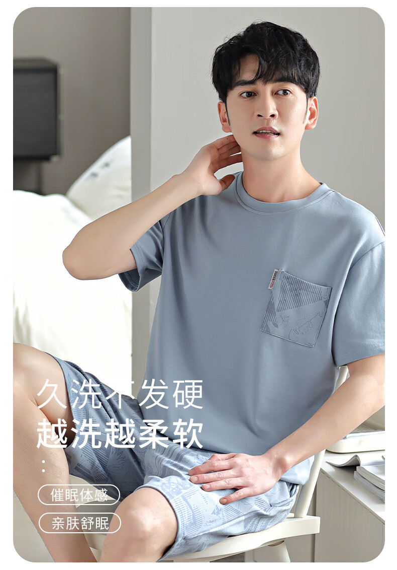 莫代尔男士睡衣男夏季新款棉薄款简约轻奢舒适凉感可外穿家居服套装夏天 ZY9764 XL 男-