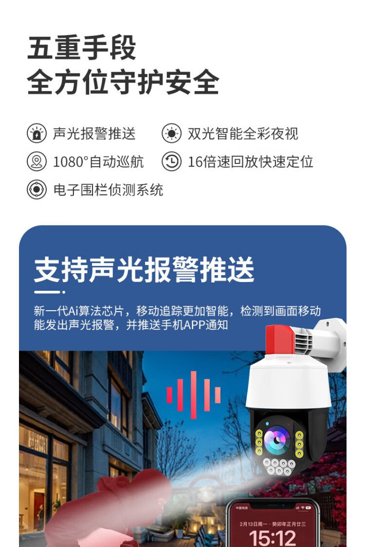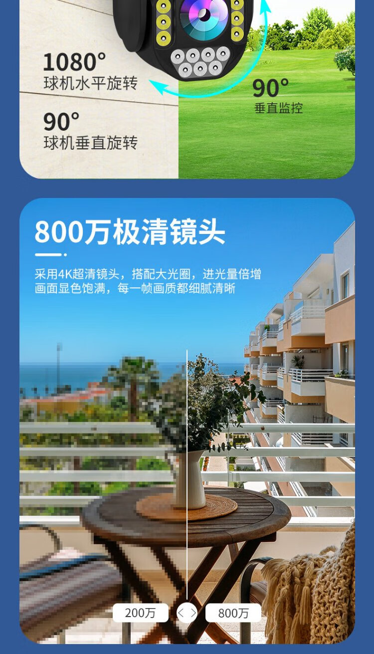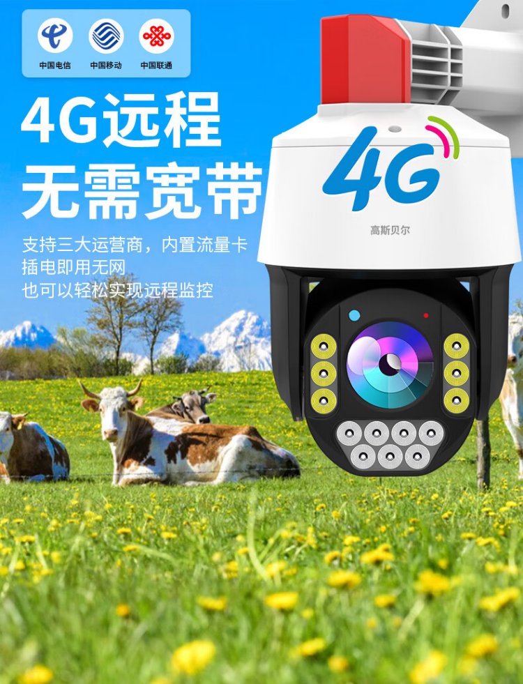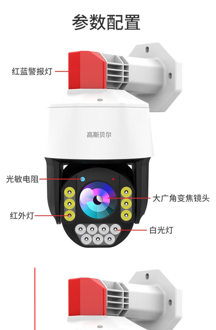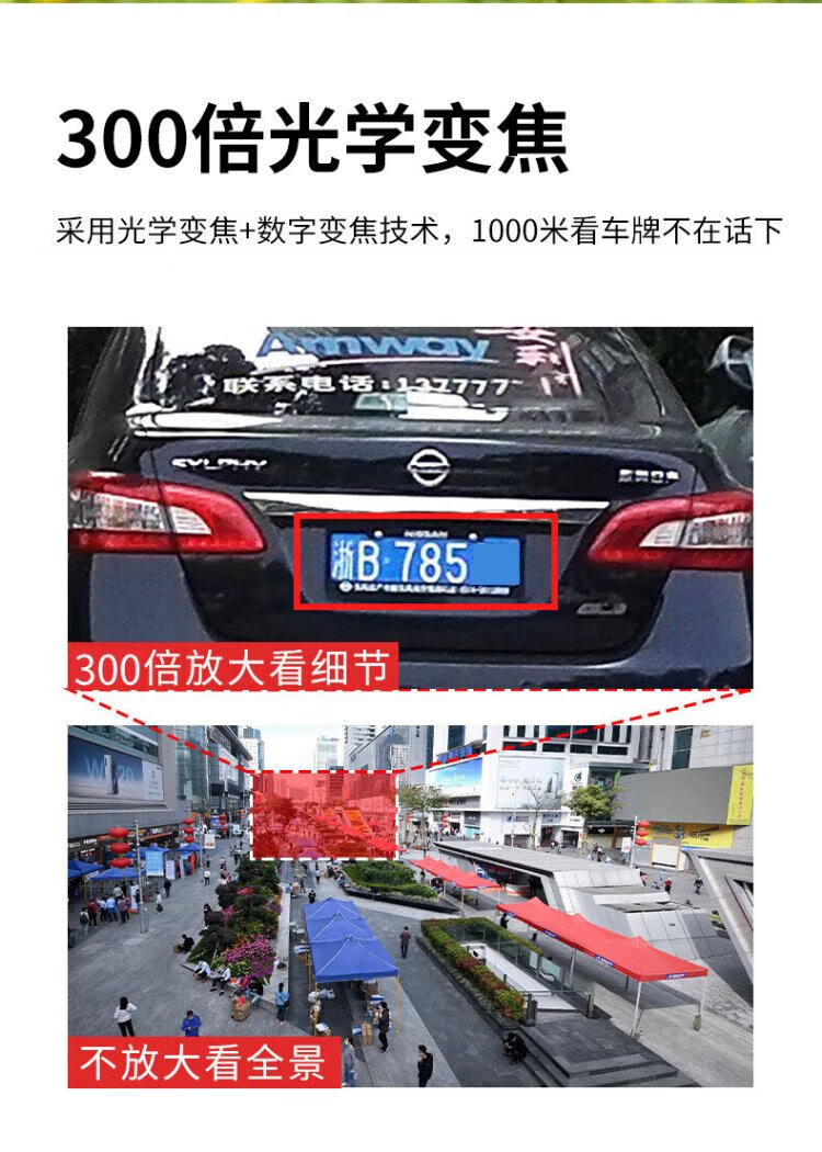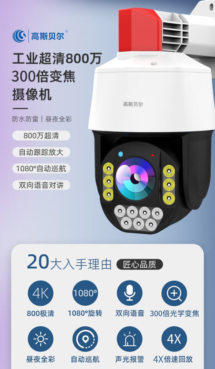 Gosbell surveillance camera home outdoor monitor 360-degree no blind spots with night vision ultra-high definition 4K optical zoom rural outdoor mobile phone remote fish pond orchard road construction site three-in-one 300x zoom + dual lens playback + full 128G