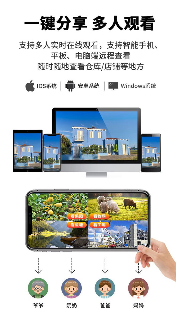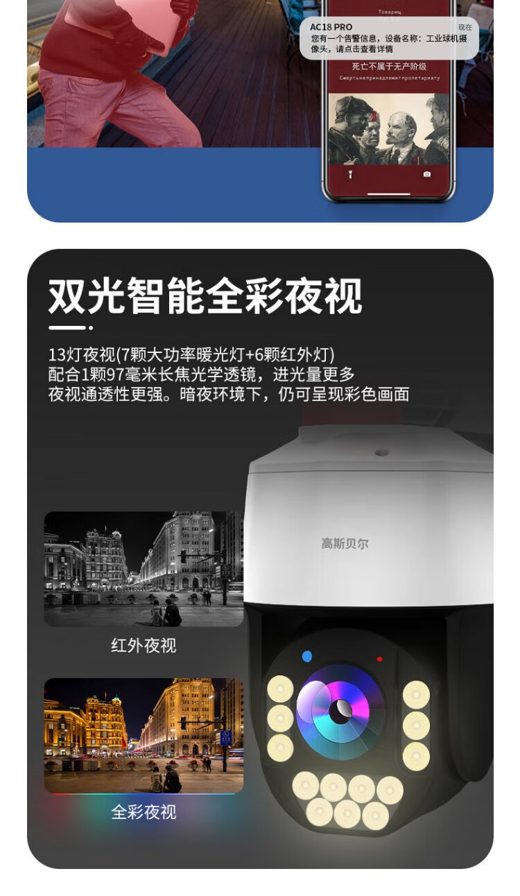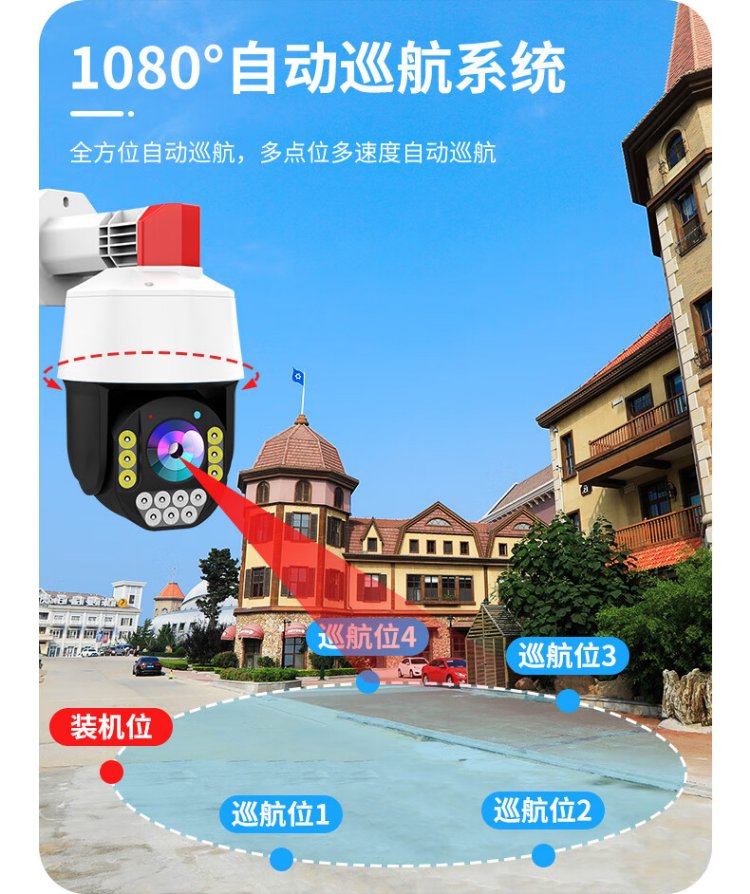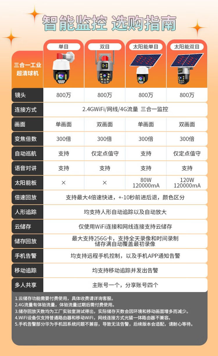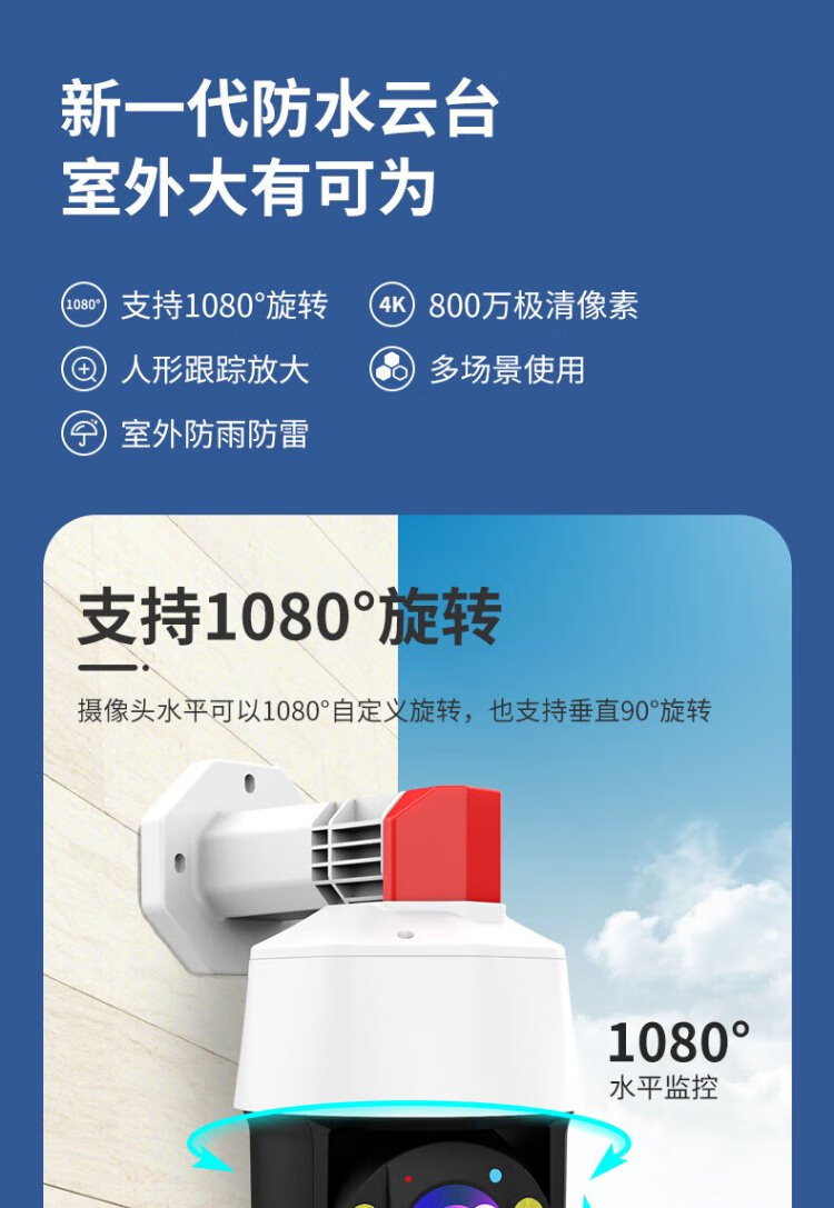 Gosbell surveillance camera home outdoor monitor 360-degree no blind spots with night vision ultra-high definition 4K optical zoom rural outdoor mobile phone remote fish pond orchard road construction site three-in-one 300x zoom + dual lens playback + full 128G