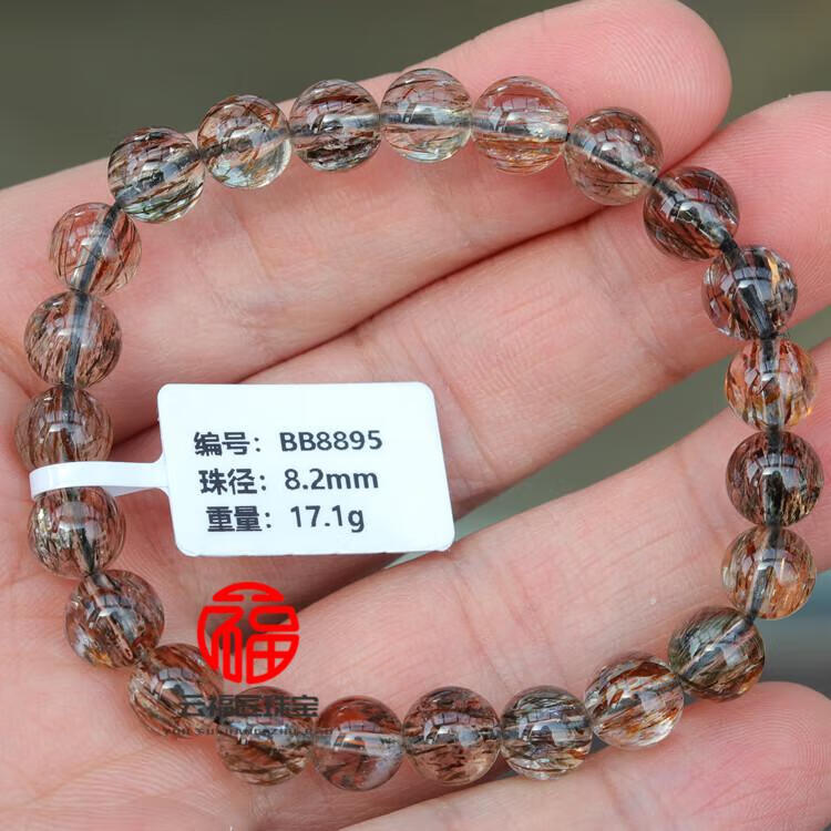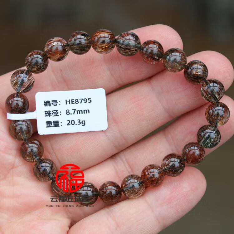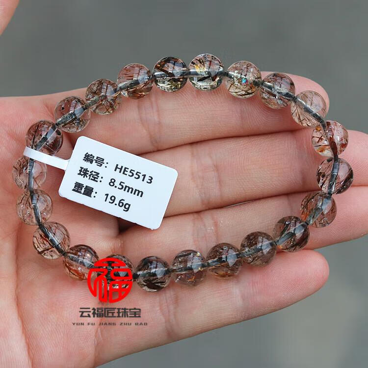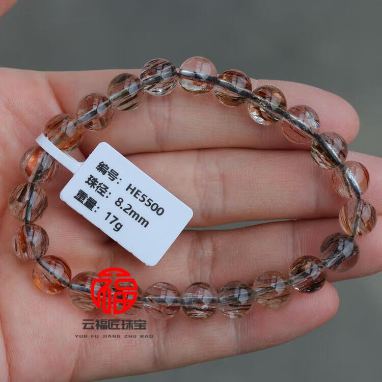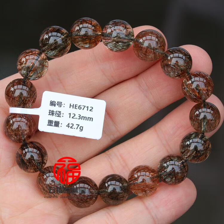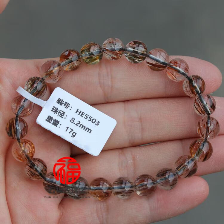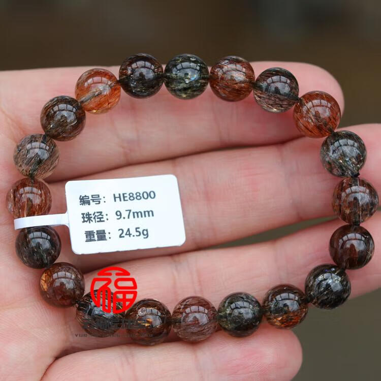 DL 1998胖东来品质金发晶手串天l然黑金超七水晶手链云母双轮金草莓骨干 CH9766
