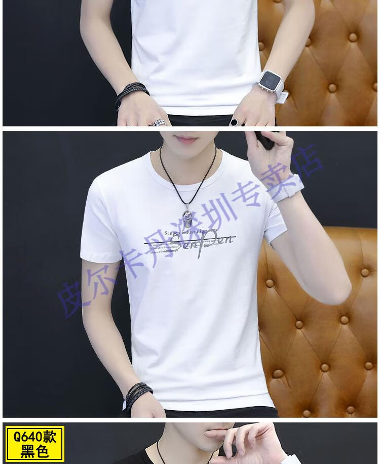 Pierre Cardin T-shirt men's short-sleeved 2024 new men's ice silk top summer T-shirt pure cotton half-sleeved t-blood round neck Q655 black 3XL 155-170Jin Jin equals 0.5 kg