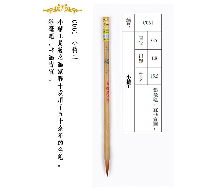 上海周虎臣狼毫毛笔小精工小楷簪花蝇头小字笔特细国画勾线描边笔 小精工 【出锋1.8cm】 小楷【中华老字号 始创1694