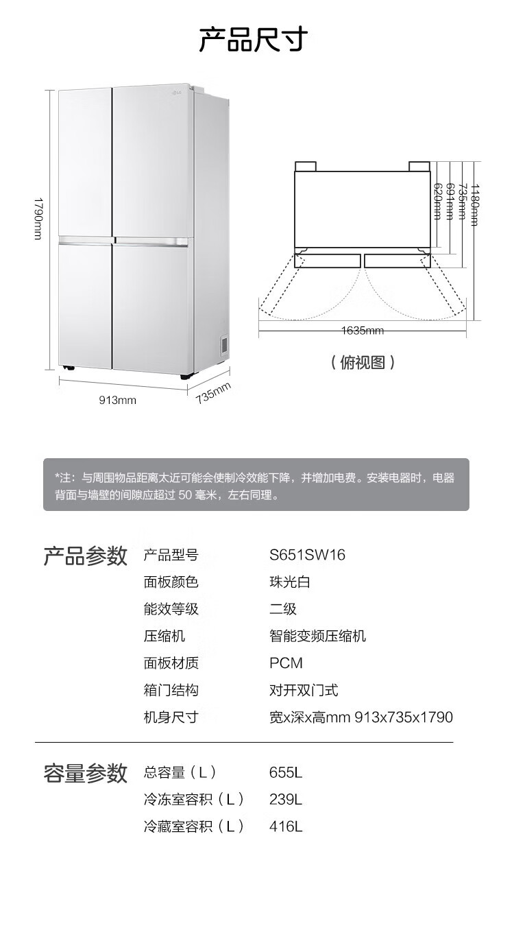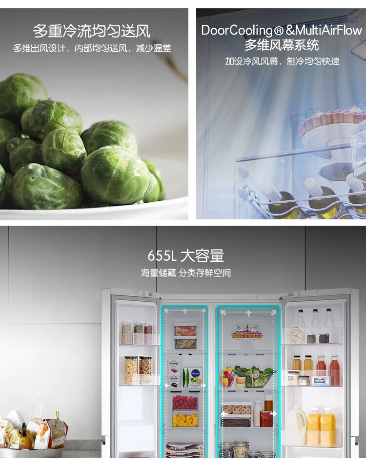 LG风冷无霜655升对开门S651SW16冰箱 智慧变频 电脑控温 速冻恒温