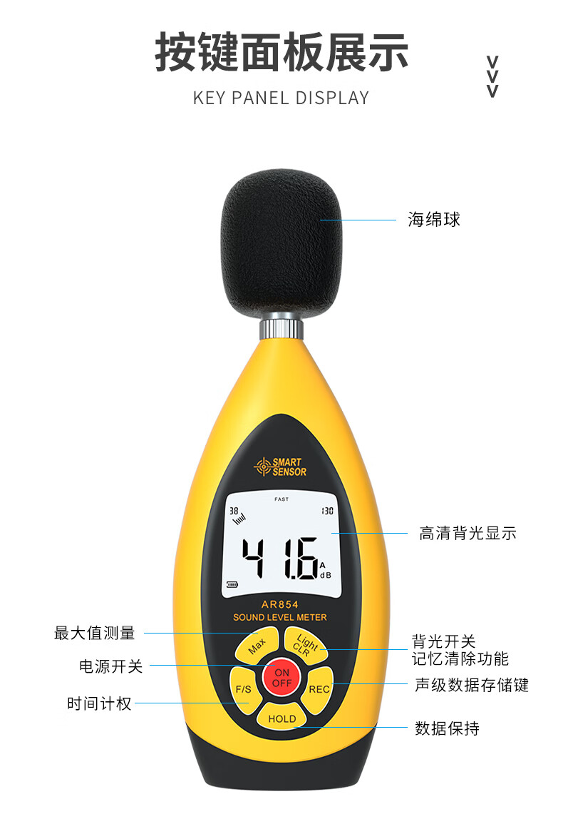 AR854 compteur de bruit décibel mètre haute précision sonomètre de qualité industrielle détection compteur de bruit AR
