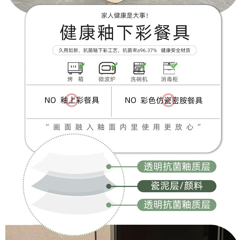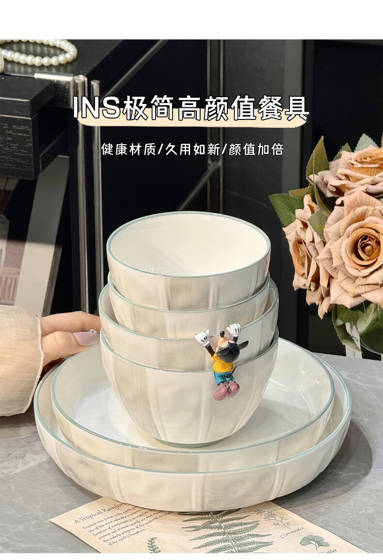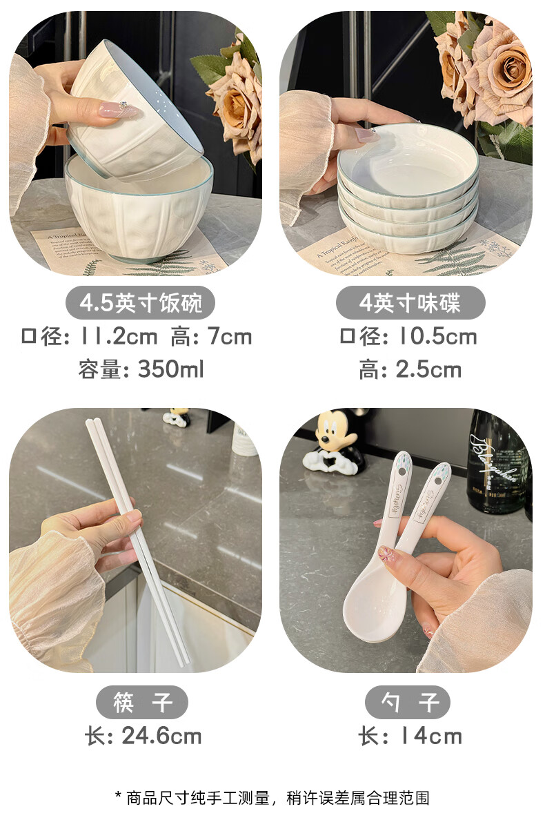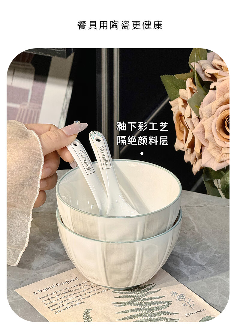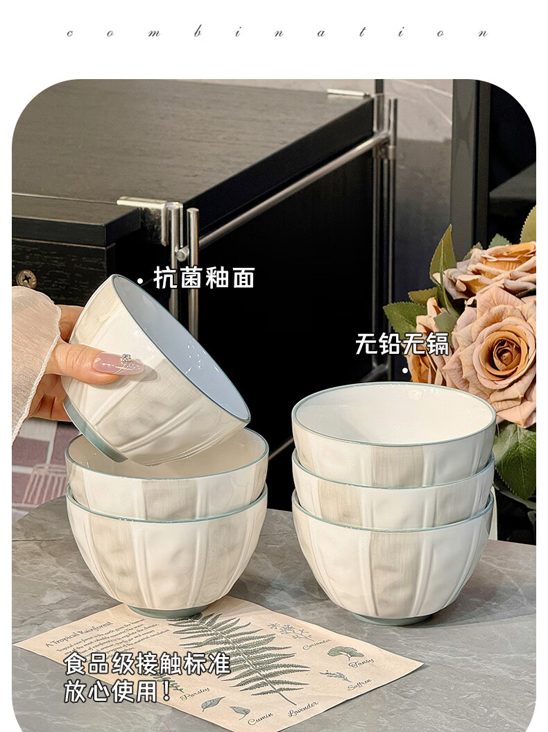 Qipai Internet Celebrity Keramikschüssel-Set, Haushalt, Hochtemperatur-Unterglasurfarbe, Essschüssel, Suppenschüssel, hochwertiges Geschirr, Teller und Geschirr, komplettes Set, Unterglasurfarbe, 4,5-Zoll-Schüssel, 4 Stück, 1429