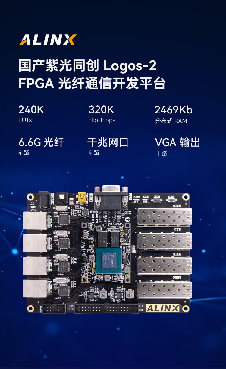 ALINX紫光同创FPGA开发板黑金国产Logos2 光纤通信以太网PG2L200H AXP201 AN9767 DA套餐