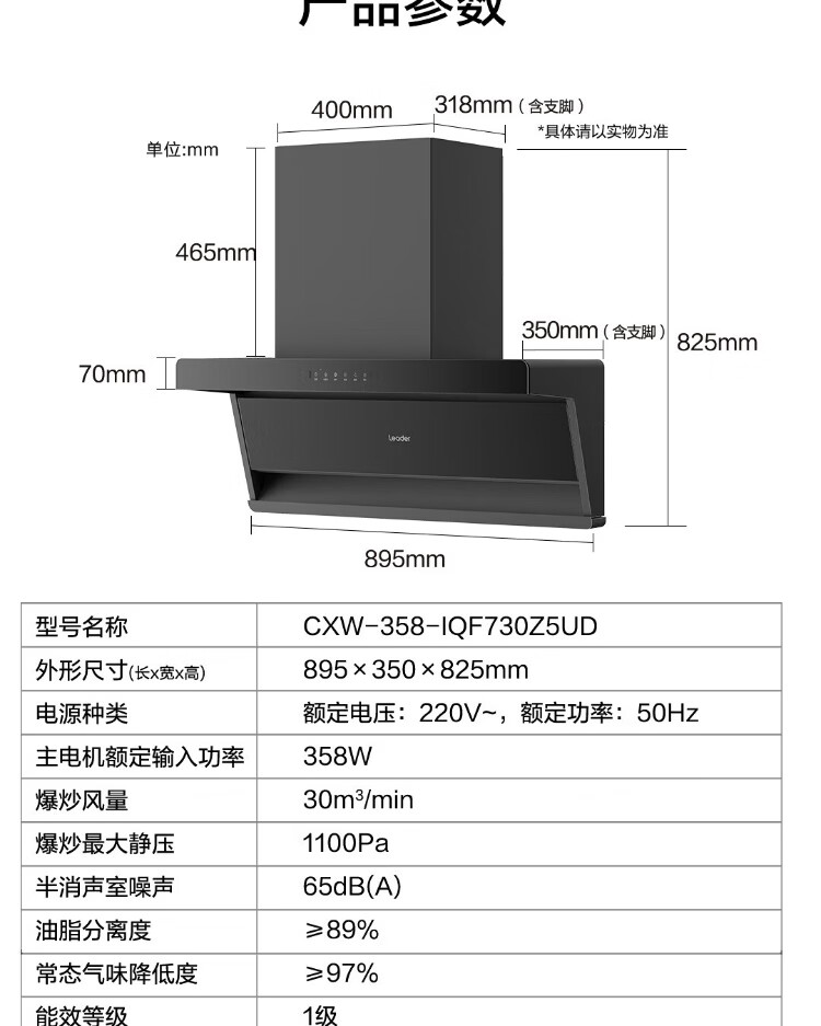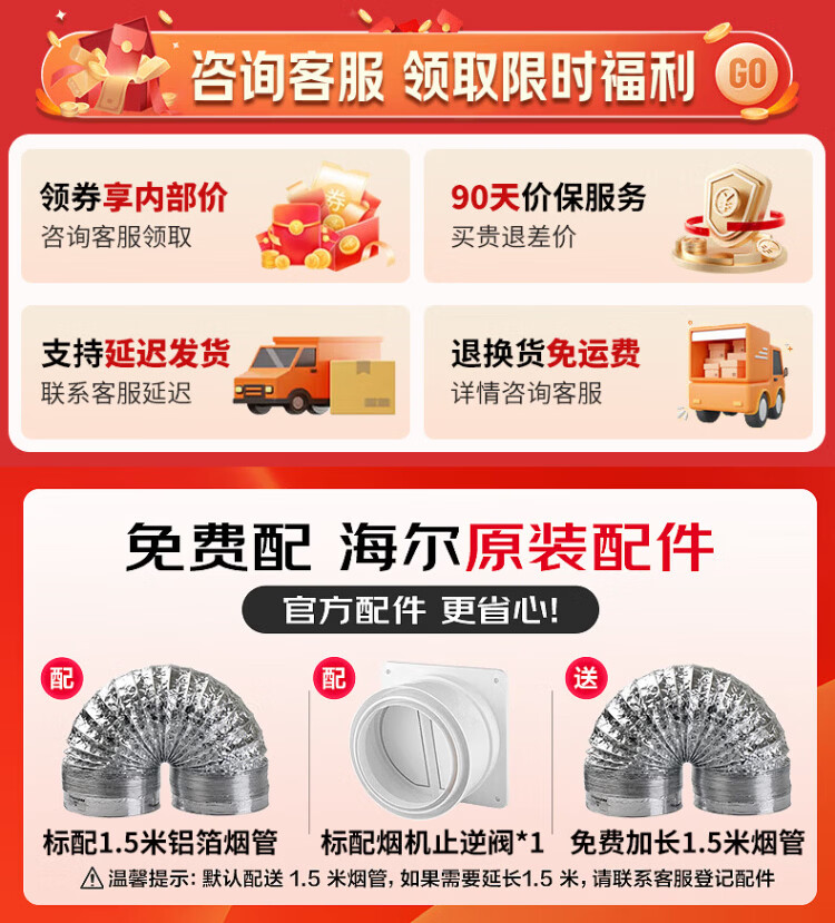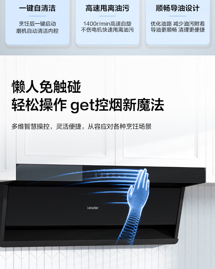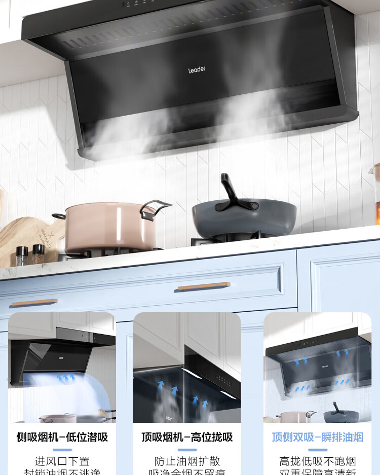 海尔抽油烟机30立方大吸力家用顶侧双吸油烟机燃气灶具炉灶套装厨房三件套一级能效以旧换新Leader 【450】25m³大吸力单烟机