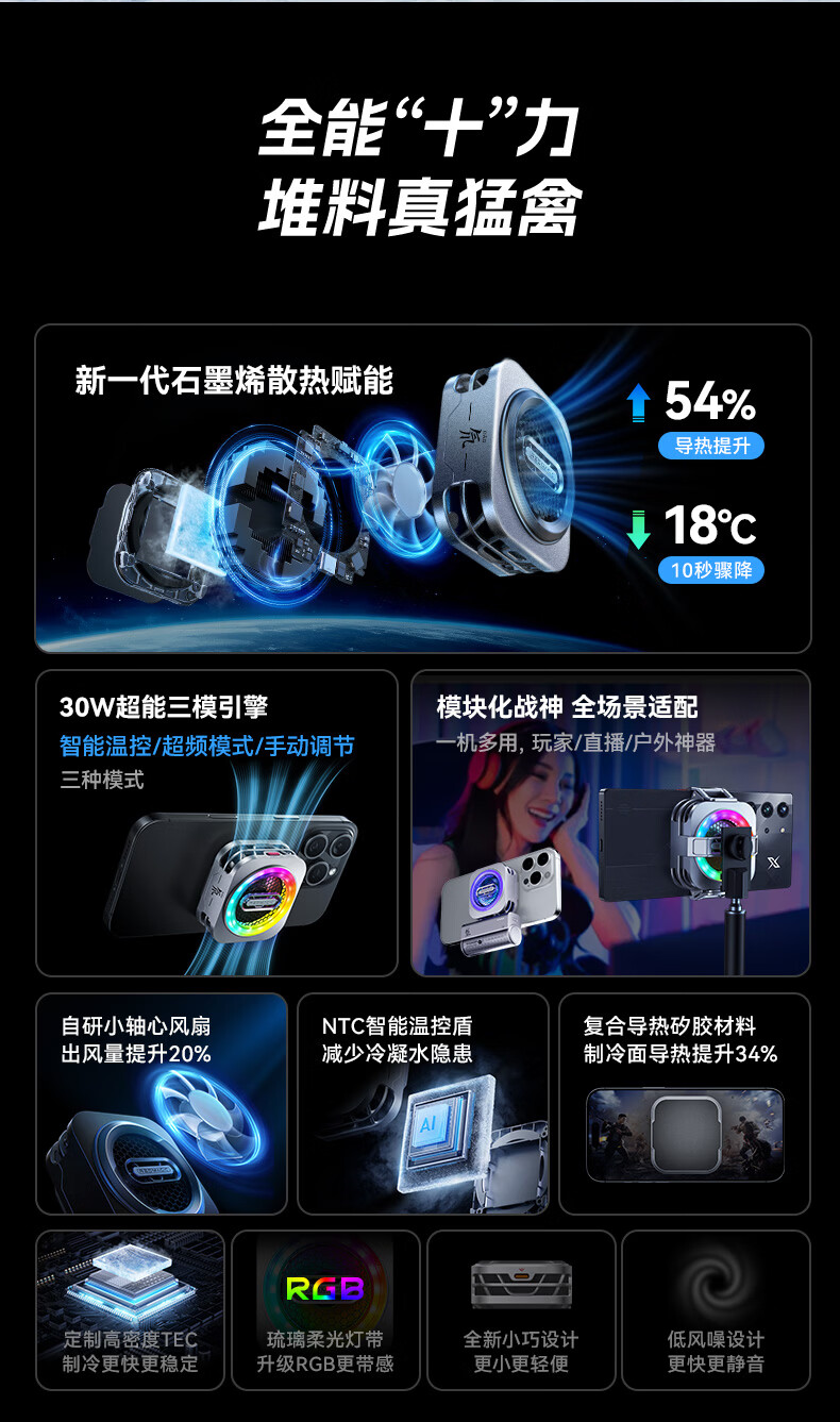 努比亚红魔磁吸散热器5/6Pro液冷背夹多形态手机游戏直播半导体降温神器 磁吸散热器5Pro【孙尚香+背夹】