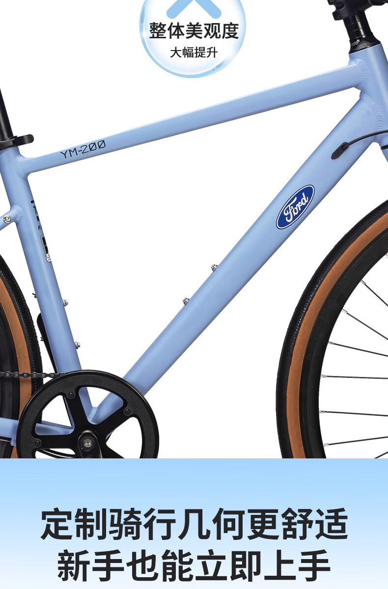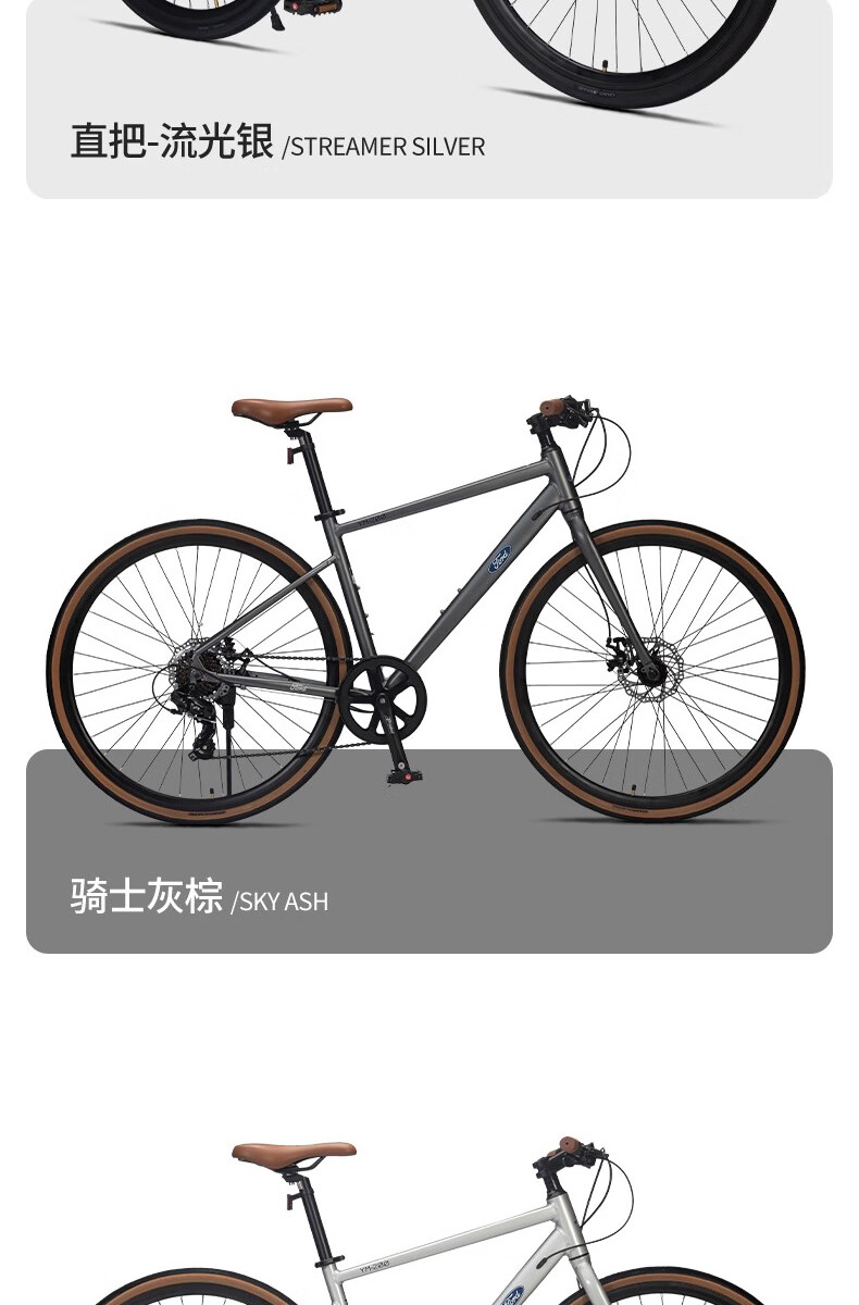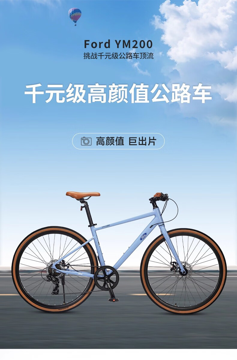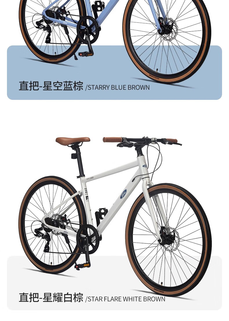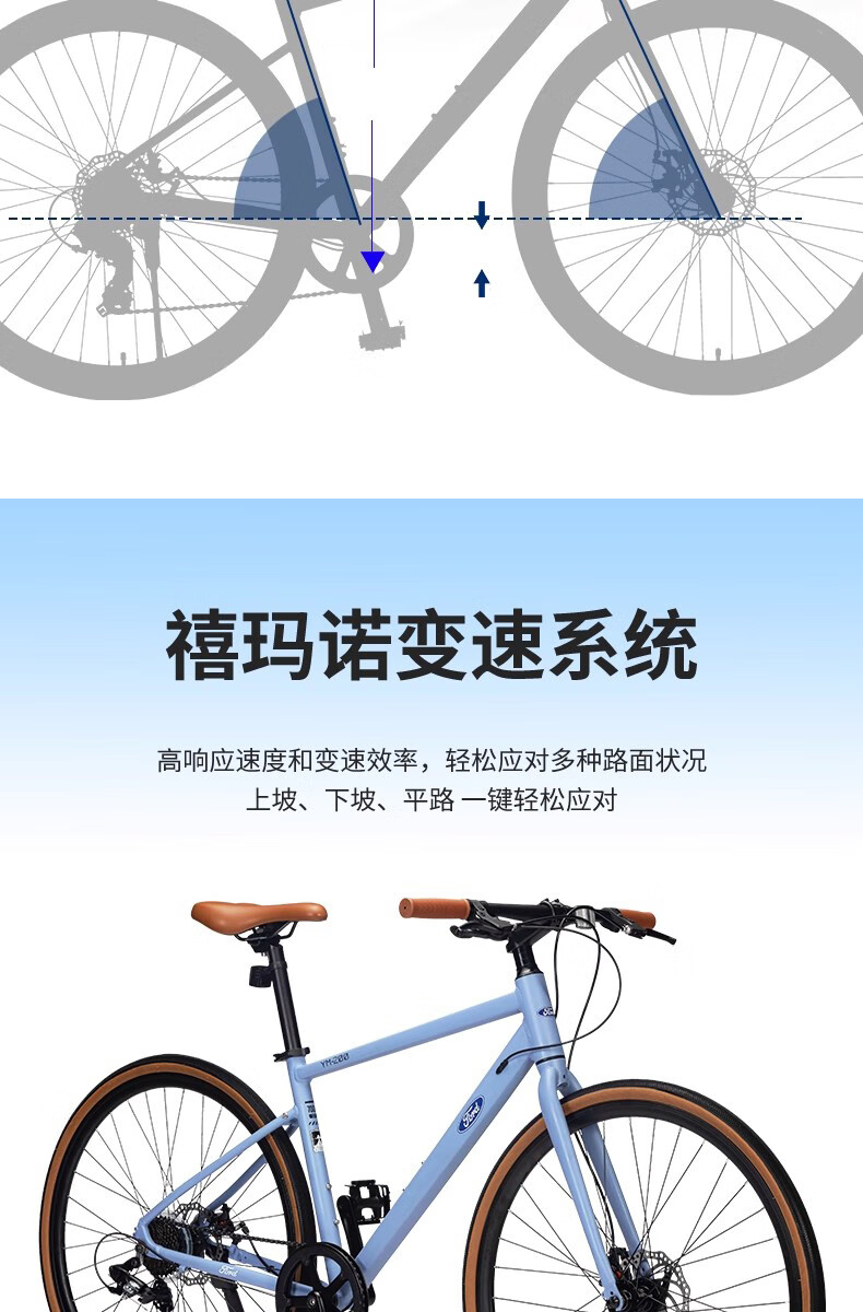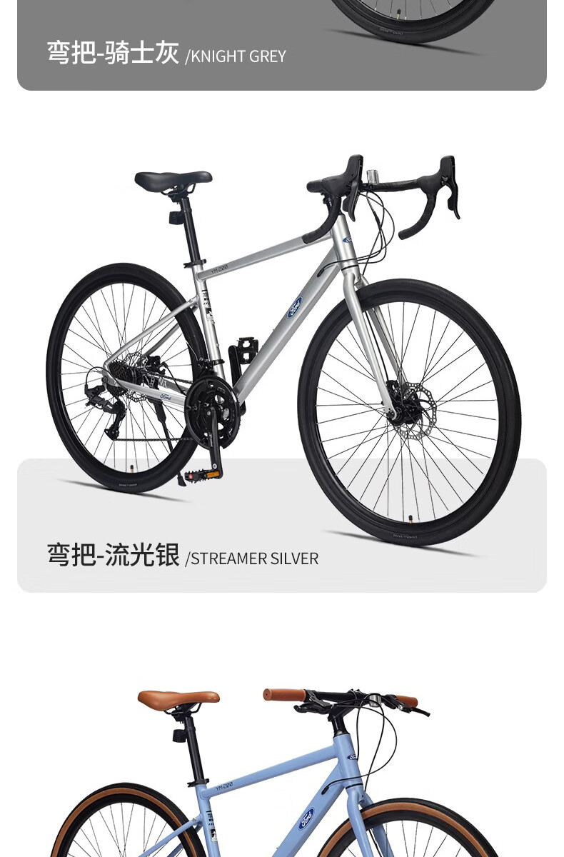 福特公路自行车YM200蓝图14速 铝合金车架线拉碟刹成人男女款单车 直把/骑士灰 M码 建议【155-175cm】