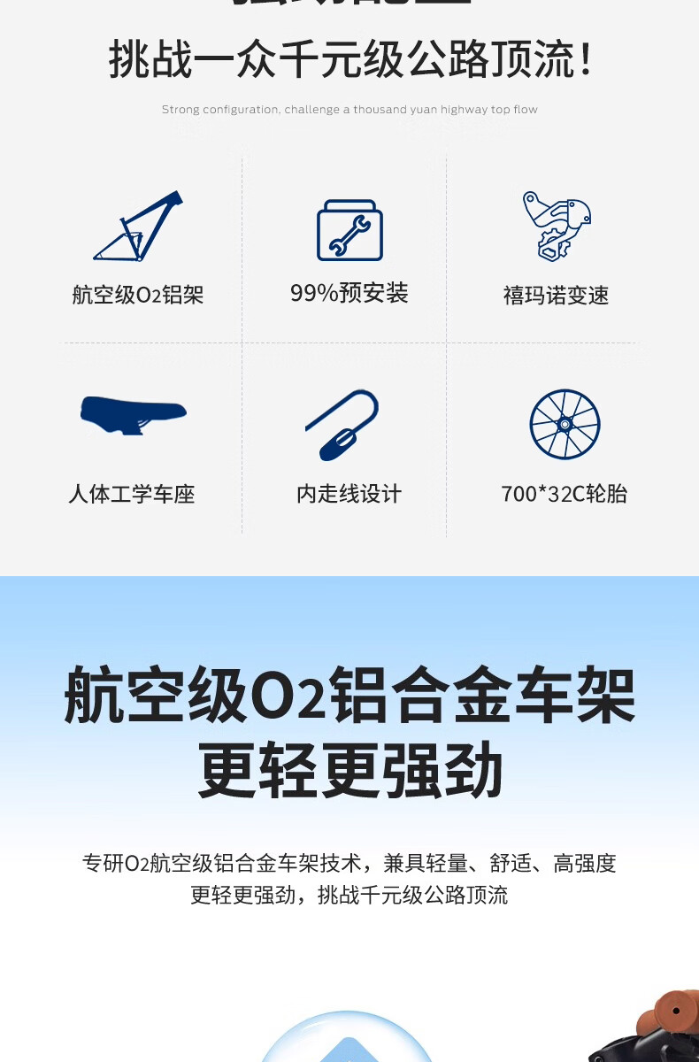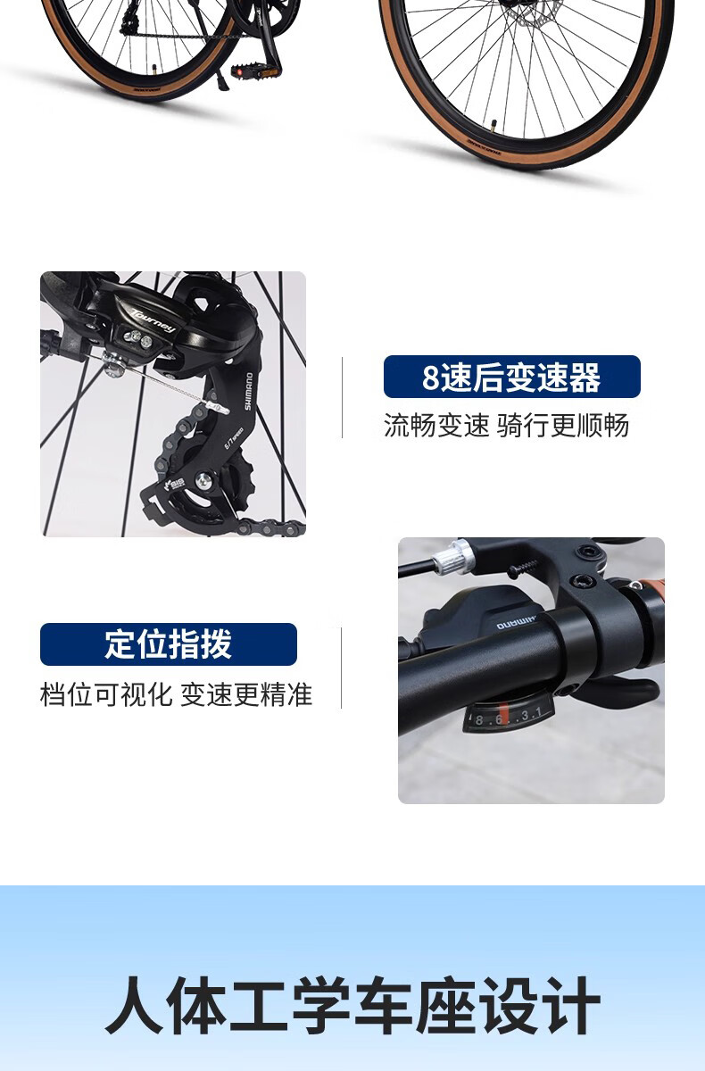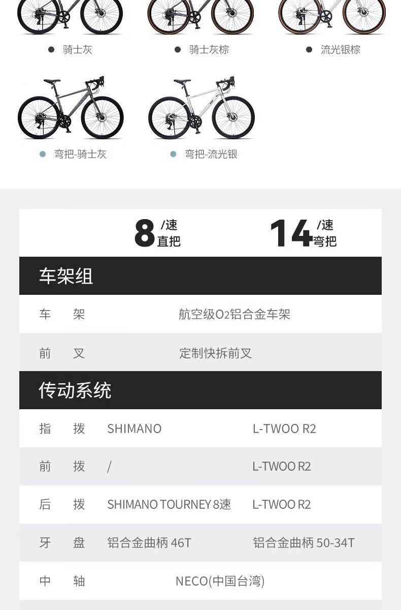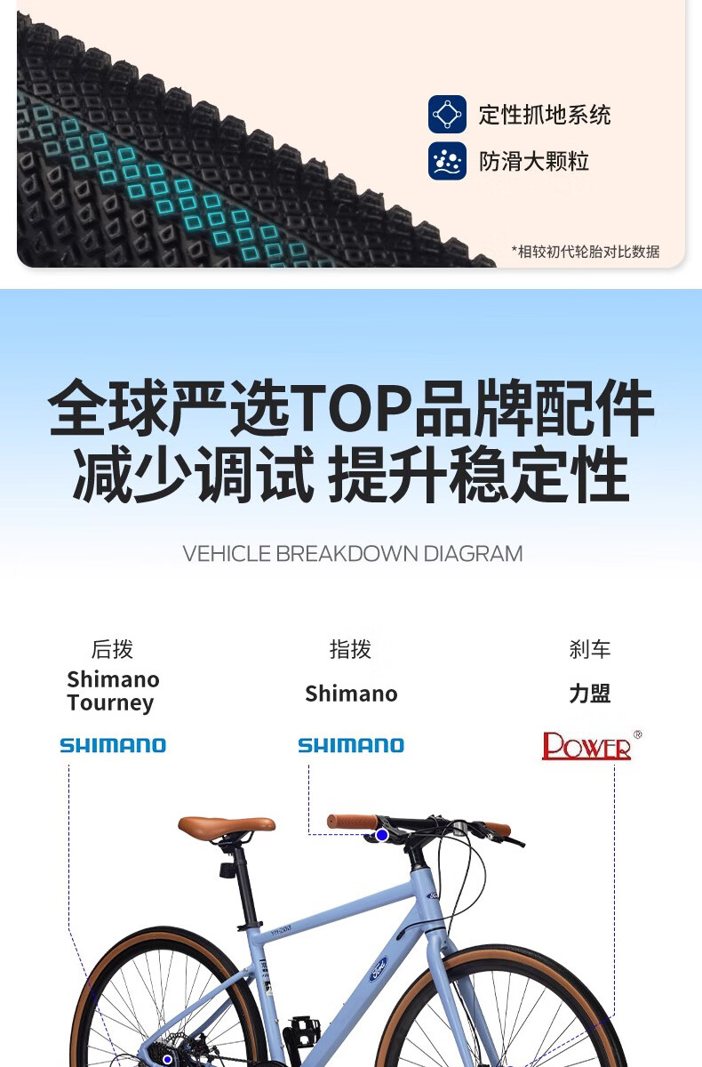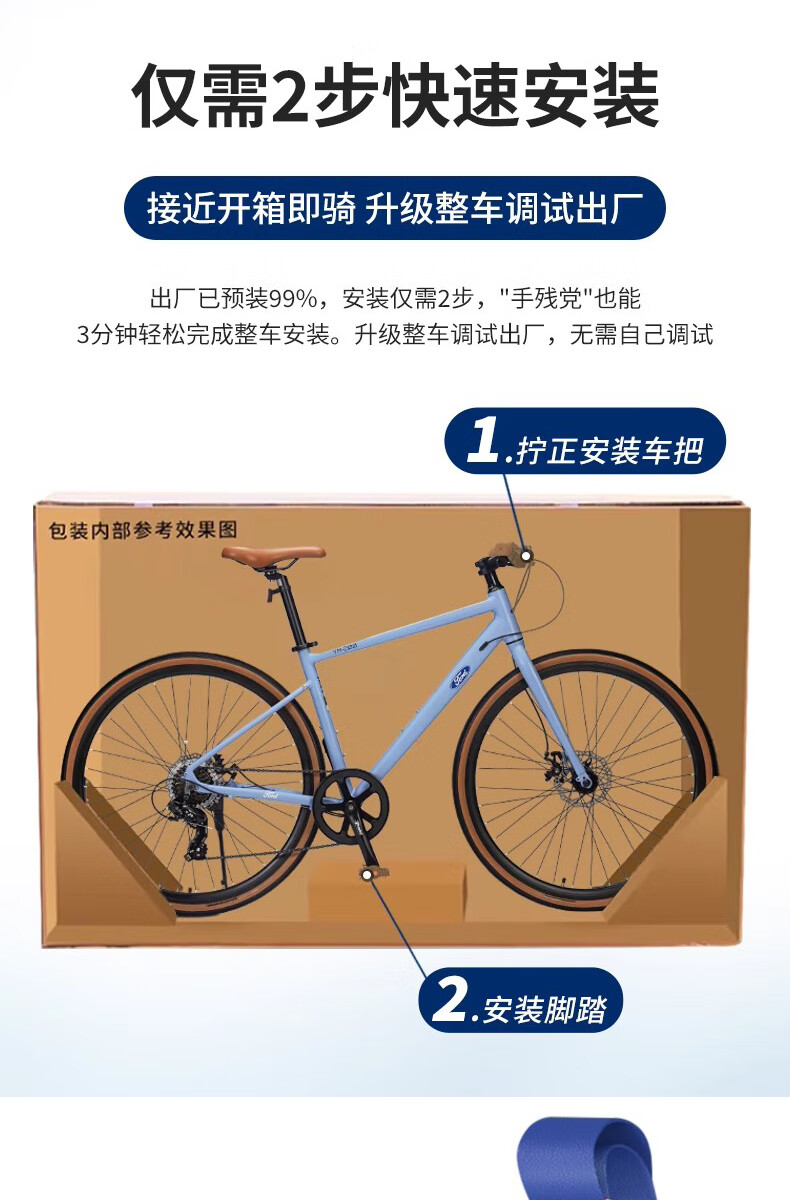 福特公路自行车YM200蓝图14速 铝合金车架线拉碟刹成人男女款单车 直把/骑士灰 M码 建议【155-175cm】