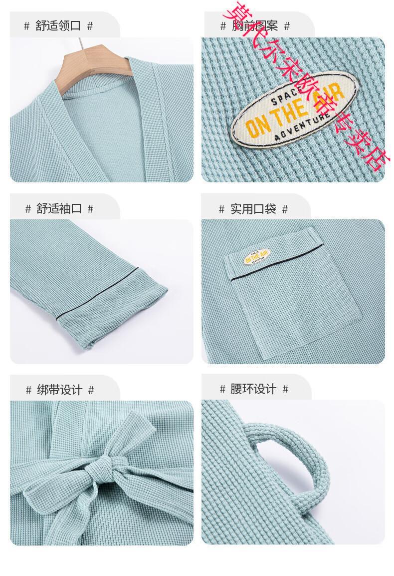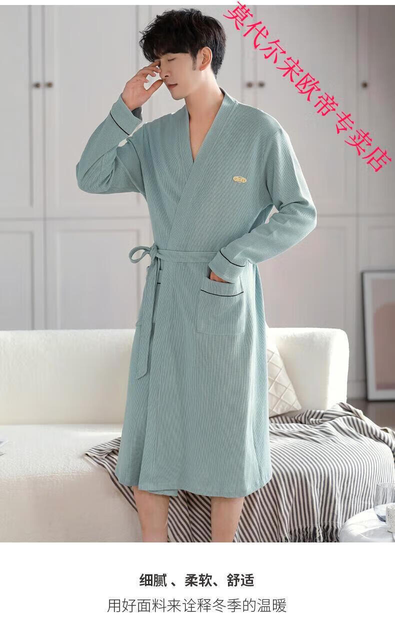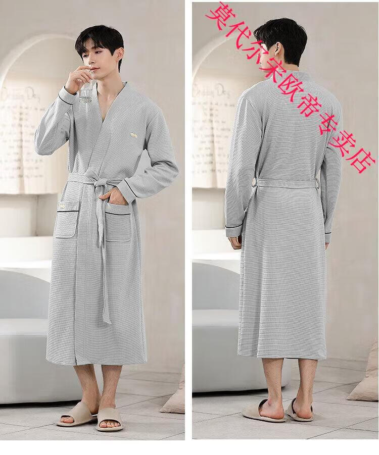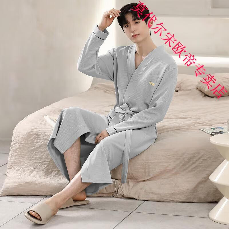 莫代尔2024年新款睡袍男春秋季棉质华夫格长袖浴袍中长款四季通用家居服 AS16822KAW L 男款