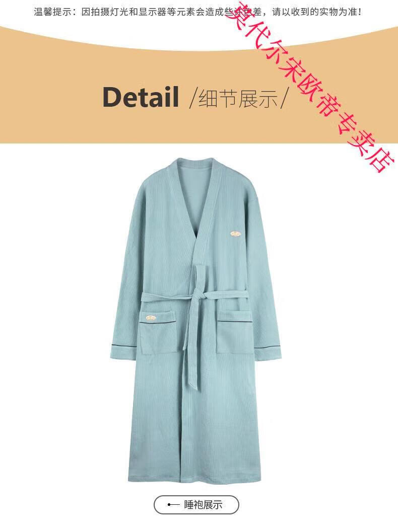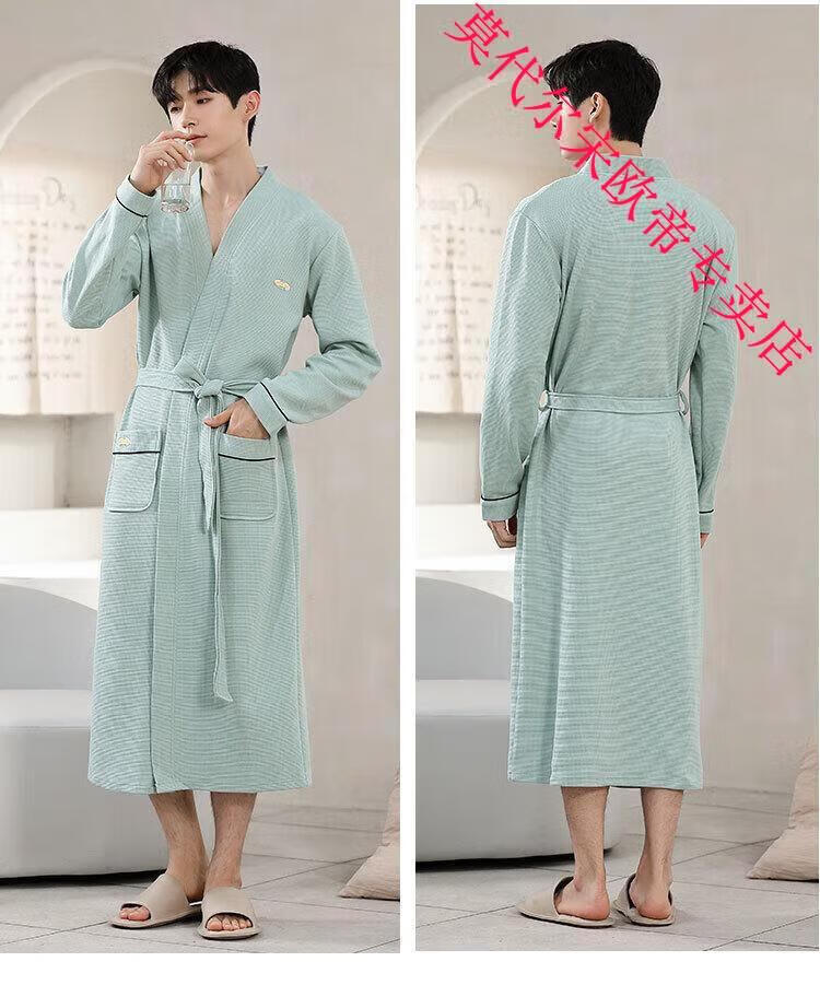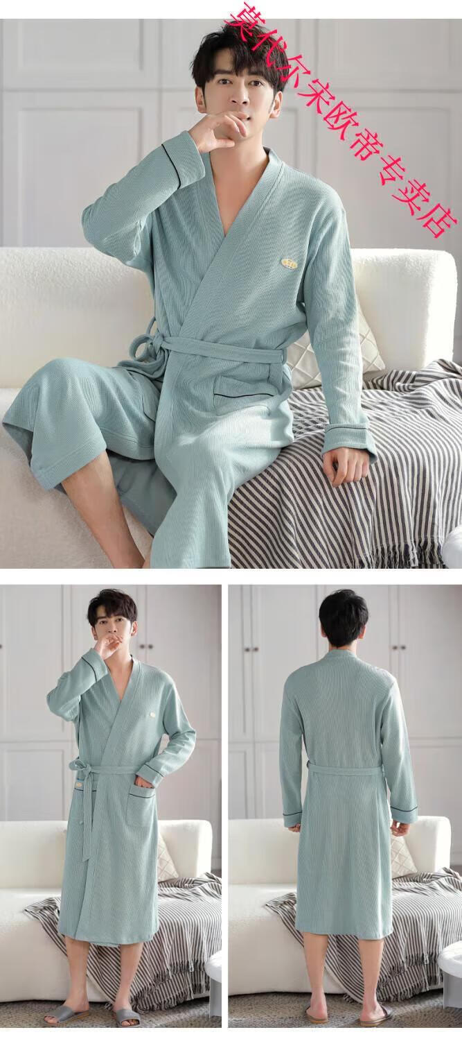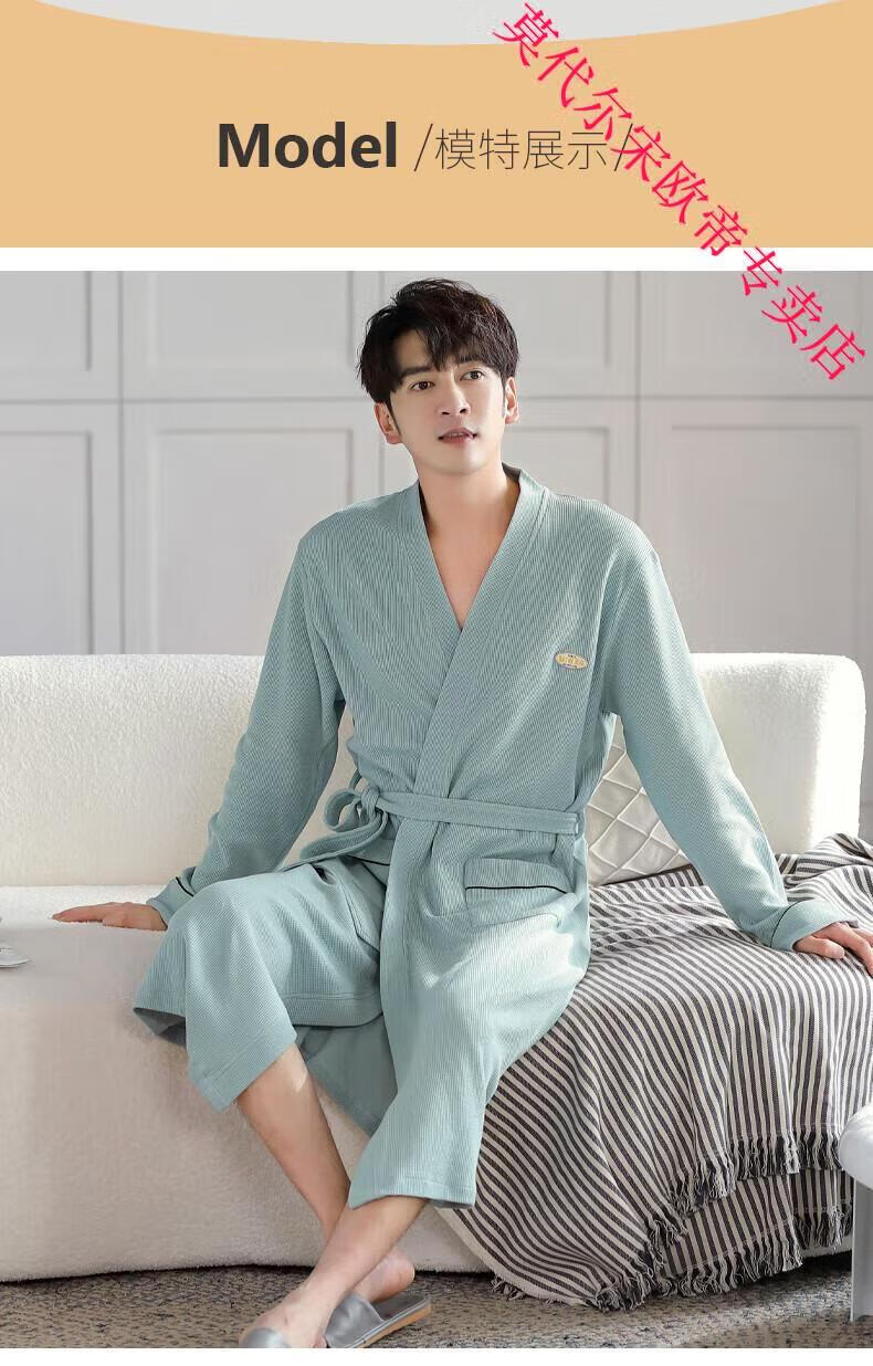 莫代尔2024年新款睡袍男春秋季棉质华夫格长袖浴袍中长款四季通用家居服 AS16822KAW L 男款