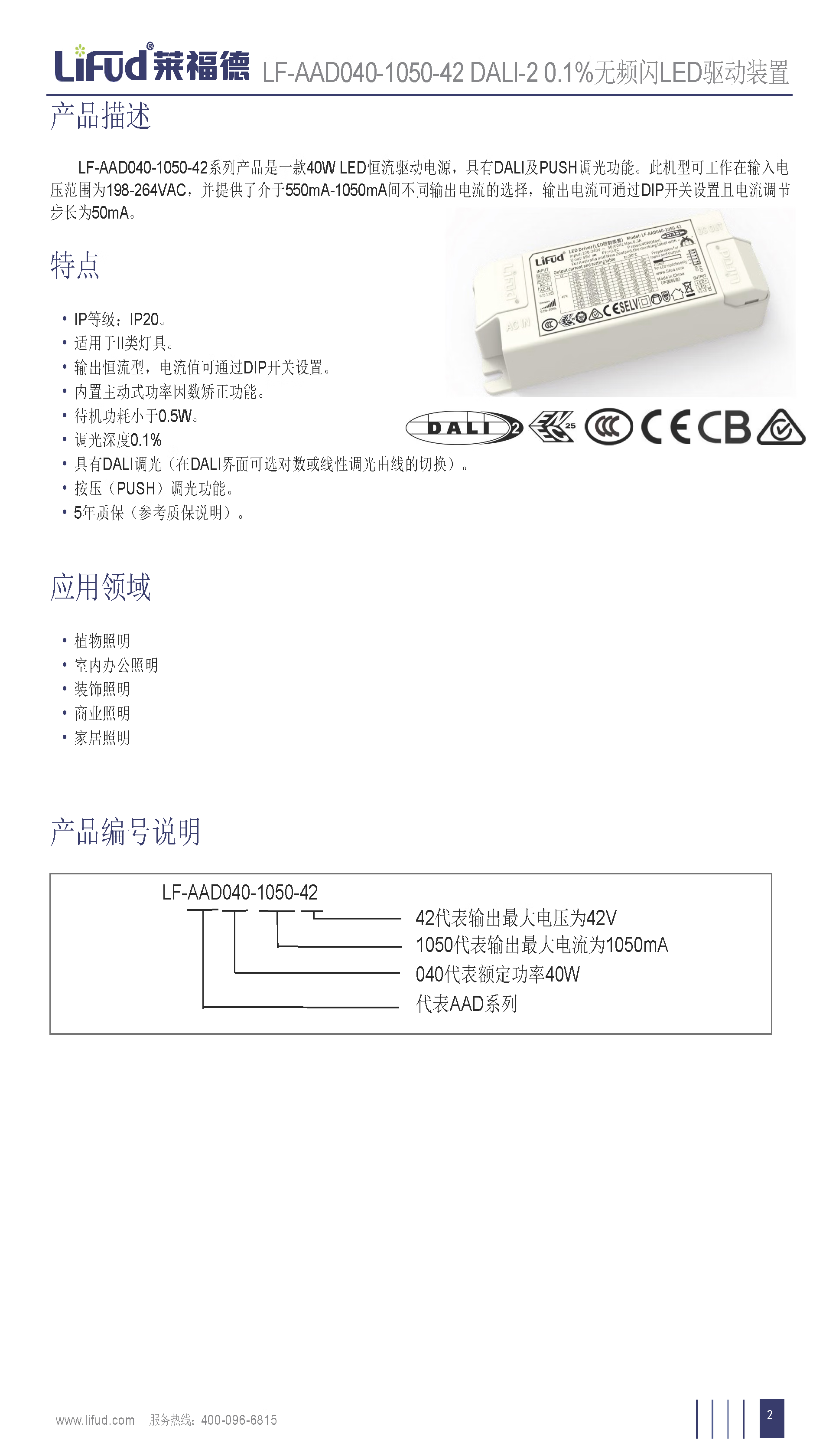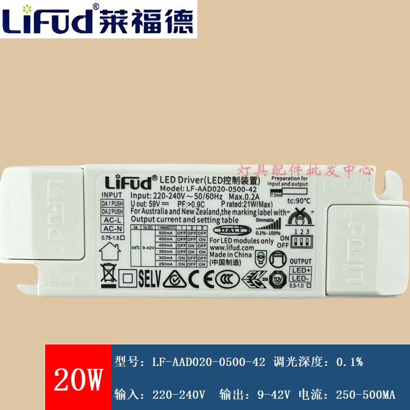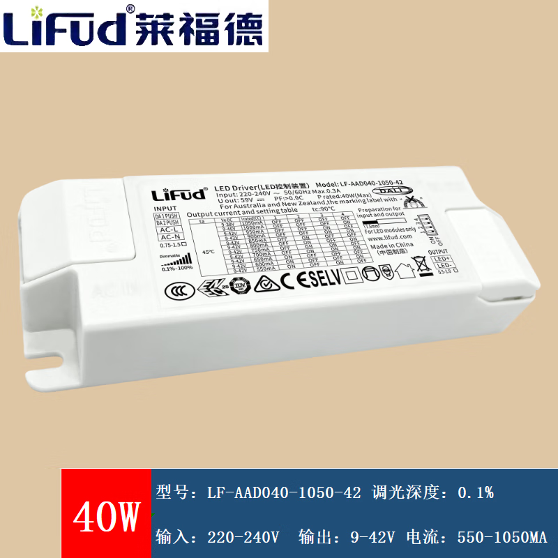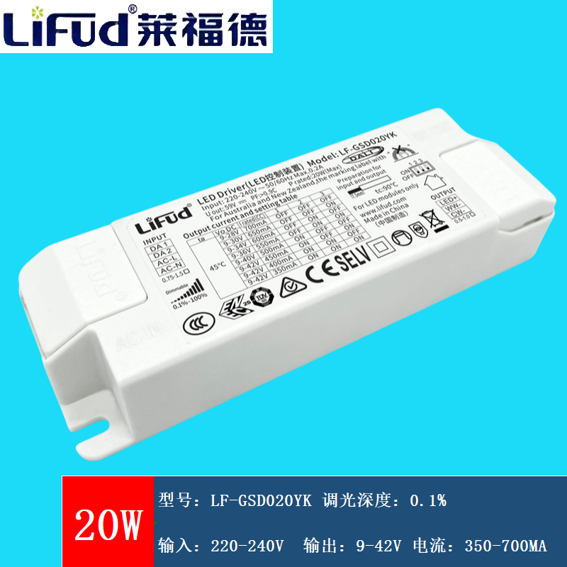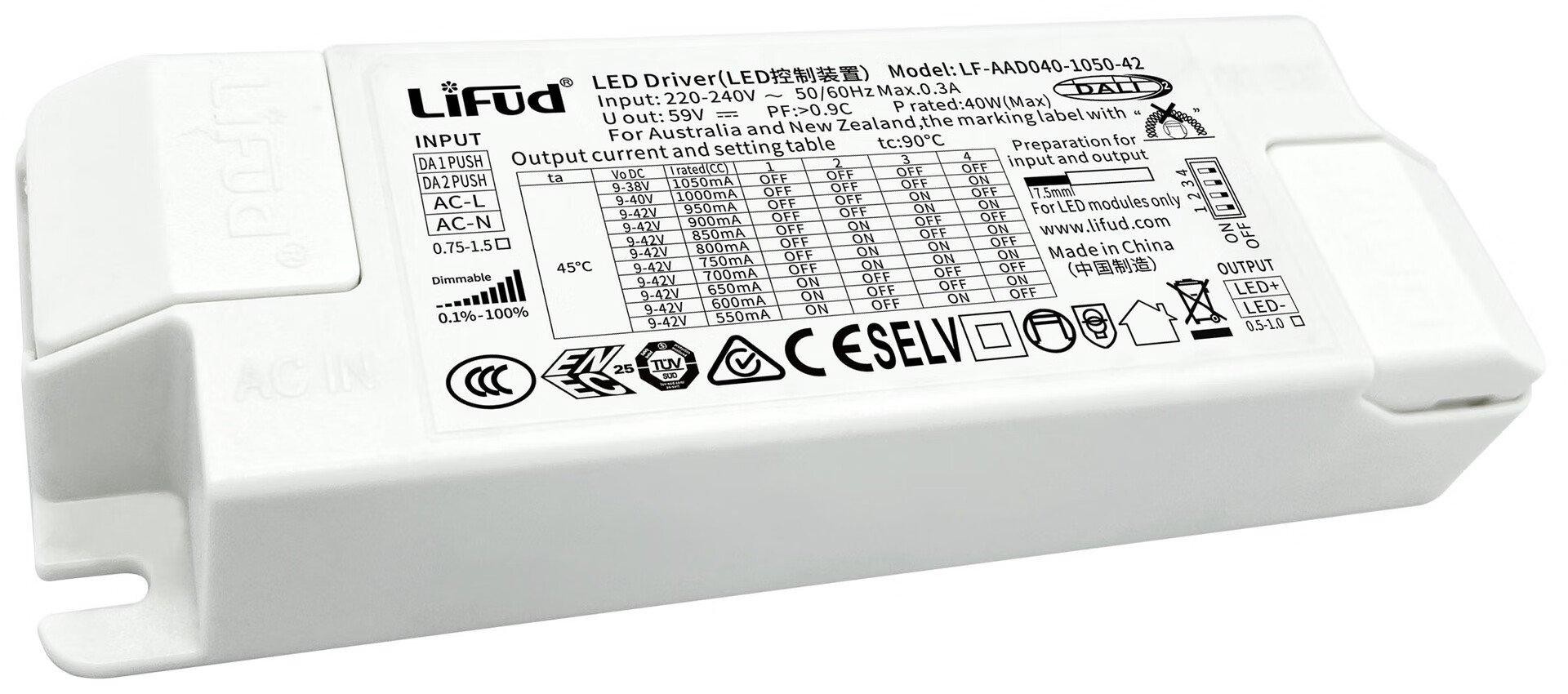 LiFud DALI pilote de gradation LED transformateur de puissance pour downlight avec réglage de la couleur commutable série 20W30W 40W-AAD (550-1050MA)