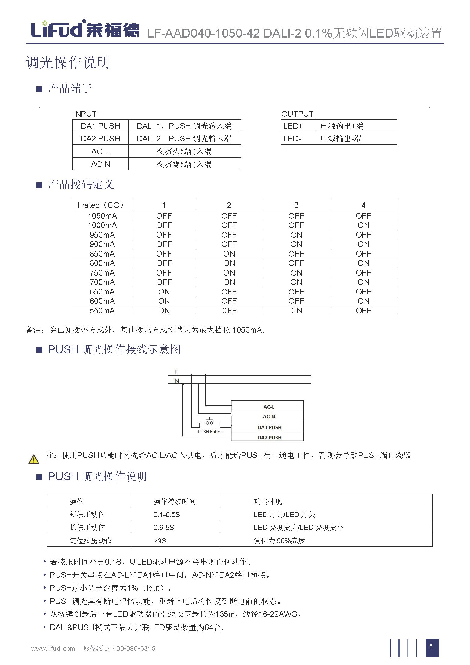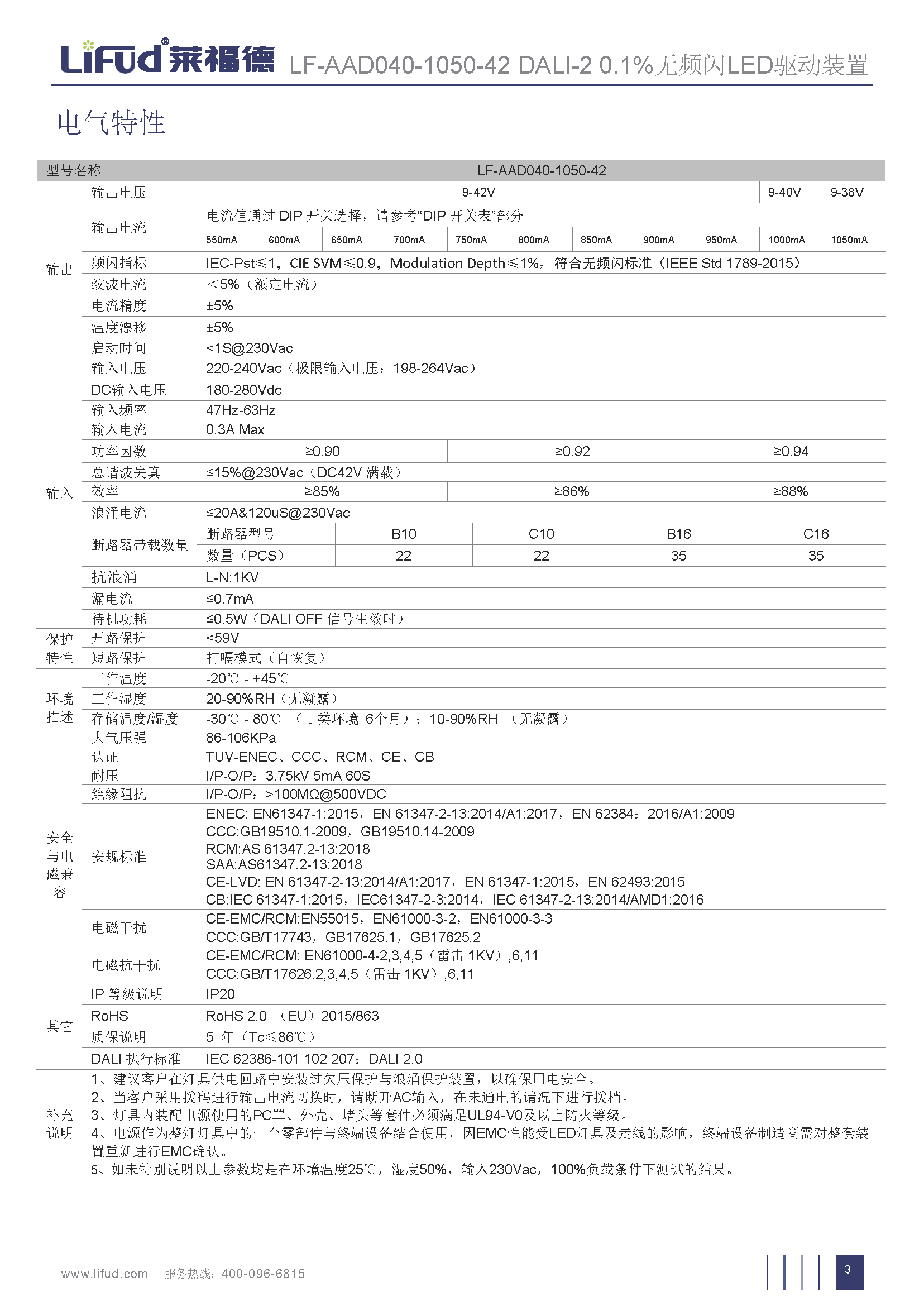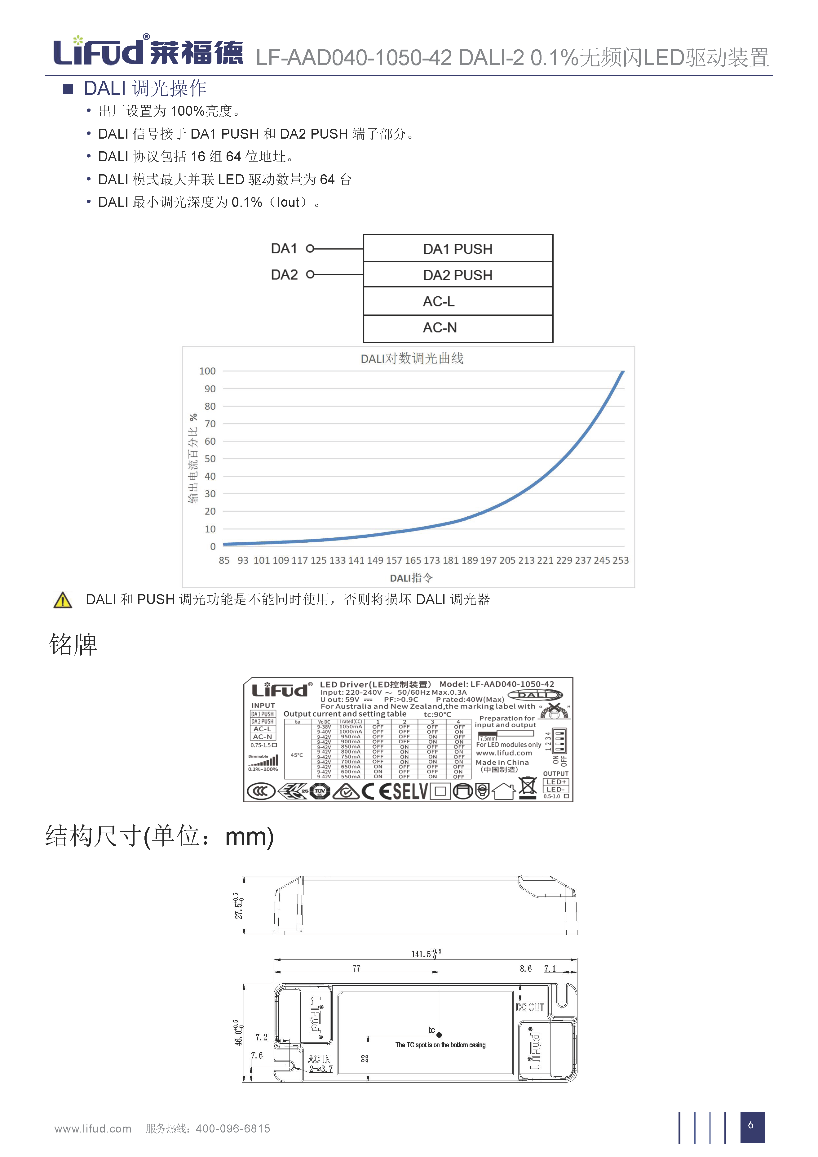 LiFud DALI pilote de gradation LED transformateur de puissance pour downlight avec réglage de la couleur commutable série 20W30W 40W-AAD (550-1050MA)