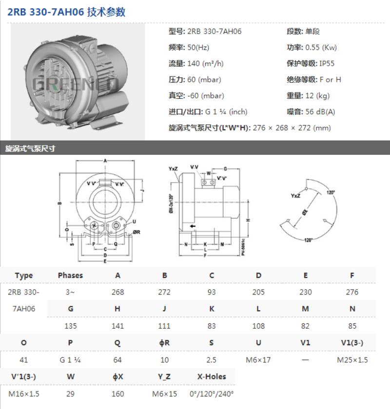 格凌高压风机漩涡式气泵 鱼塘增氧曝气 污水处理工业排风通风 2RB-830-7AH27/7.6KW/380V