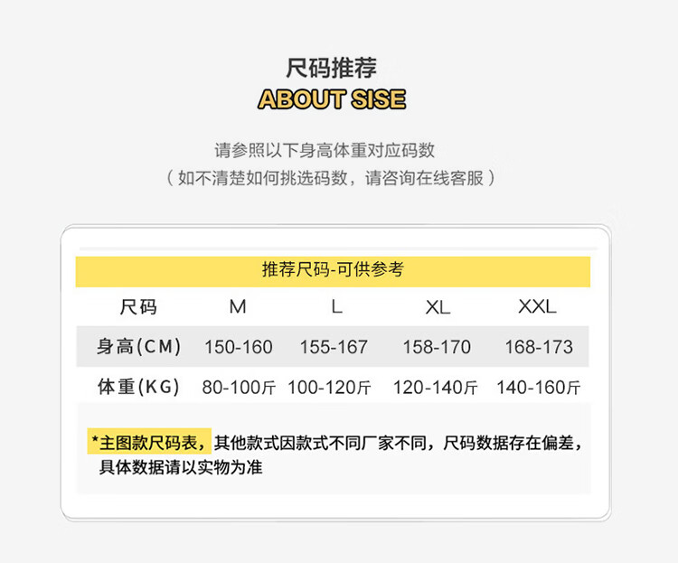 China (cm) 160-165/84-86 165-170 / 88-90 167-172 / 92-96 168-173 / 98-102 170-176 / 106-110