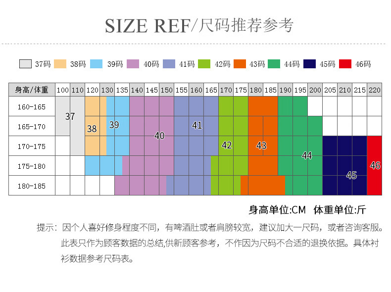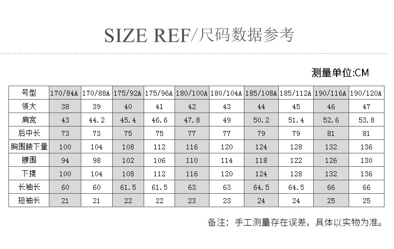 China (cm) 160-165/84-86 165-170 / 88-90 167-172 / 92-96 168-173 / 98-102 170-176 / 106-110
