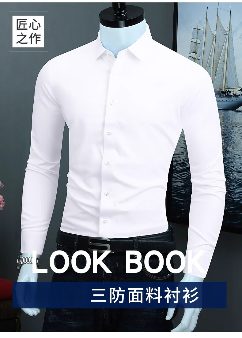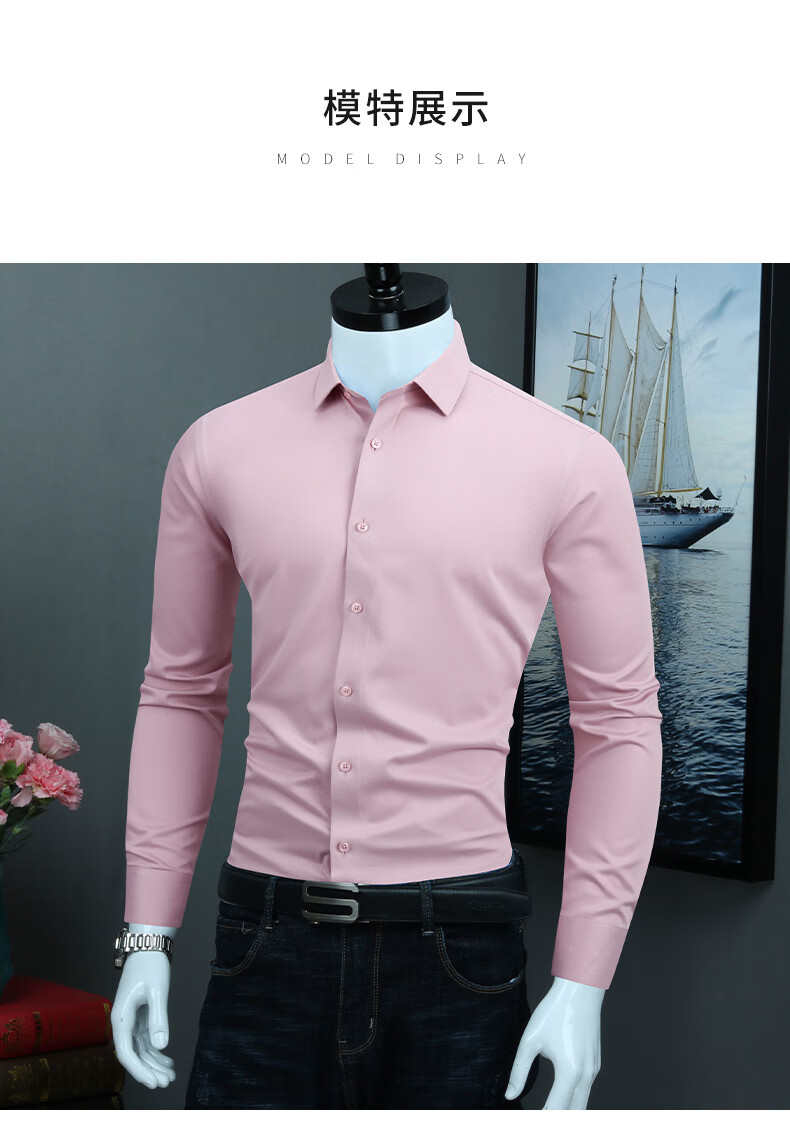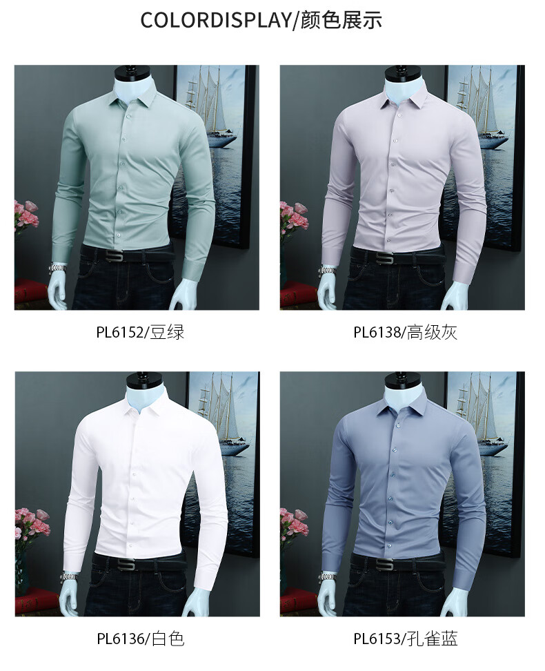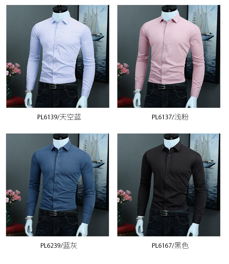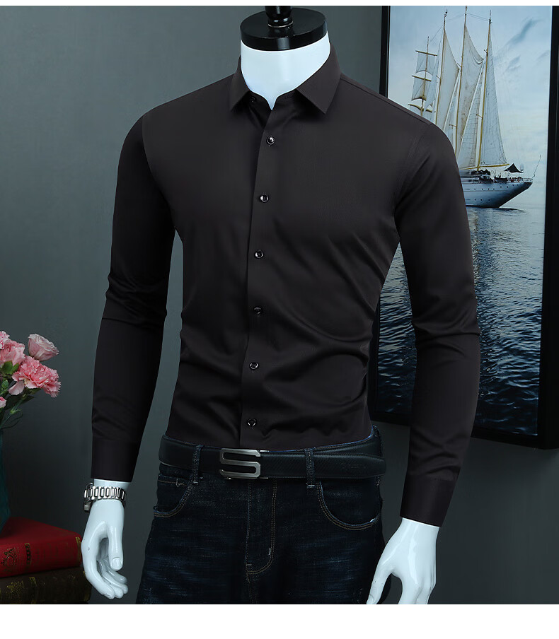 啄木鸟(TUCANO)男士长袖衬衫2025新款秋季纯色感免烫休闲商务正装白衬衣 黑色 PL6167 XL 41
