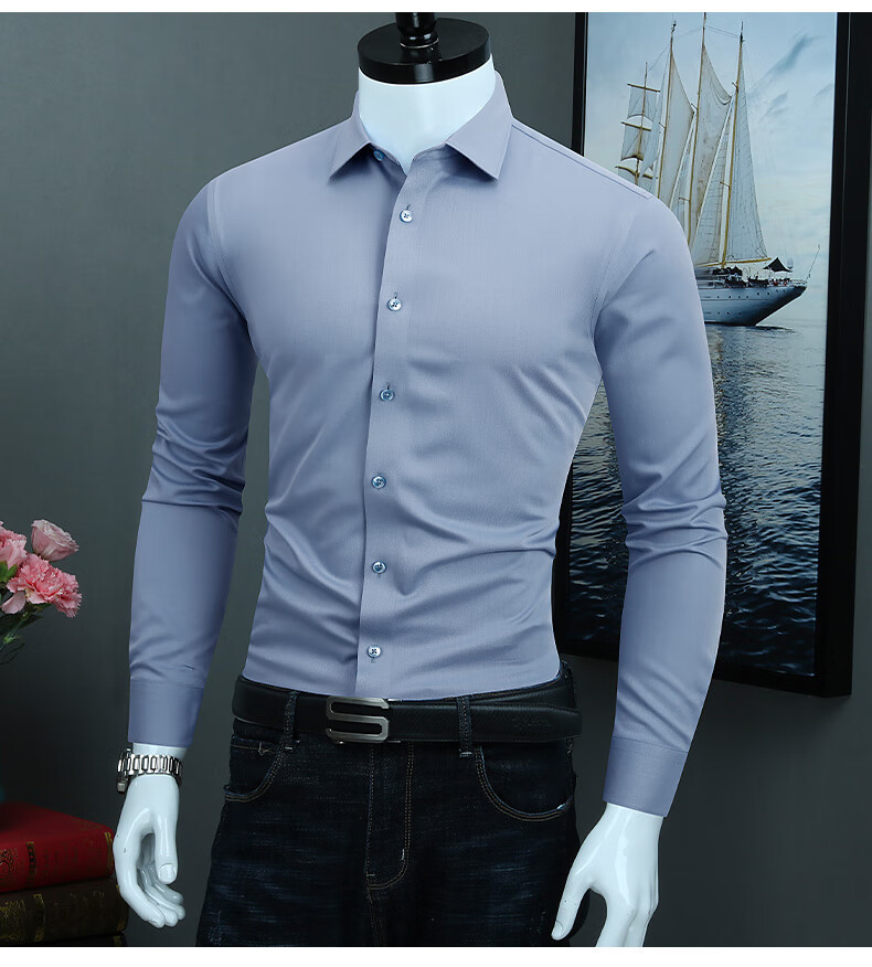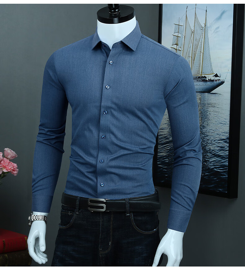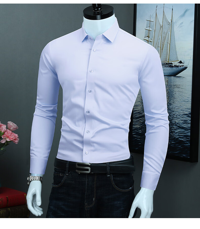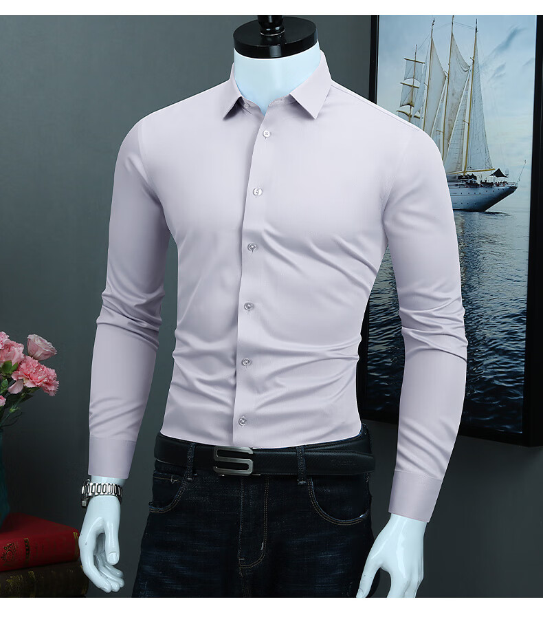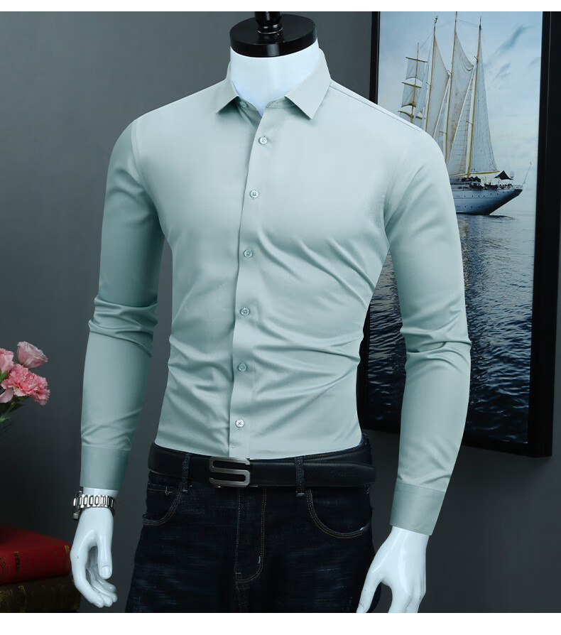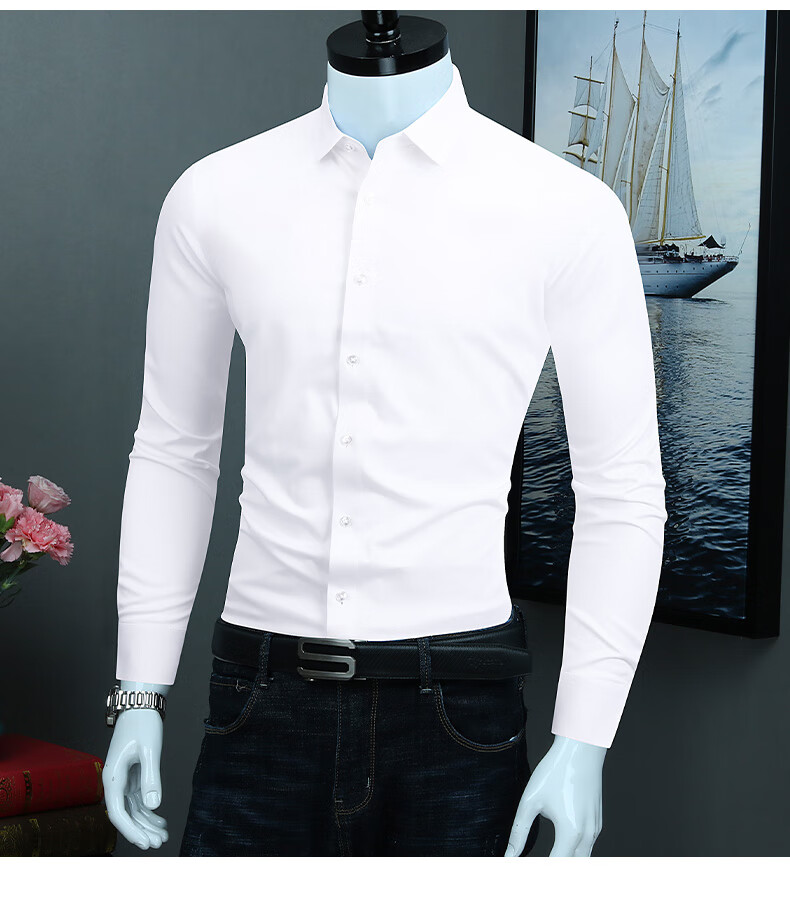 啄木鸟(TUCANO)男士长袖衬衫2025新款秋季纯色感免烫休闲商务正装白衬衣 黑色 PL6167 XL 41