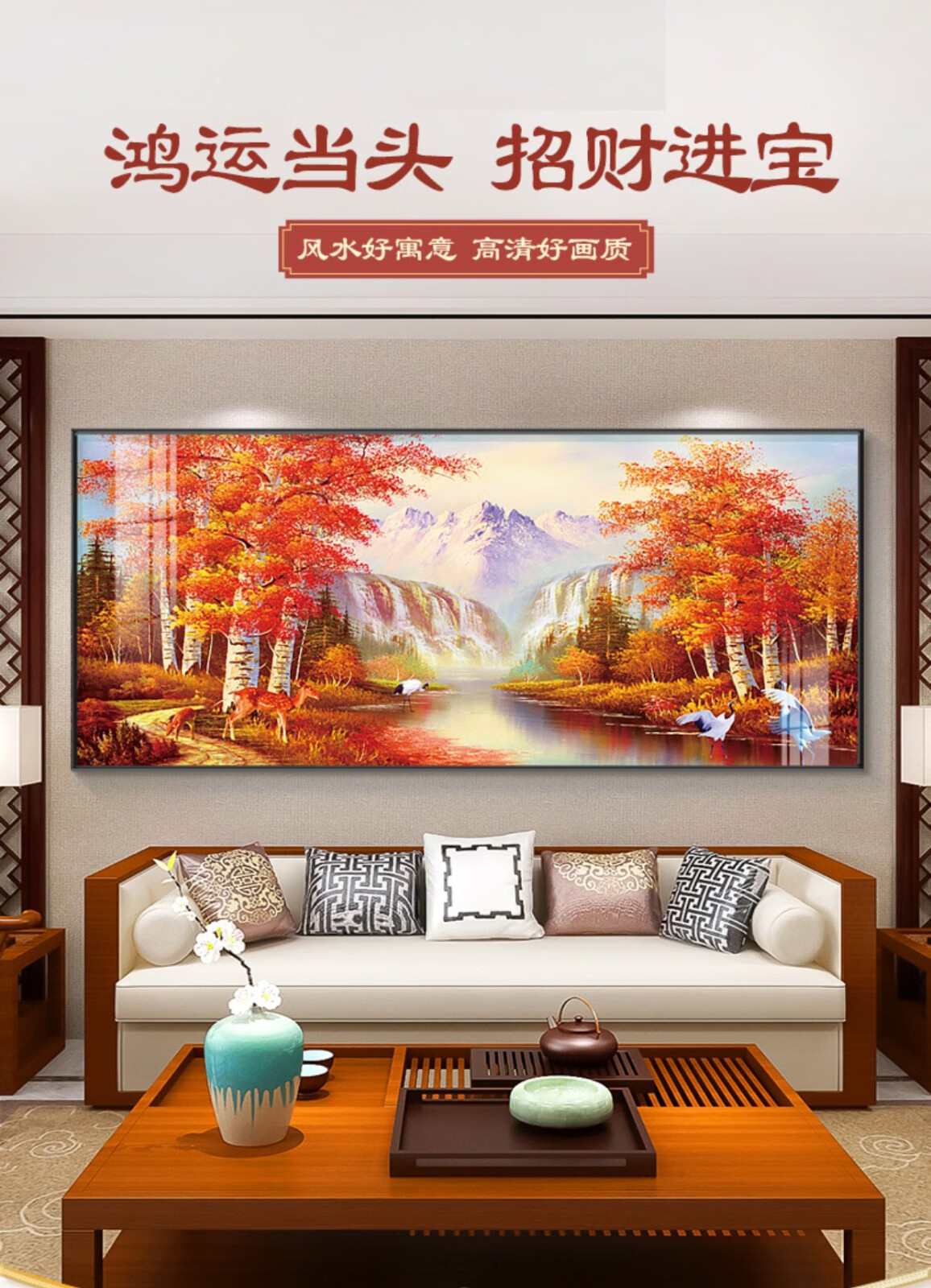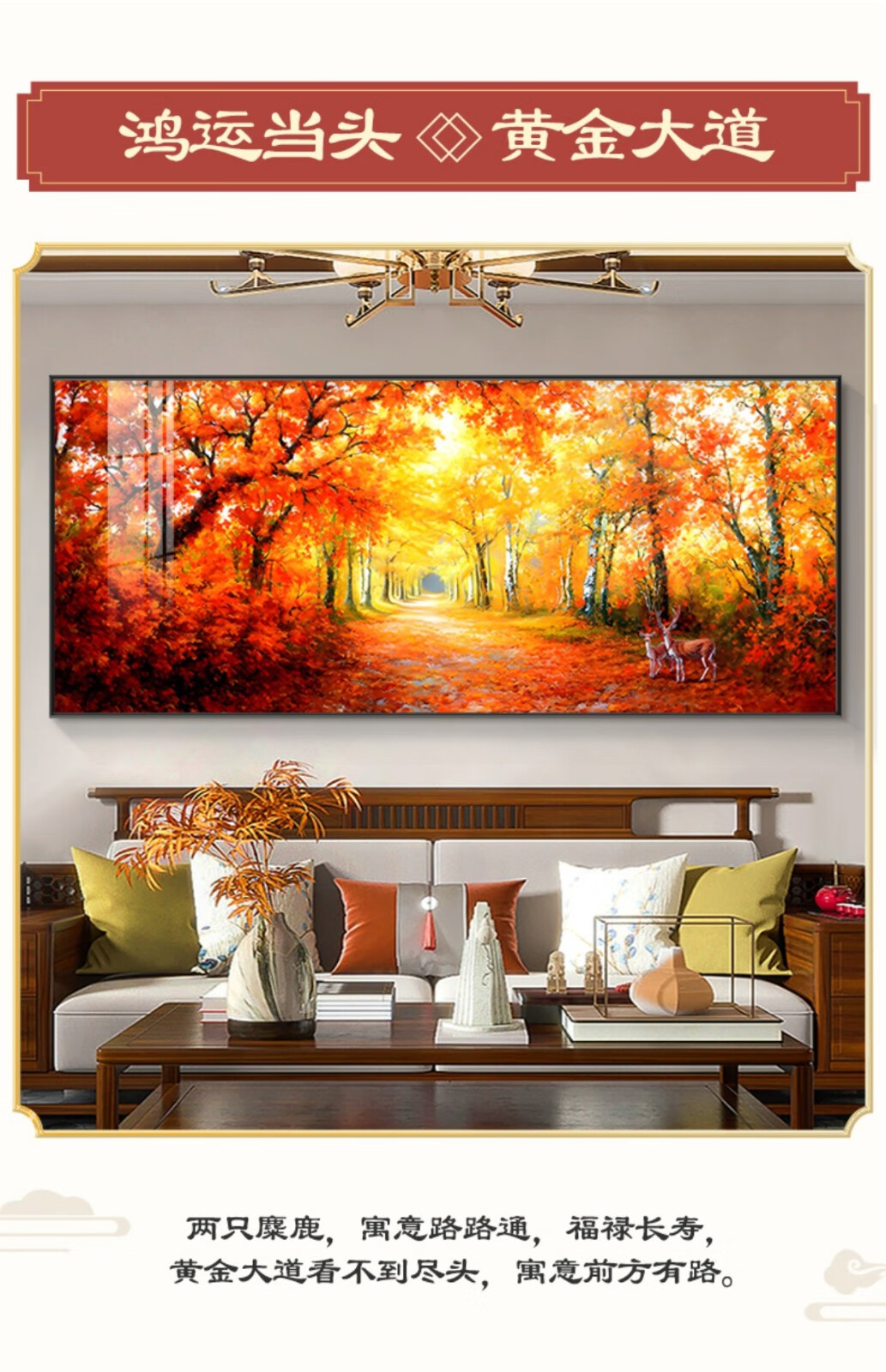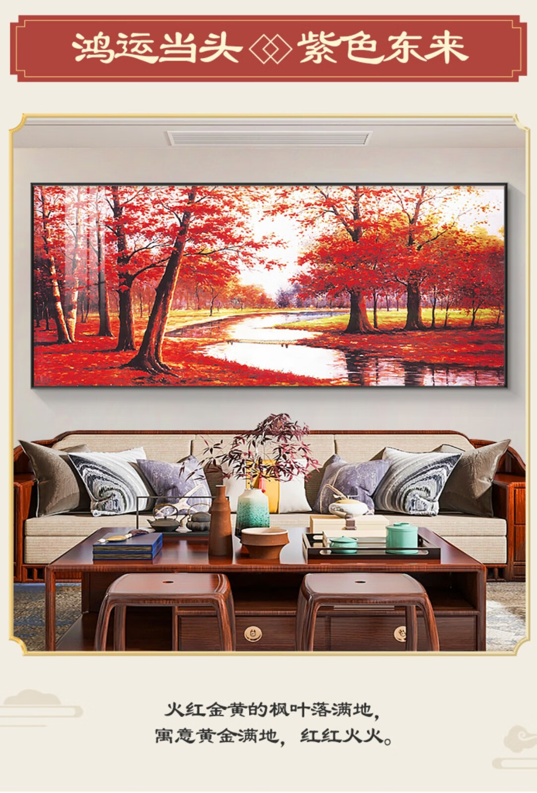 Картинка в картинке Деревья удачи Декоративная живопись Гостиная Диван Фон Восточная настенная картина Кленовый лист Золотой проспект Природный пейзаж Картина Удачи - Цзыци Донлай L3294 80*40 см золотая рамка подходит для ресторанов