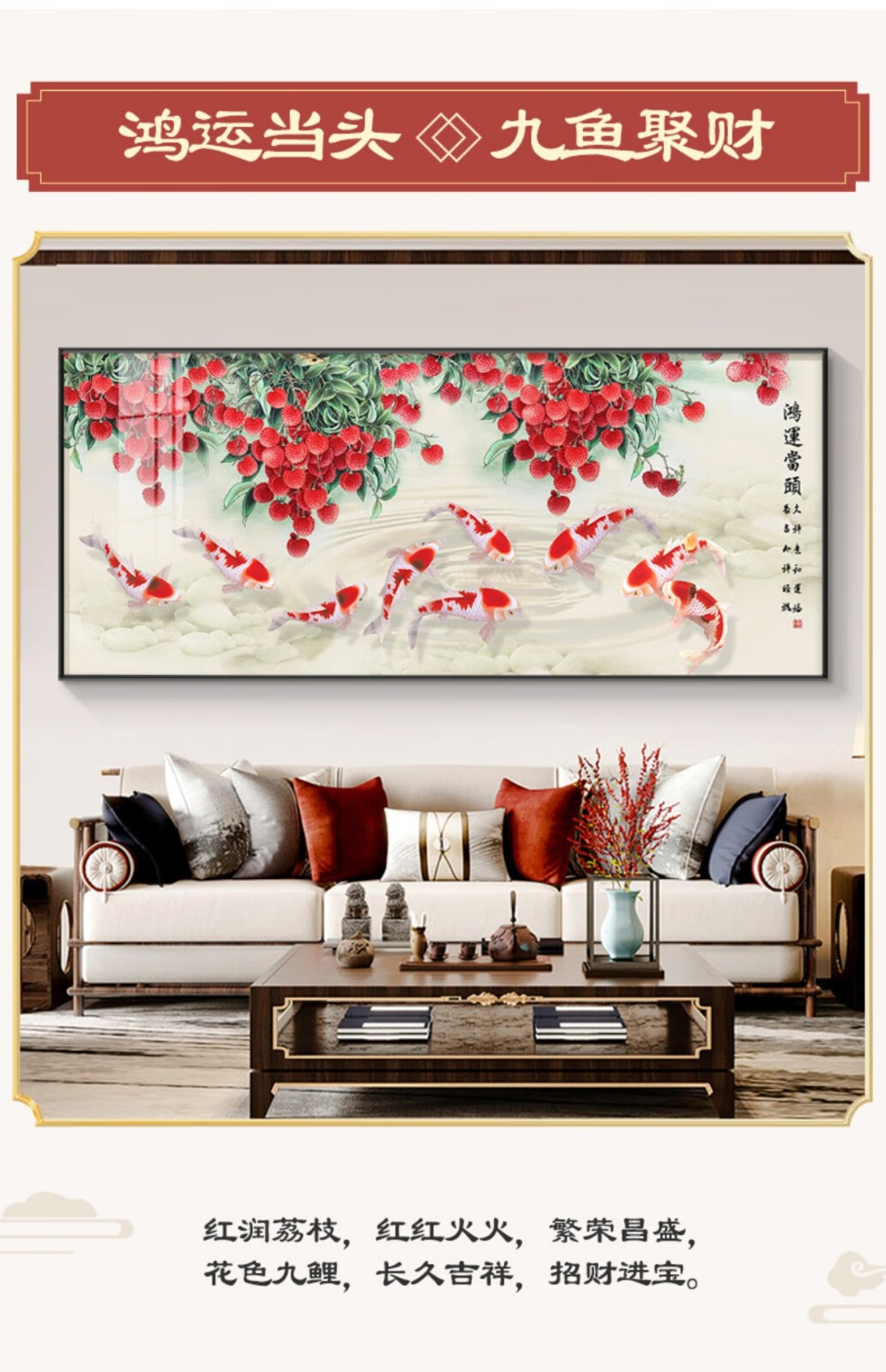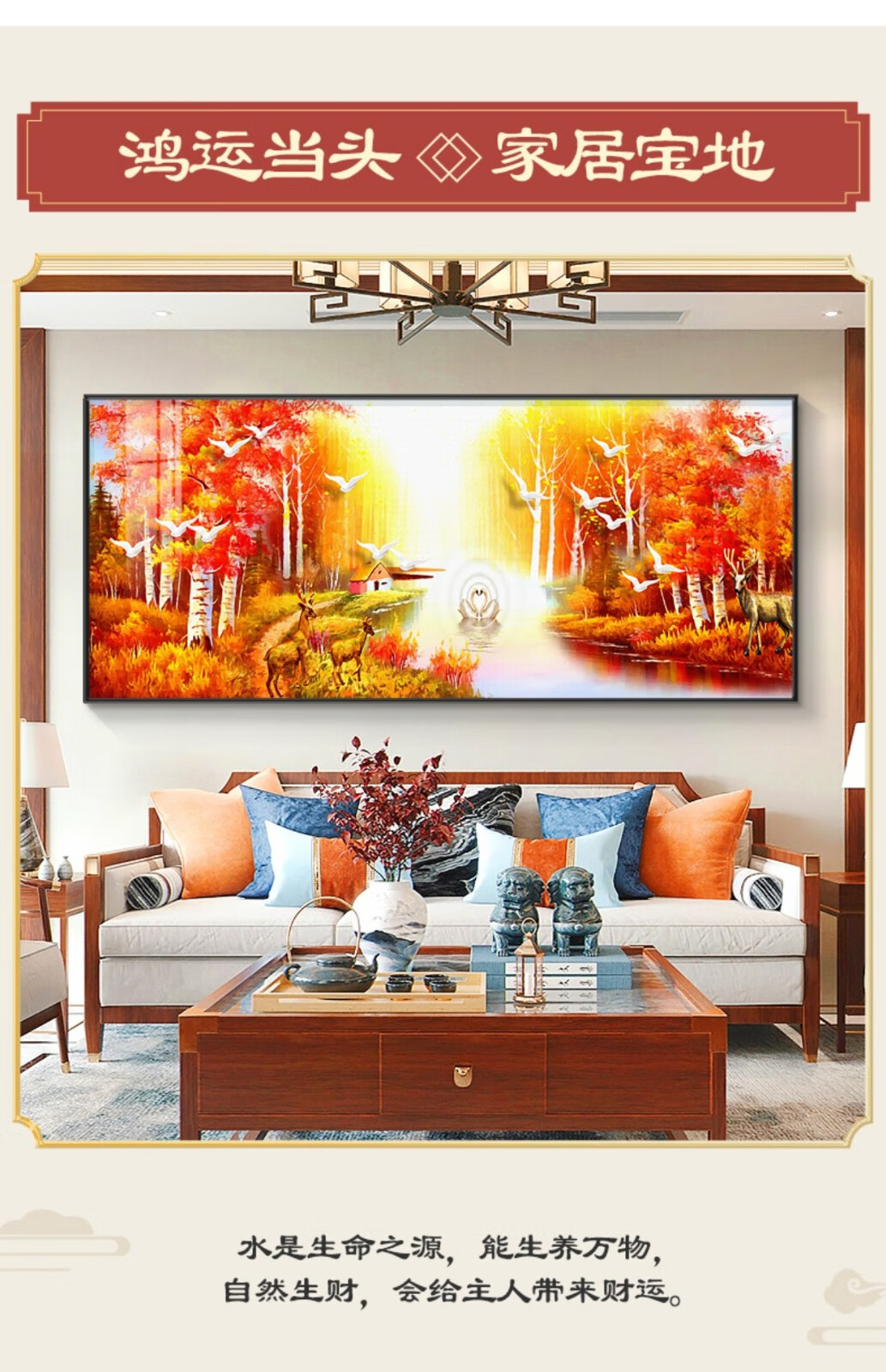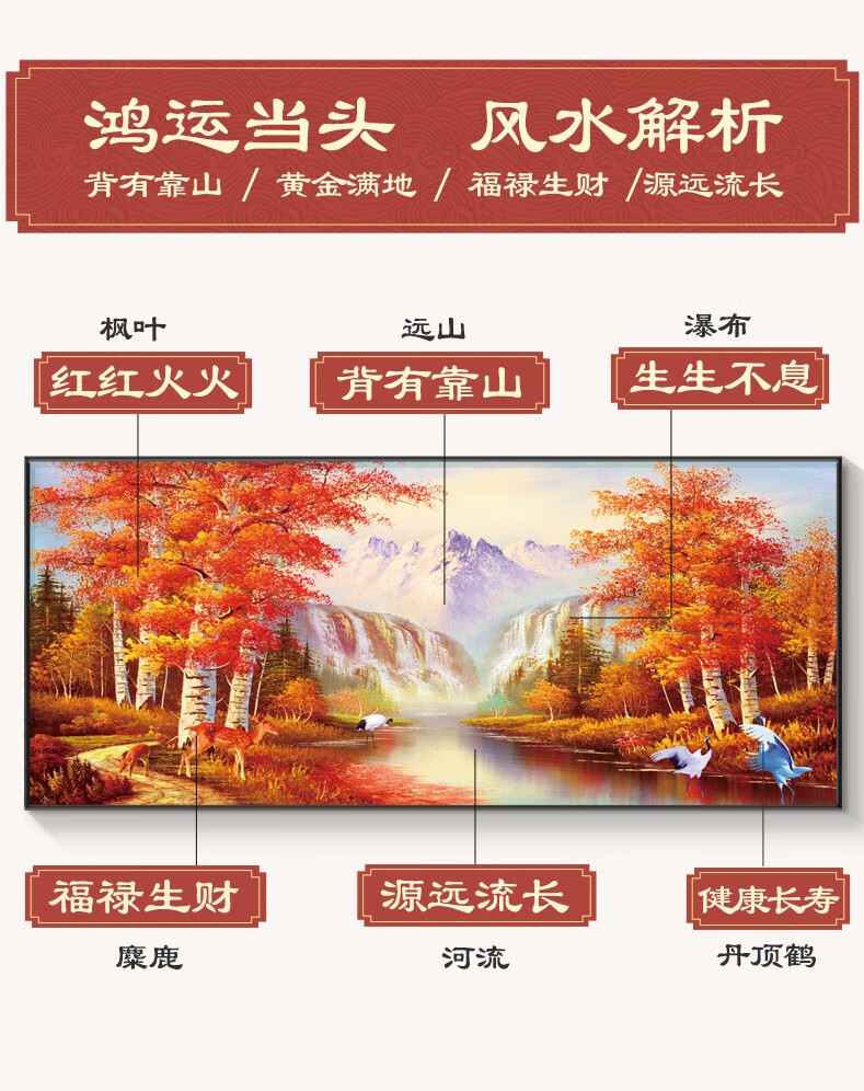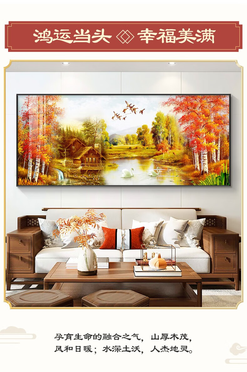 Картинка в картинке Деревья удачи Декоративная живопись Гостиная Диван Фон Восточная настенная картина Кленовый лист Золотой проспект Природный пейзаж Картина Удачи - Цзыци Донлай L3294 80*40 см золотая рамка подходит для ресторанов