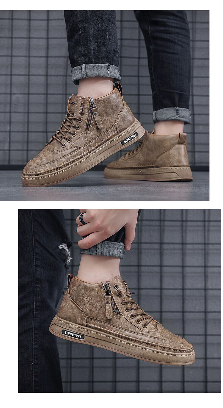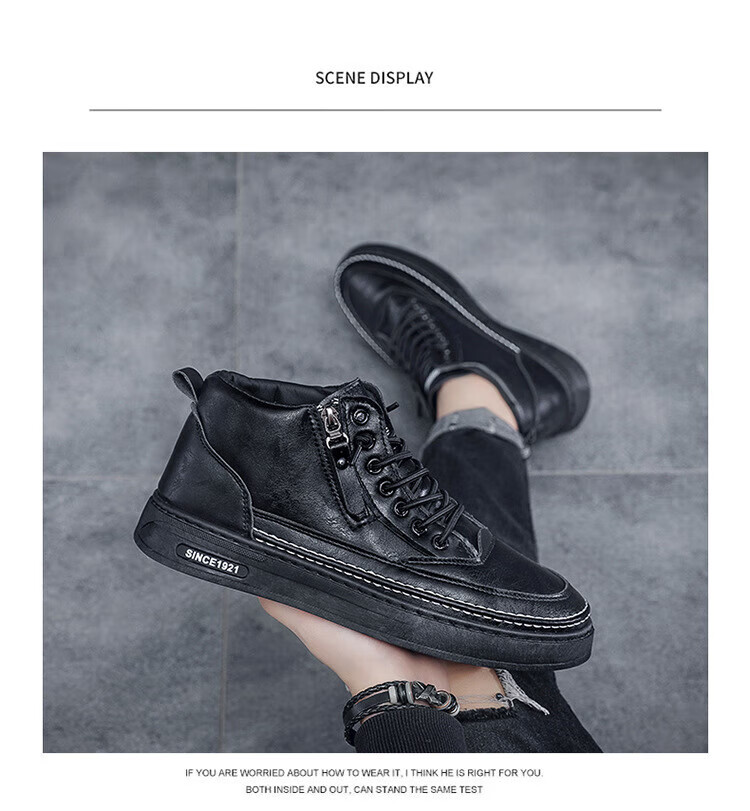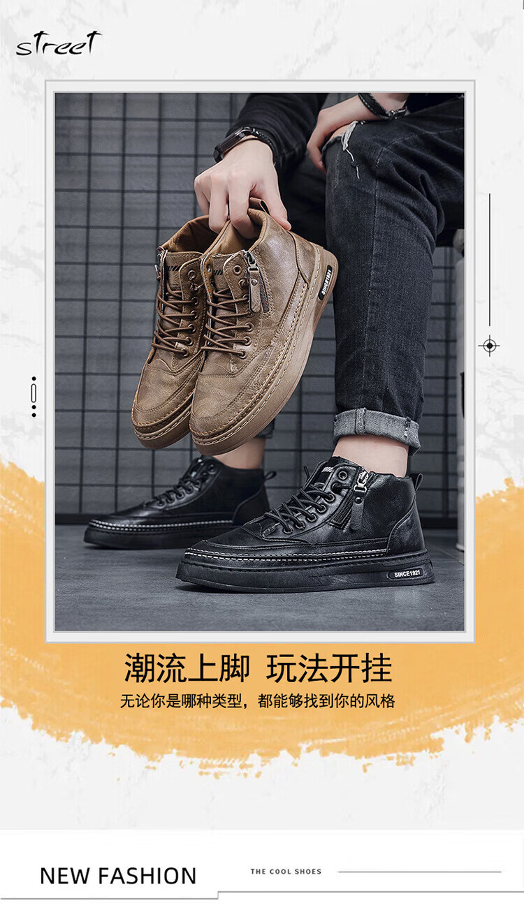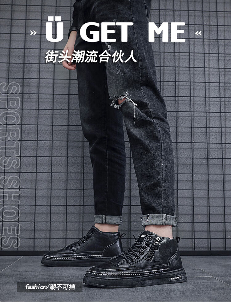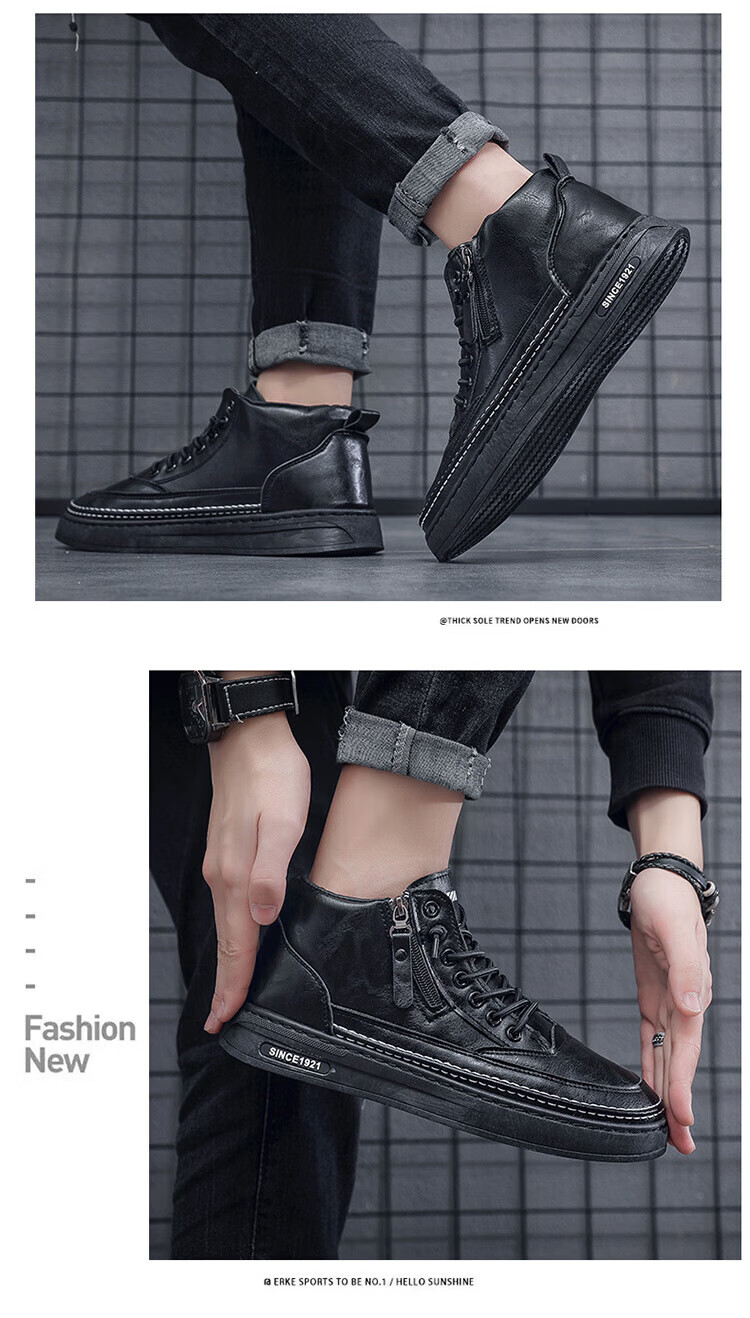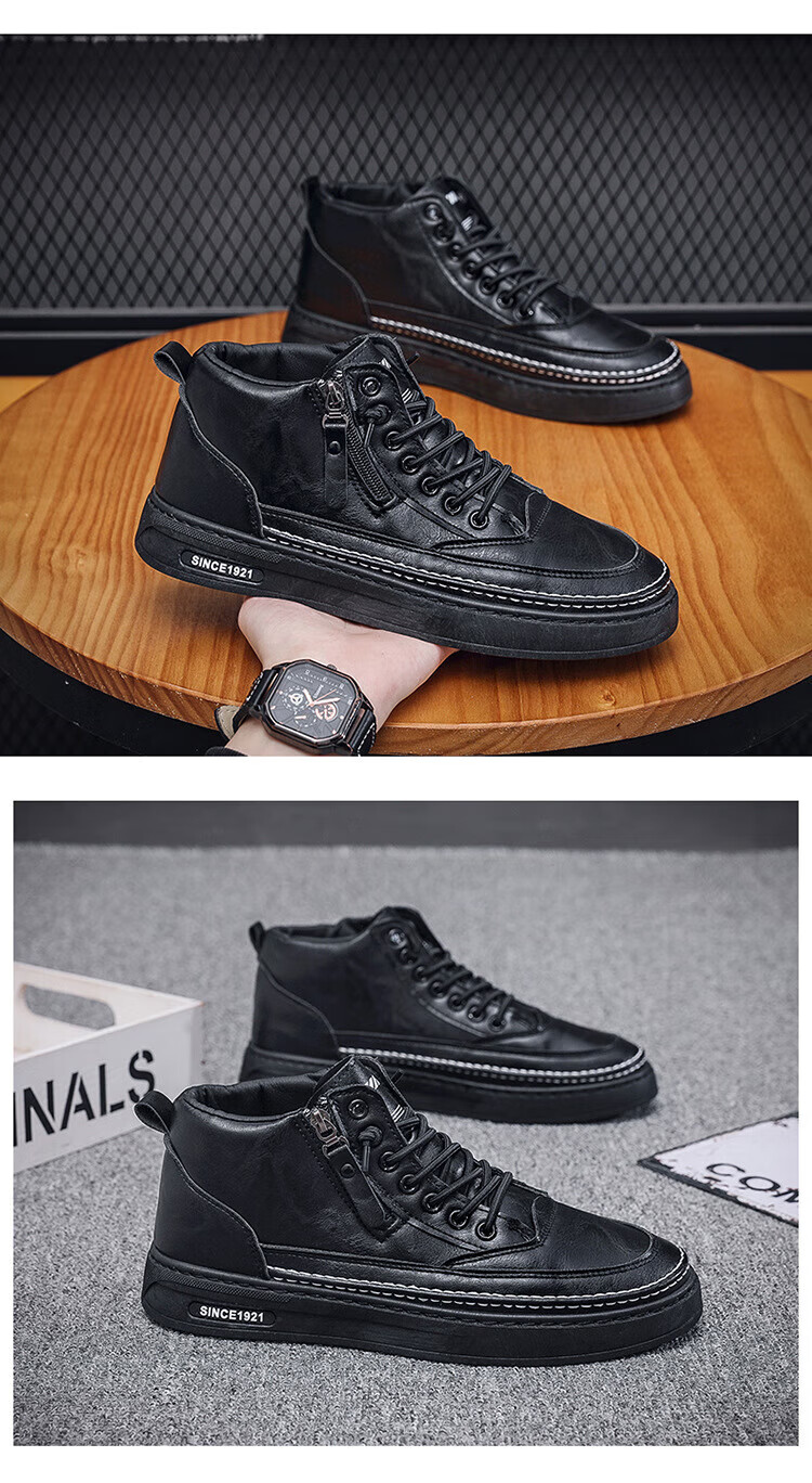 Frühling und Herbst atmungsaktive Schuhe Herrenschuhe lässige Lederschuhe rutschfeste Kochschuhe Herren vielseitige Martin-Stiefel Arbeitsschuhe Sneakers 2703 Schwarz 44