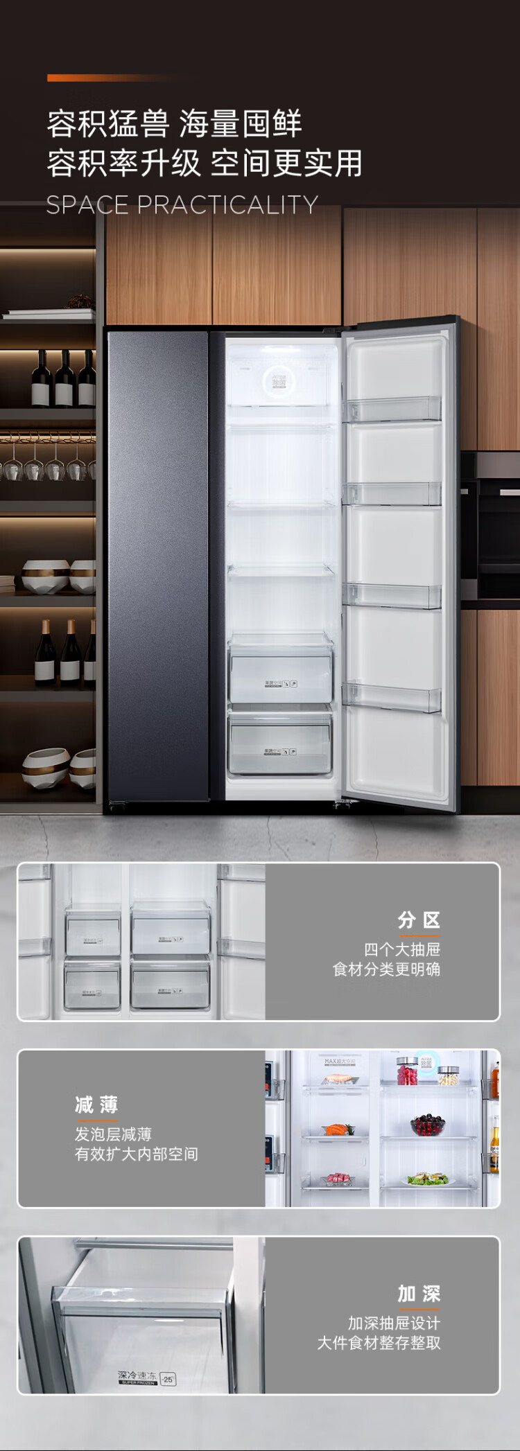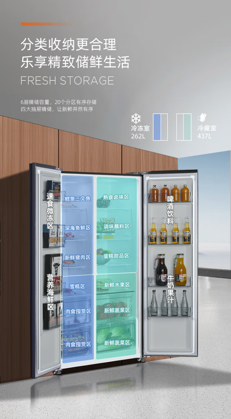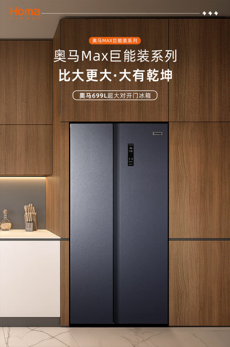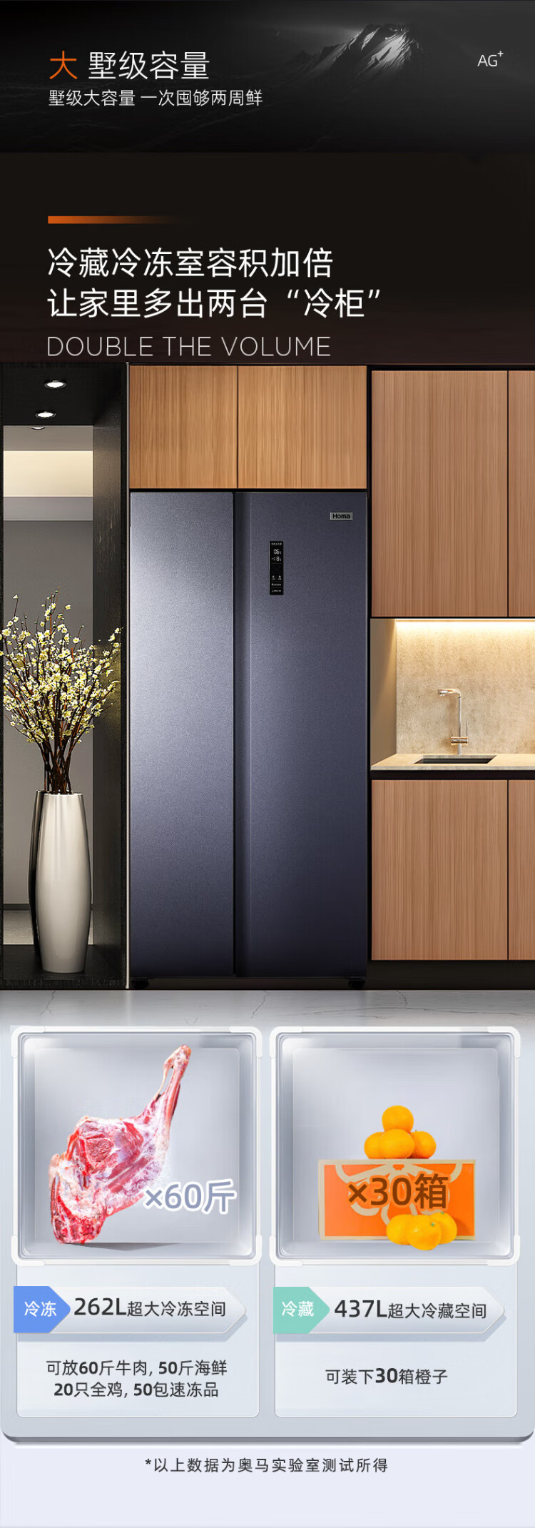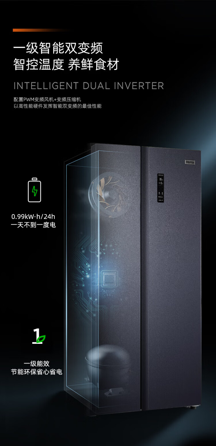 Homa 699 liter ultra-large capacity household refrigerator double-door double-door two-door first-class intelligent dual-frequency energy-saving energy-saving air-cooled frost-free AG+ blue crystal sterilization