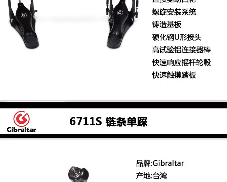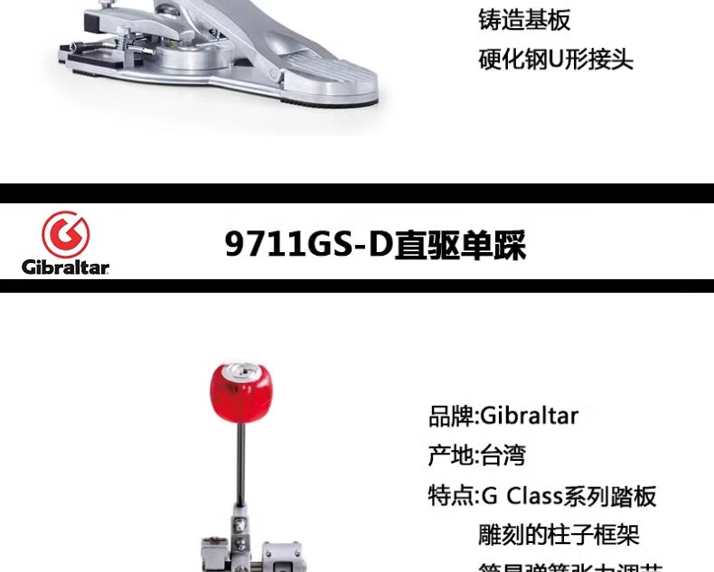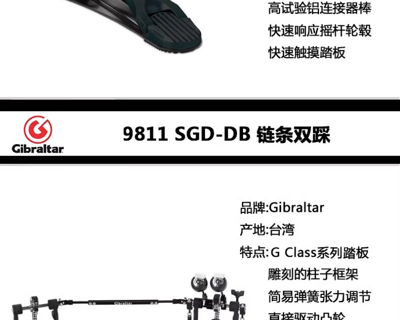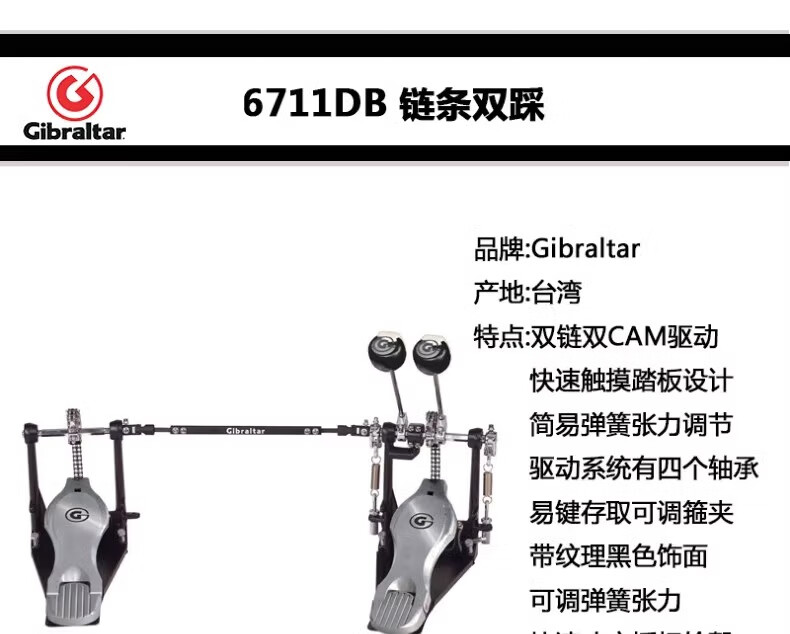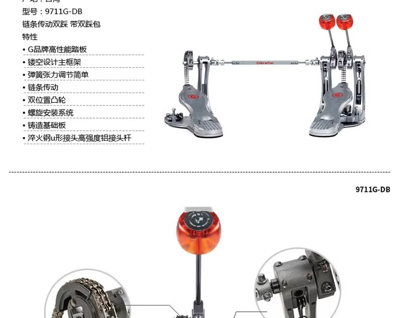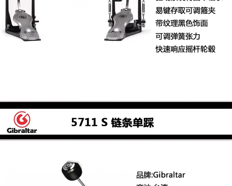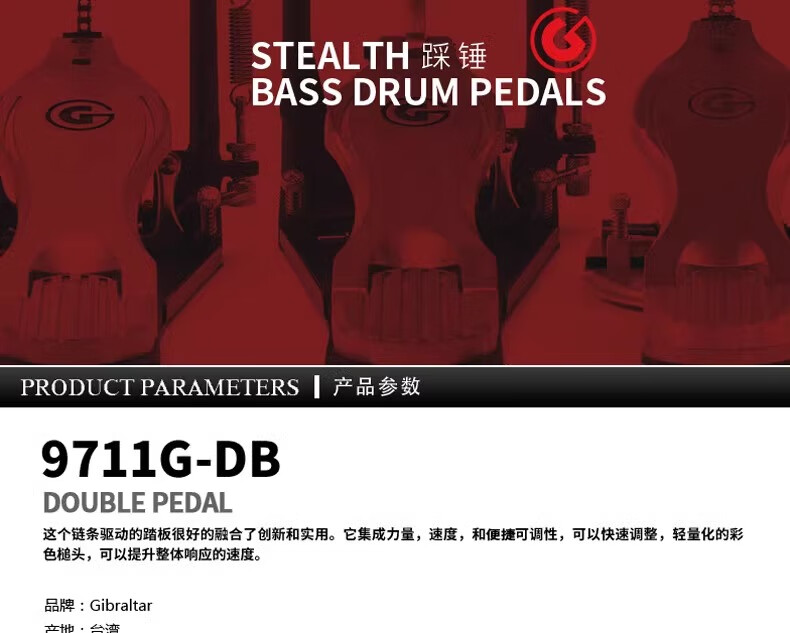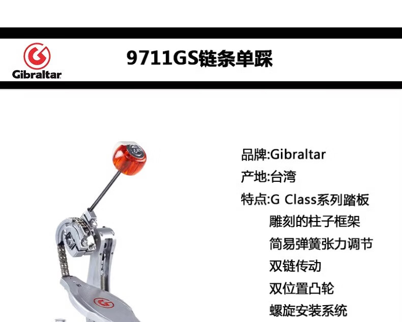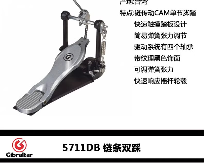 Gibraltar Gibraltar hammer drum pedal double pedal single pedal 9711/9811 chain direct drive bass drum pedal 5711DB (5700 series single chain double pedal)