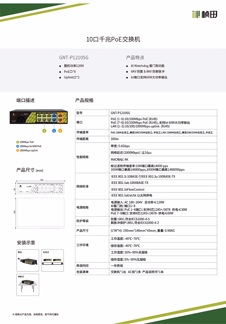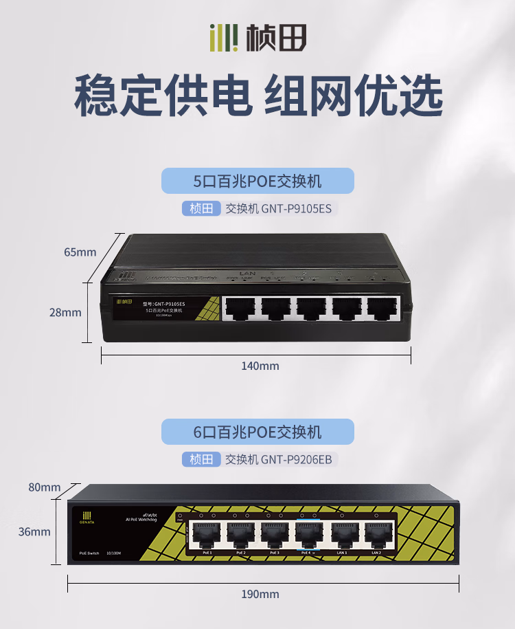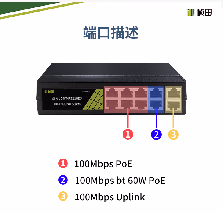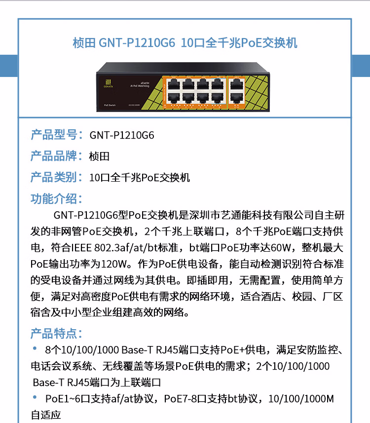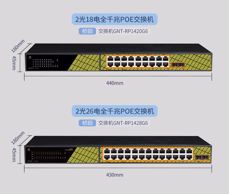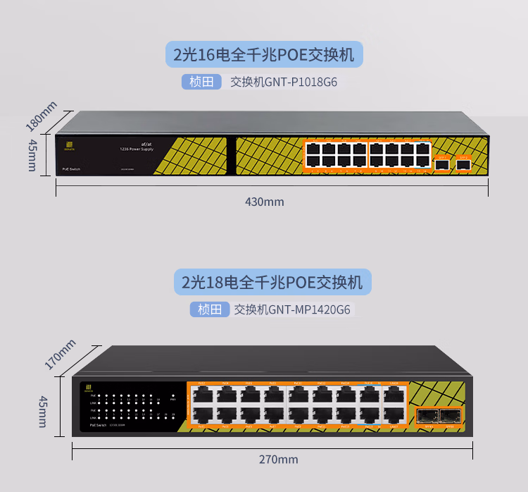 桢田poe交换机48V国标10口百兆千兆16口监控AP供电交换机 桢田GNT-RP1428G6 国标24+2+2全