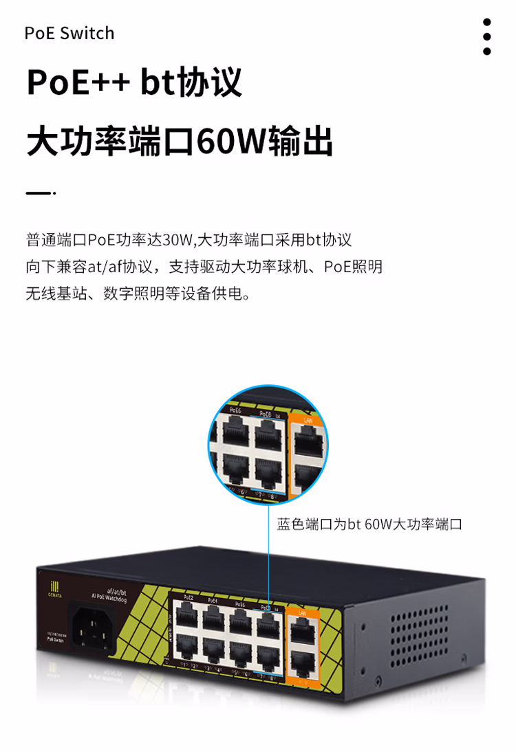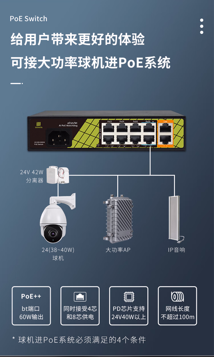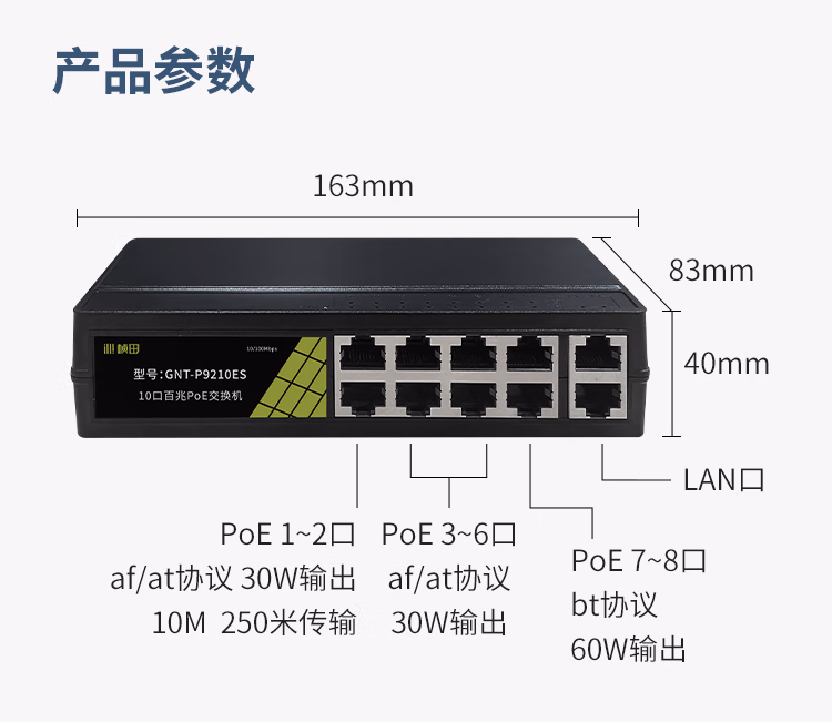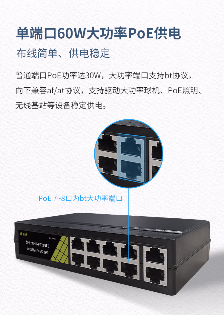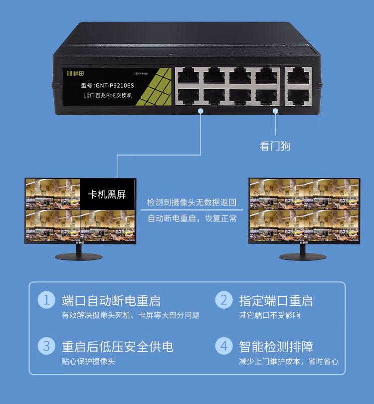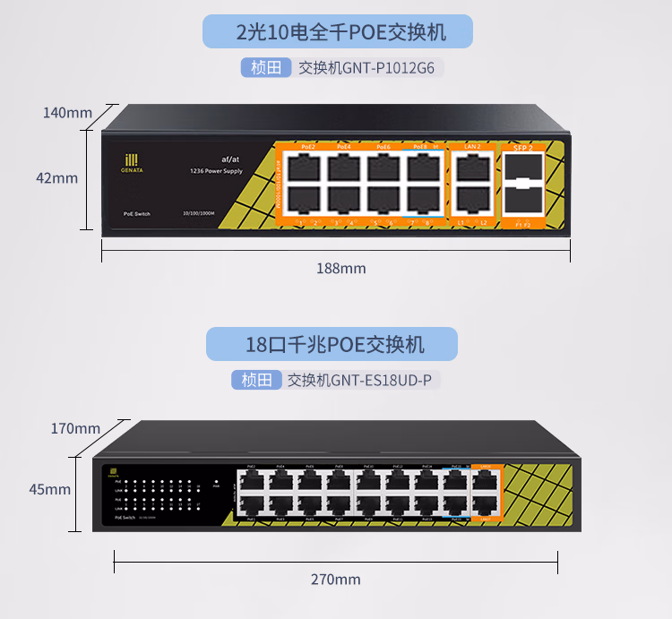 桢田poe交换机48V国标10口百兆千兆16口监控AP供电交换机 桢田GNT-RP1428G6 国标24+2+2全