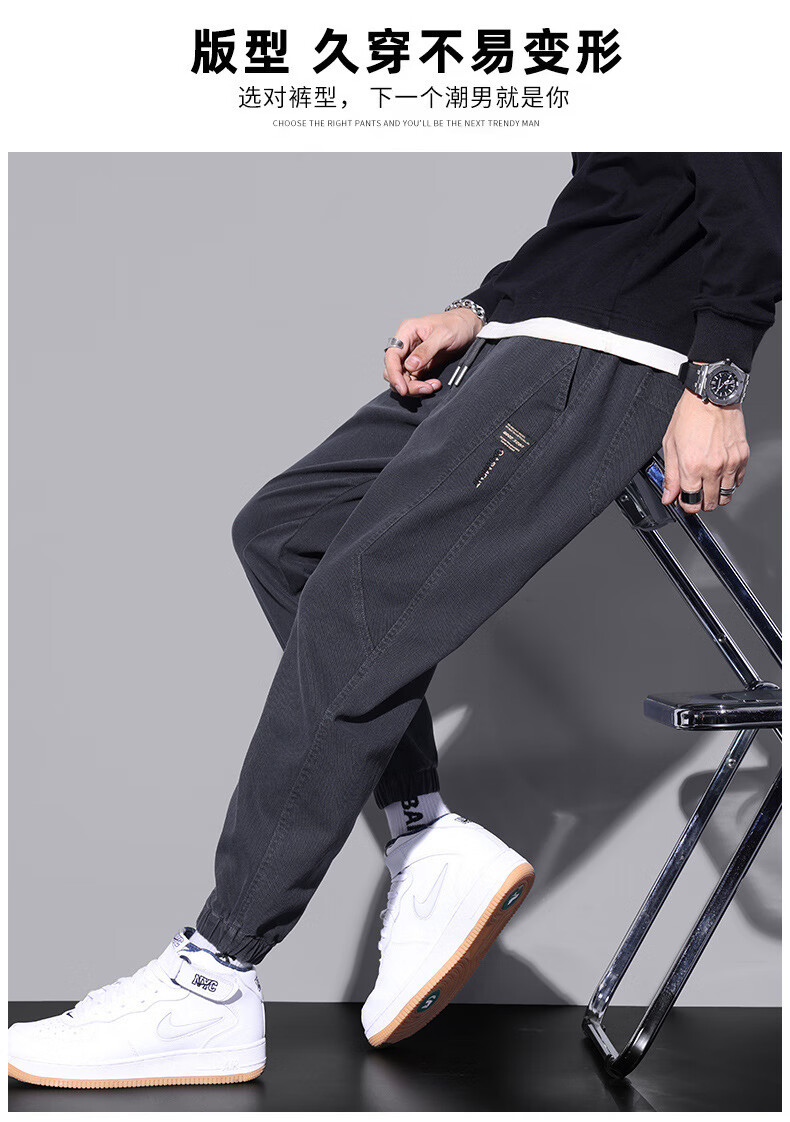 花花公子(PLAYBOY)2025春秋新款男士束脚休闲裤青少年百搭休闲裤潮流日常学生休闲裤 军绿色9859 M