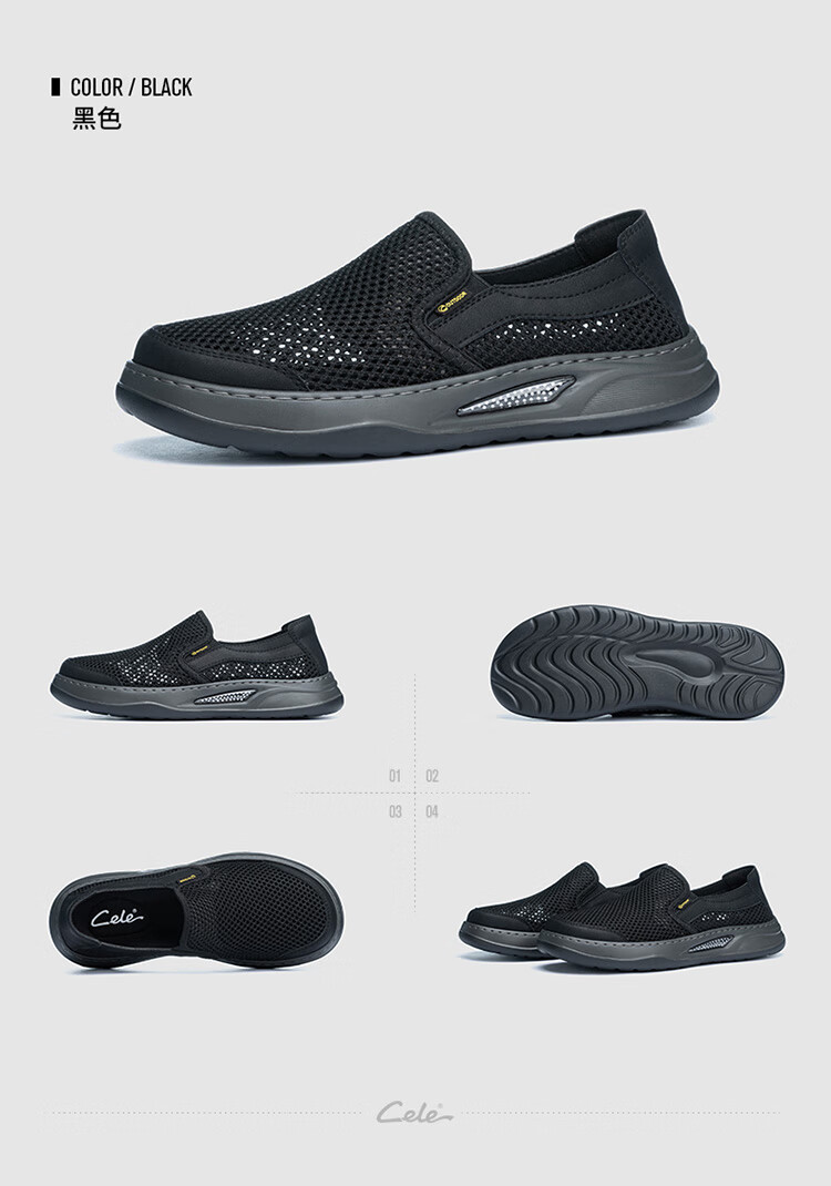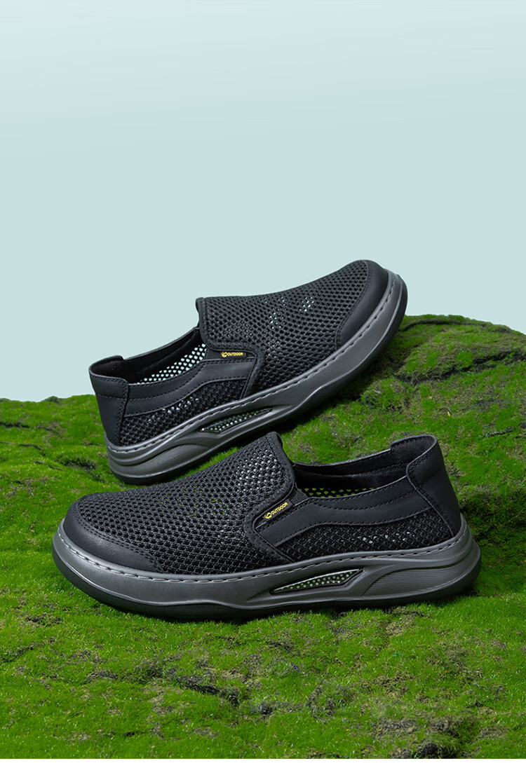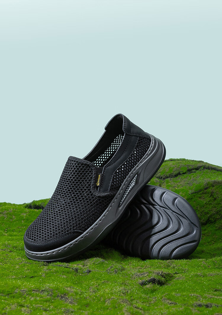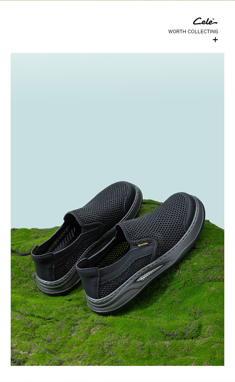 策乐网面鞋男2025夏季新款大网眼透气男士轻便套脚鞋子舒适宽头男鞋 黑色 42