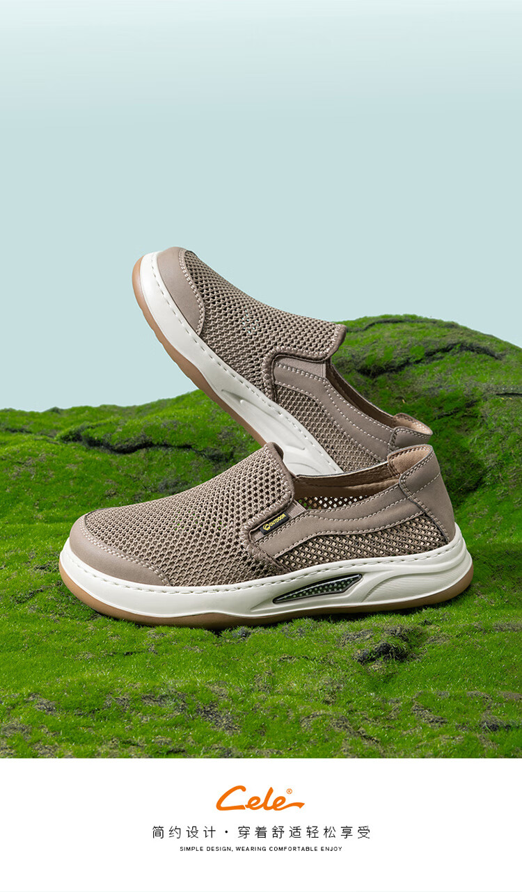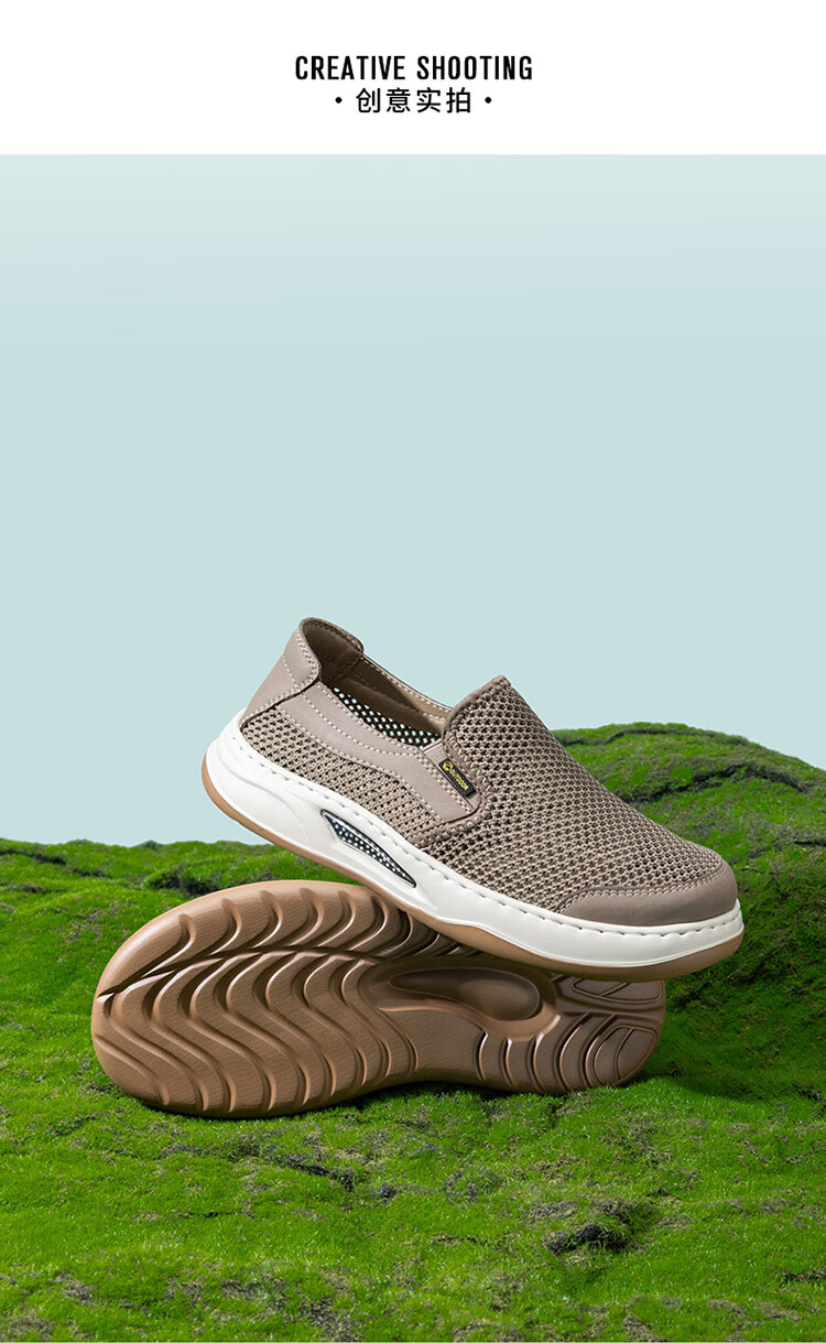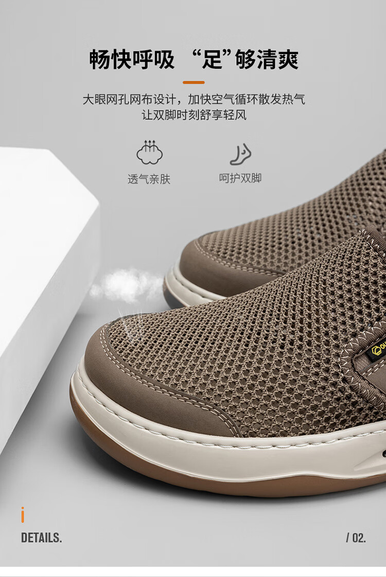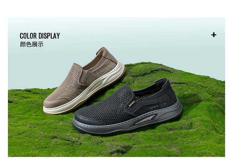策乐网面鞋男2025夏季新款大网眼透气男士轻便套脚鞋子舒适宽头男鞋 黑色 42