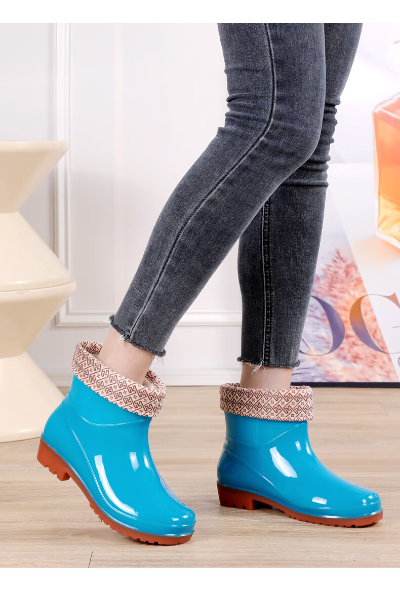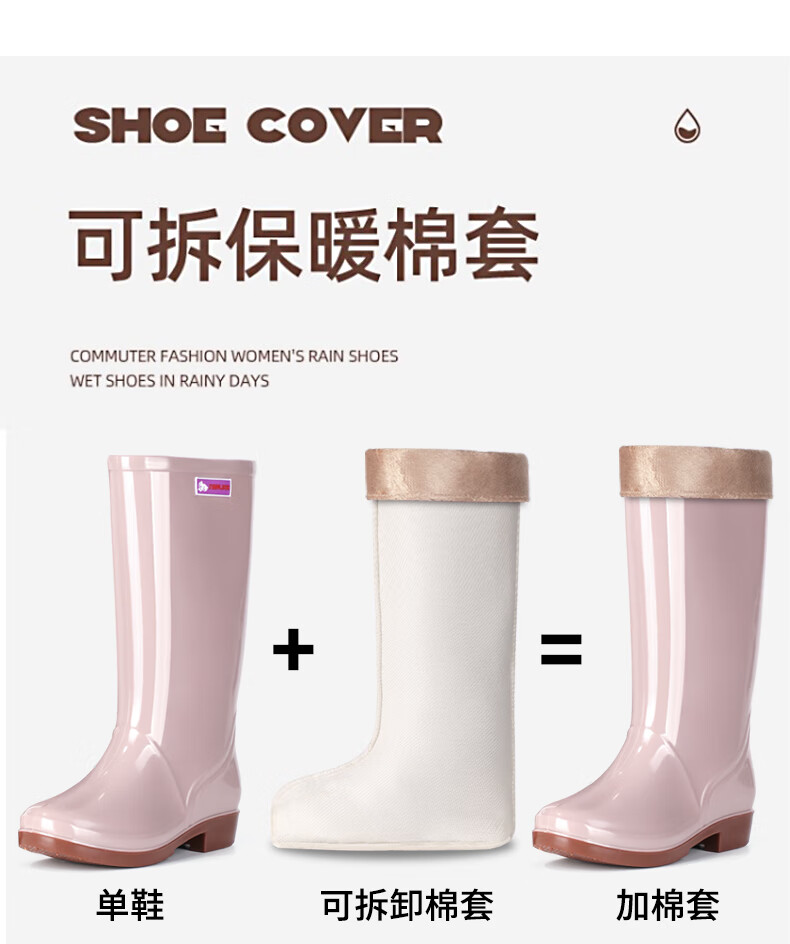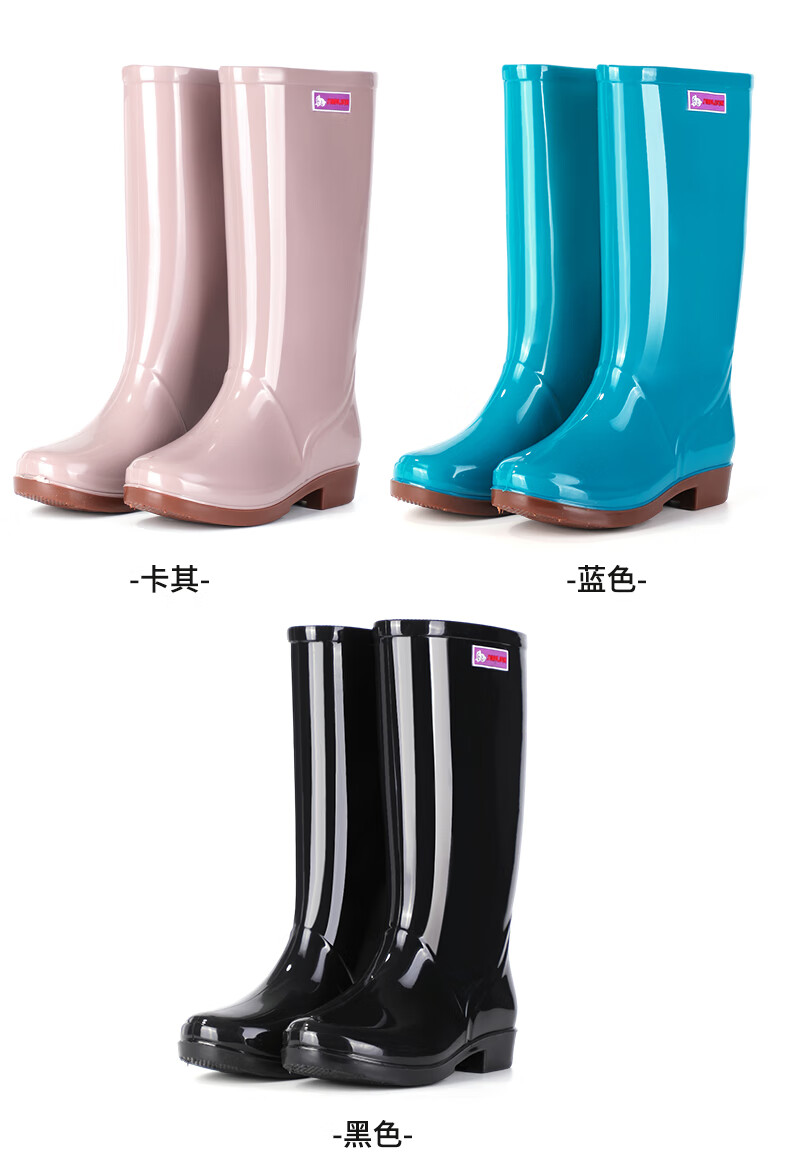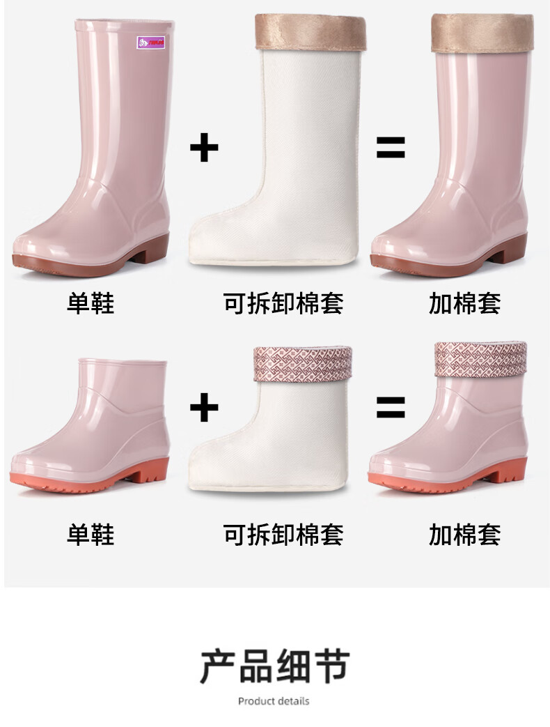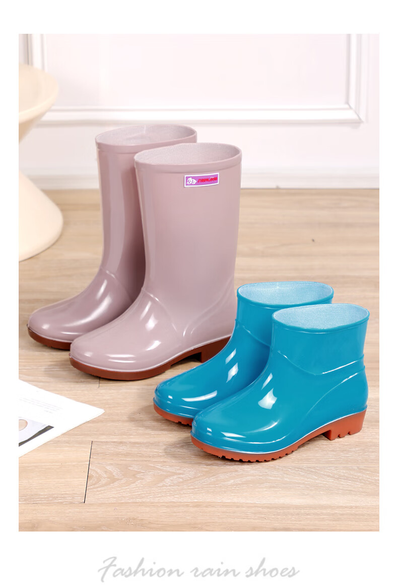 Women's high tube long tube waterproof and non-slip medium tube short tube rain boots plus cotton warm kitchen work rubber shoes 666 medium tube/khaki [single shoes] Standard size 37