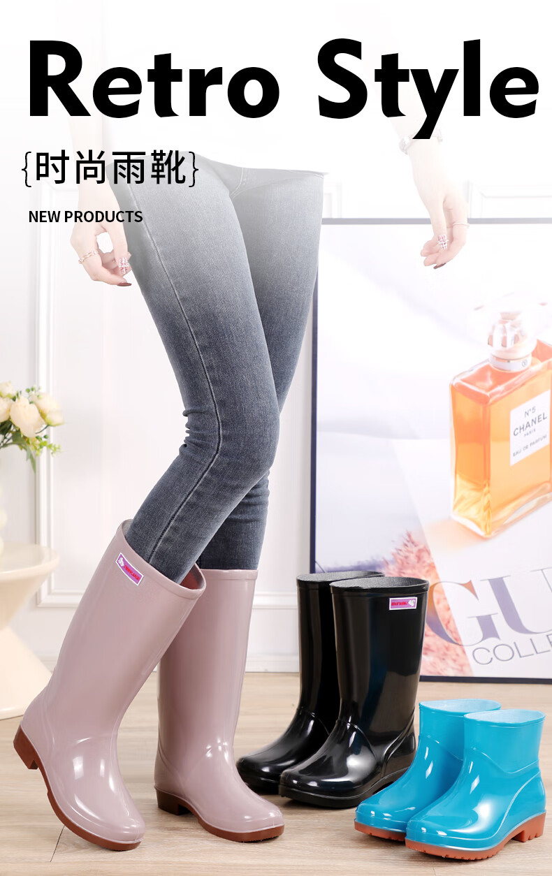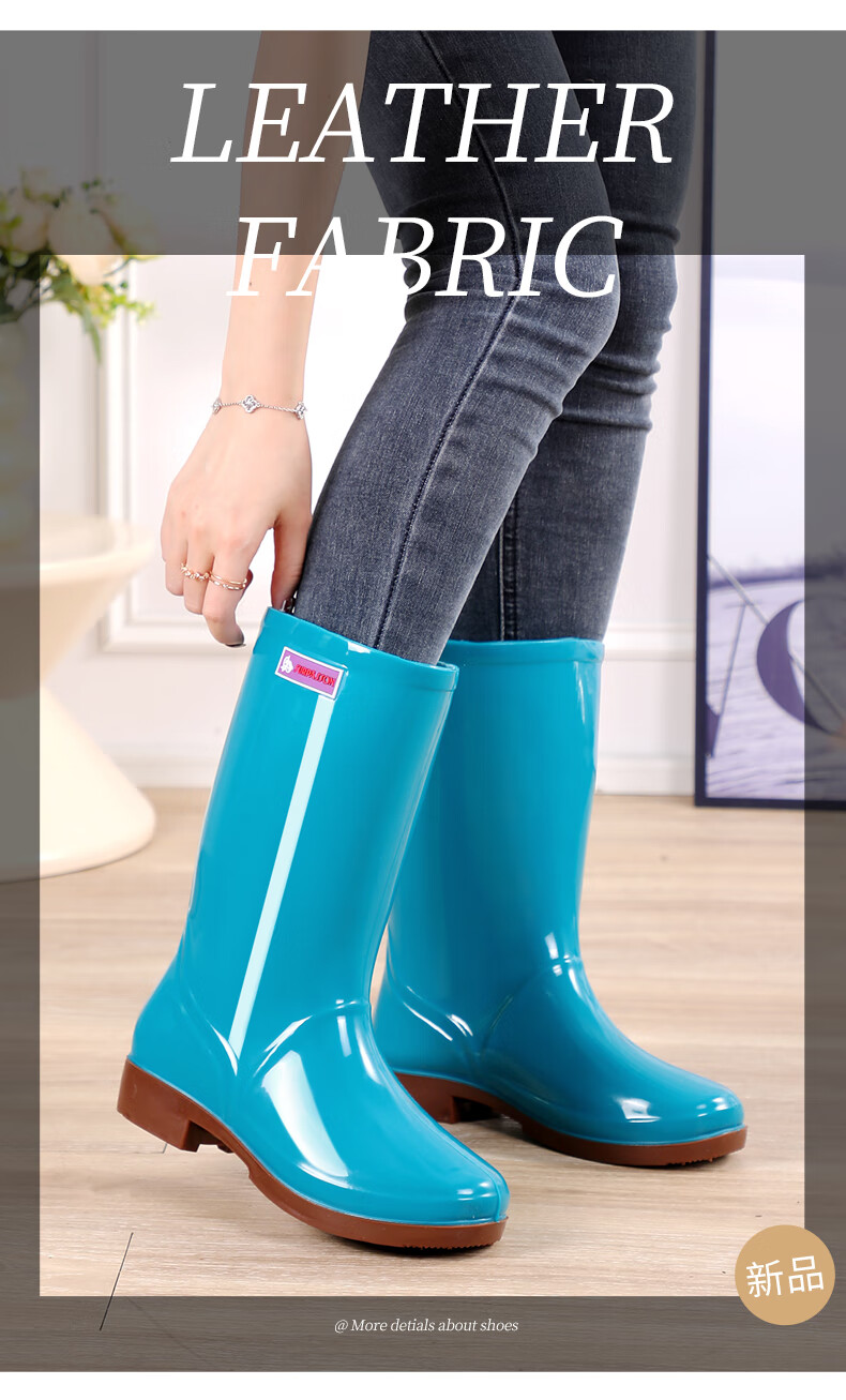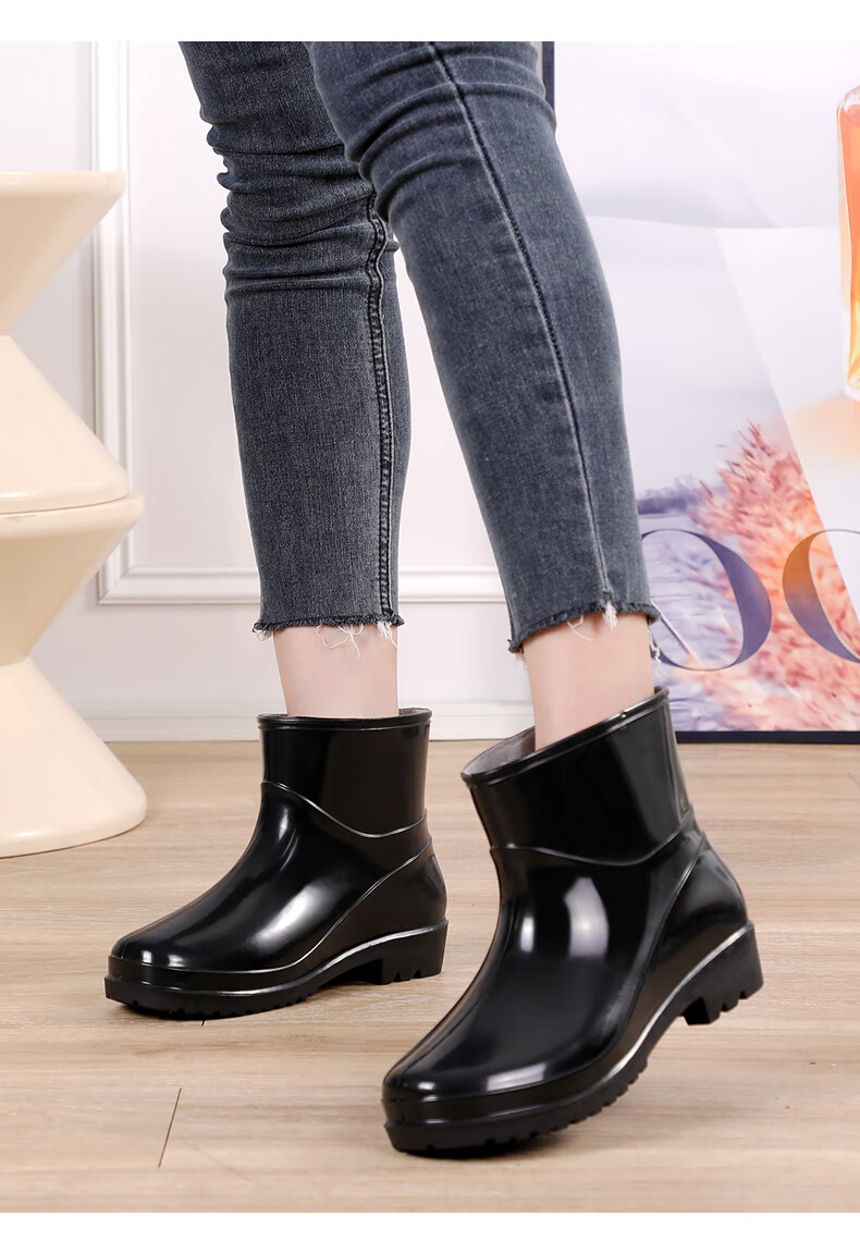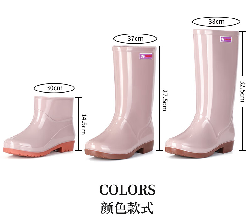 Women's high tube long tube waterproof and non-slip medium tube short tube rain boots plus cotton warm kitchen work rubber shoes 666 medium tube/khaki [single shoes] Standard size 37