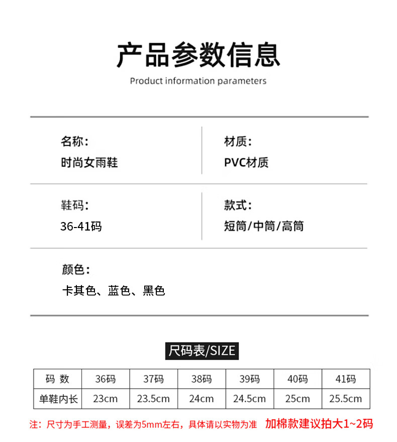 3508低筒不加棉偏小一码,加棉款需要拍大两码。 666中筒/667高筒不加棉码数标准,加棉款需拍大一码。
