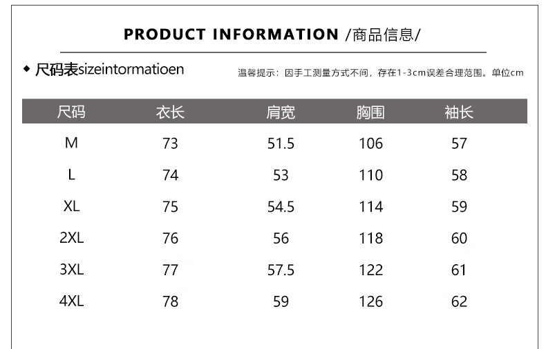 Size (cm) 42 44 46 48 50