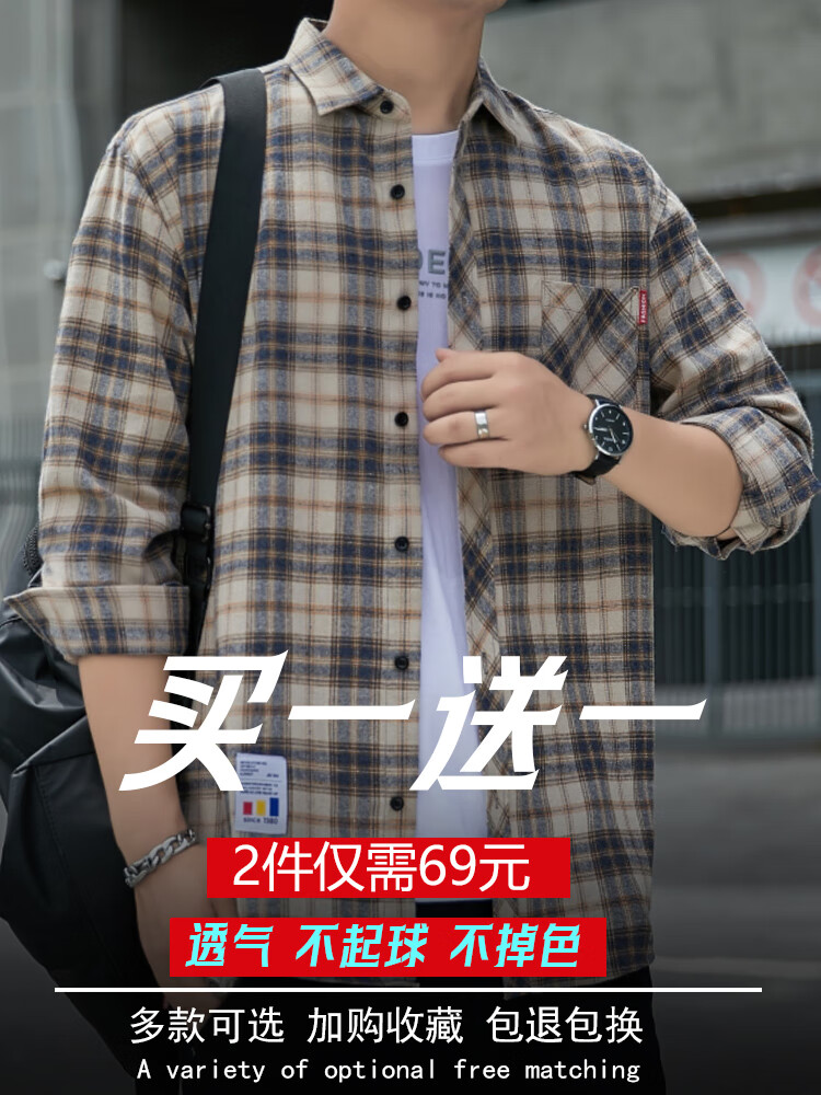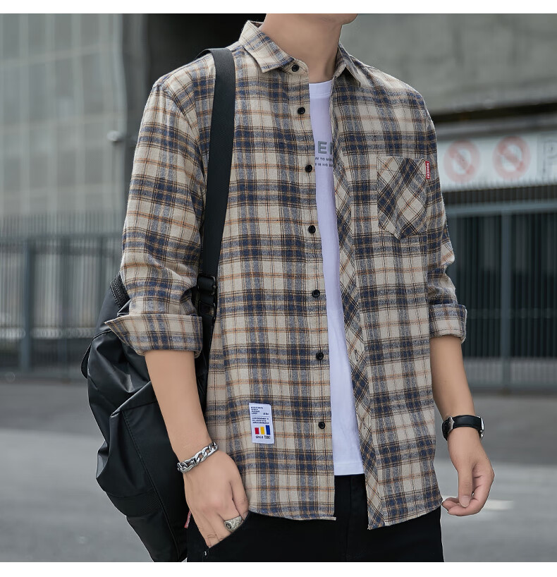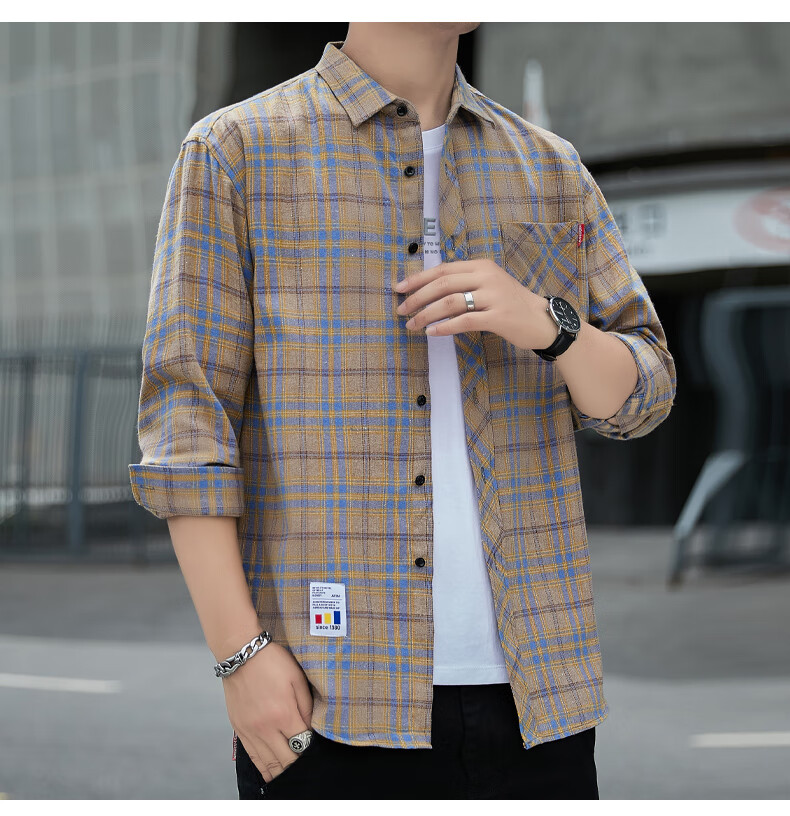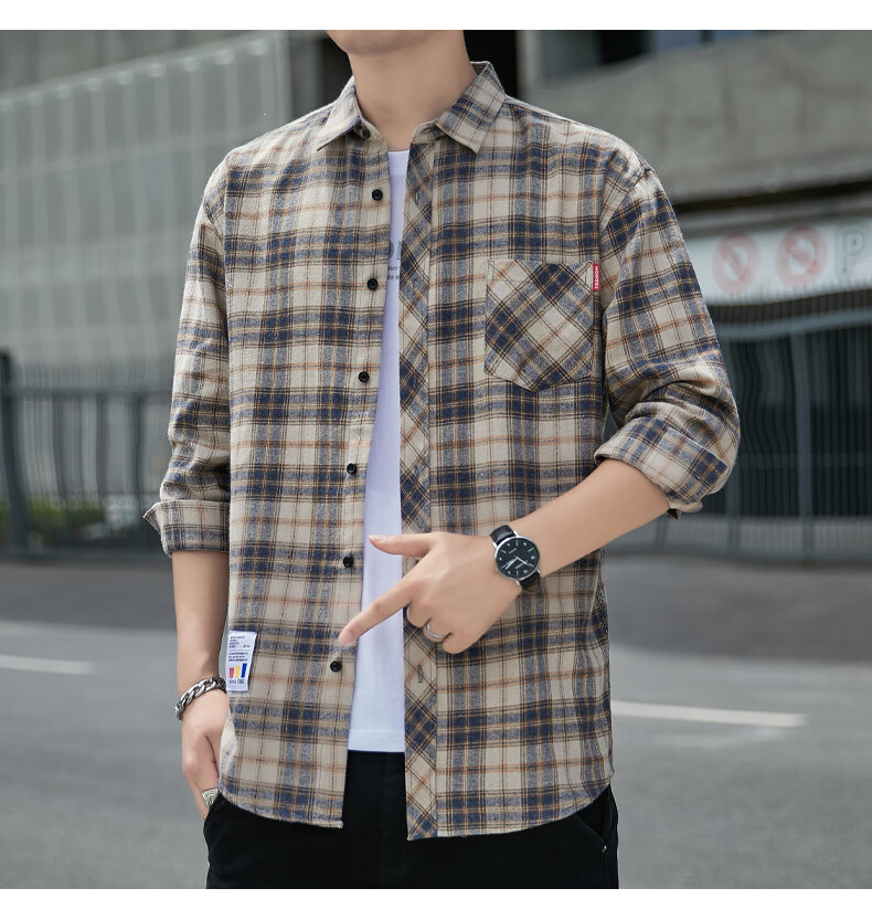 Camisa informal a cuadros de Playboy, camisa de manga larga para primavera y otoño para hombre, tops de estilo coreano, chaqueta fina holgada retro de verano K12109 verde (más terciopelo M 90-110Jin Jin es igual a 0,5 kg